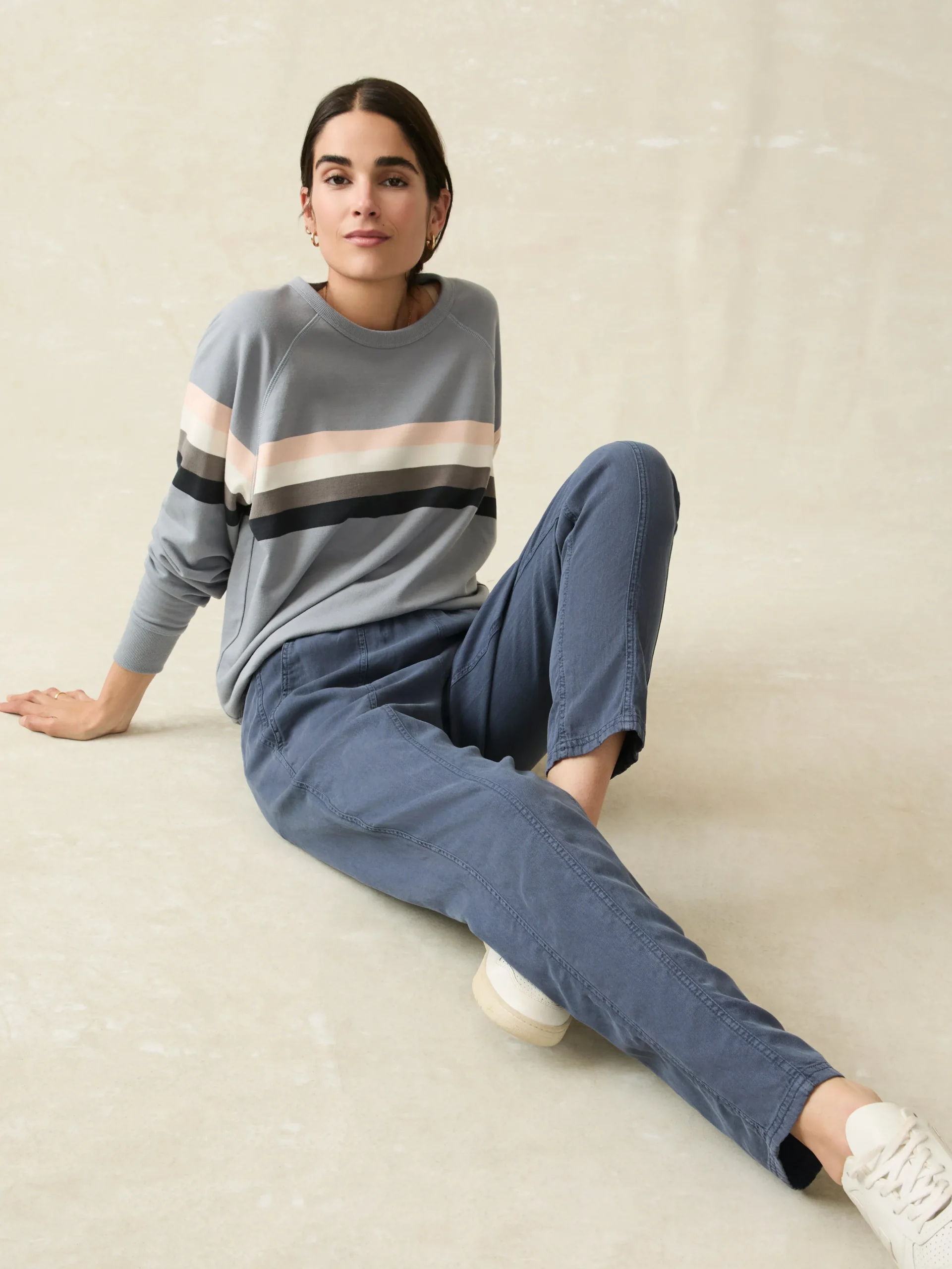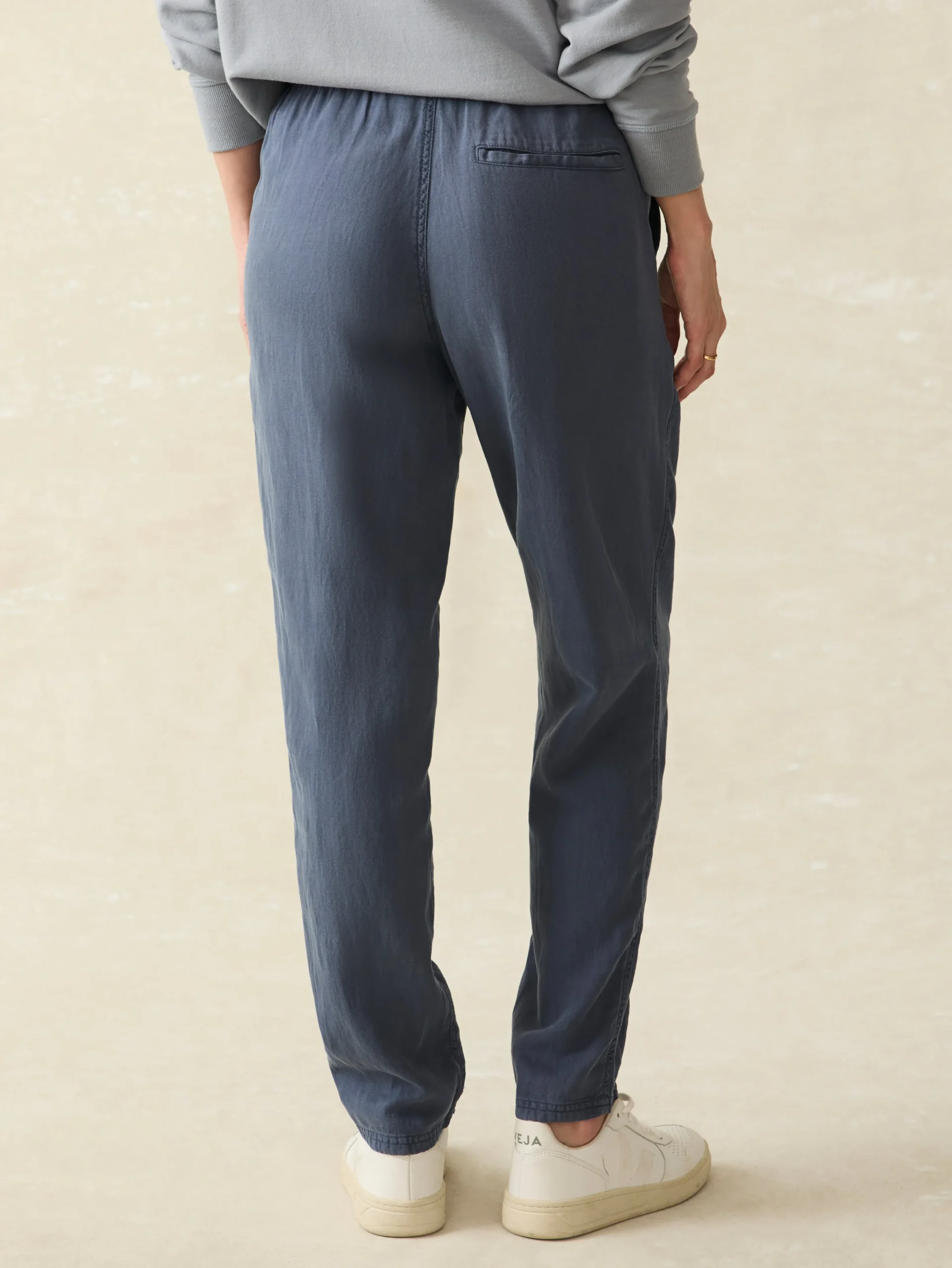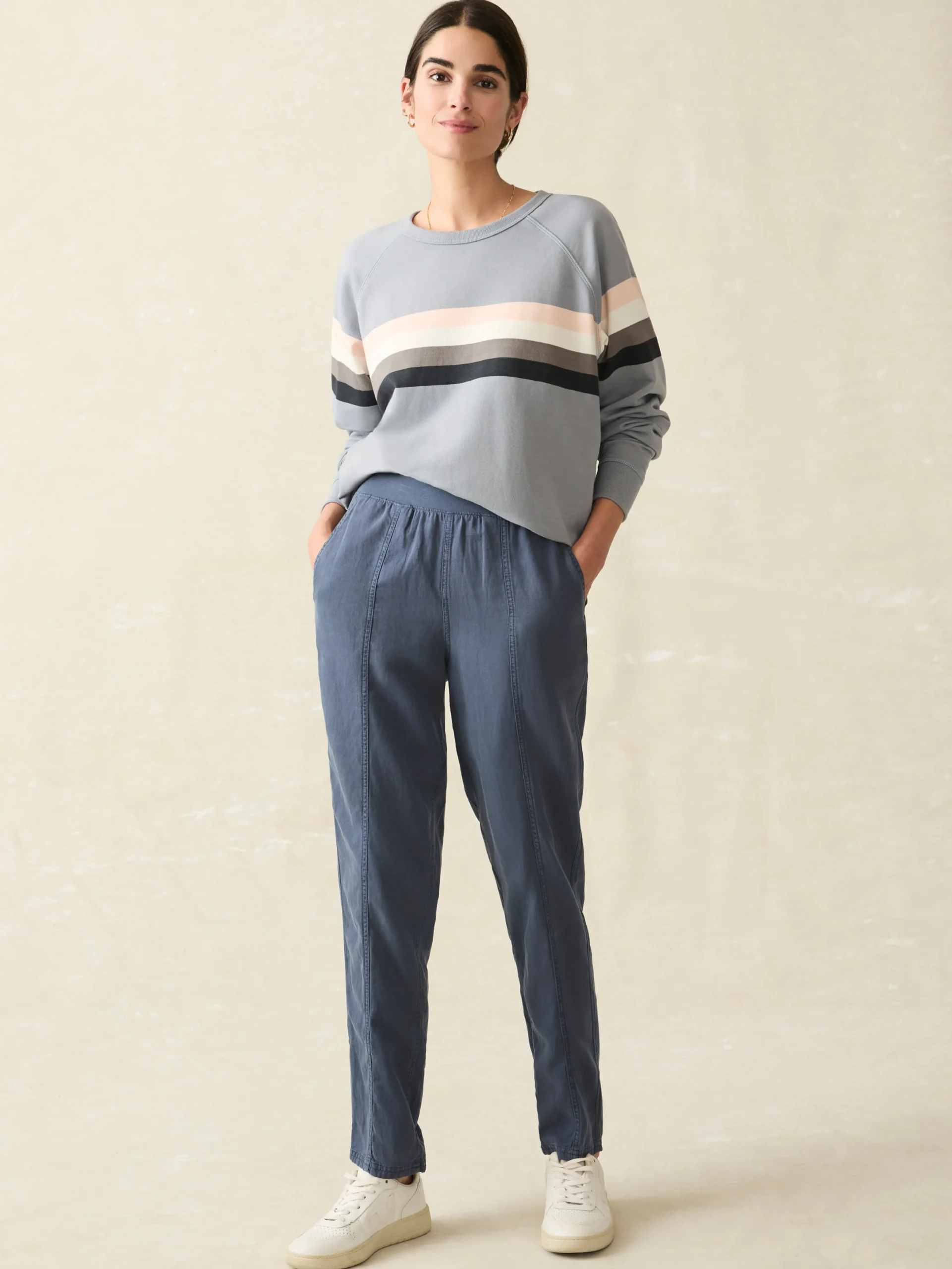 We took your tried-and-true Faherty favorite – the Arlie Pant, and finished it with front seams and a tapered leg for a more polished, streamlined look. Featuring the same soft, just-stretchy-enough blend of linen, cotton, and other fibers, it’s then specially dyed and washed for a vintage-inspired, lived-in vibe. The pull-on waistband gives you all day comfort but it’s elevated enough to wear to work or out to dinner.