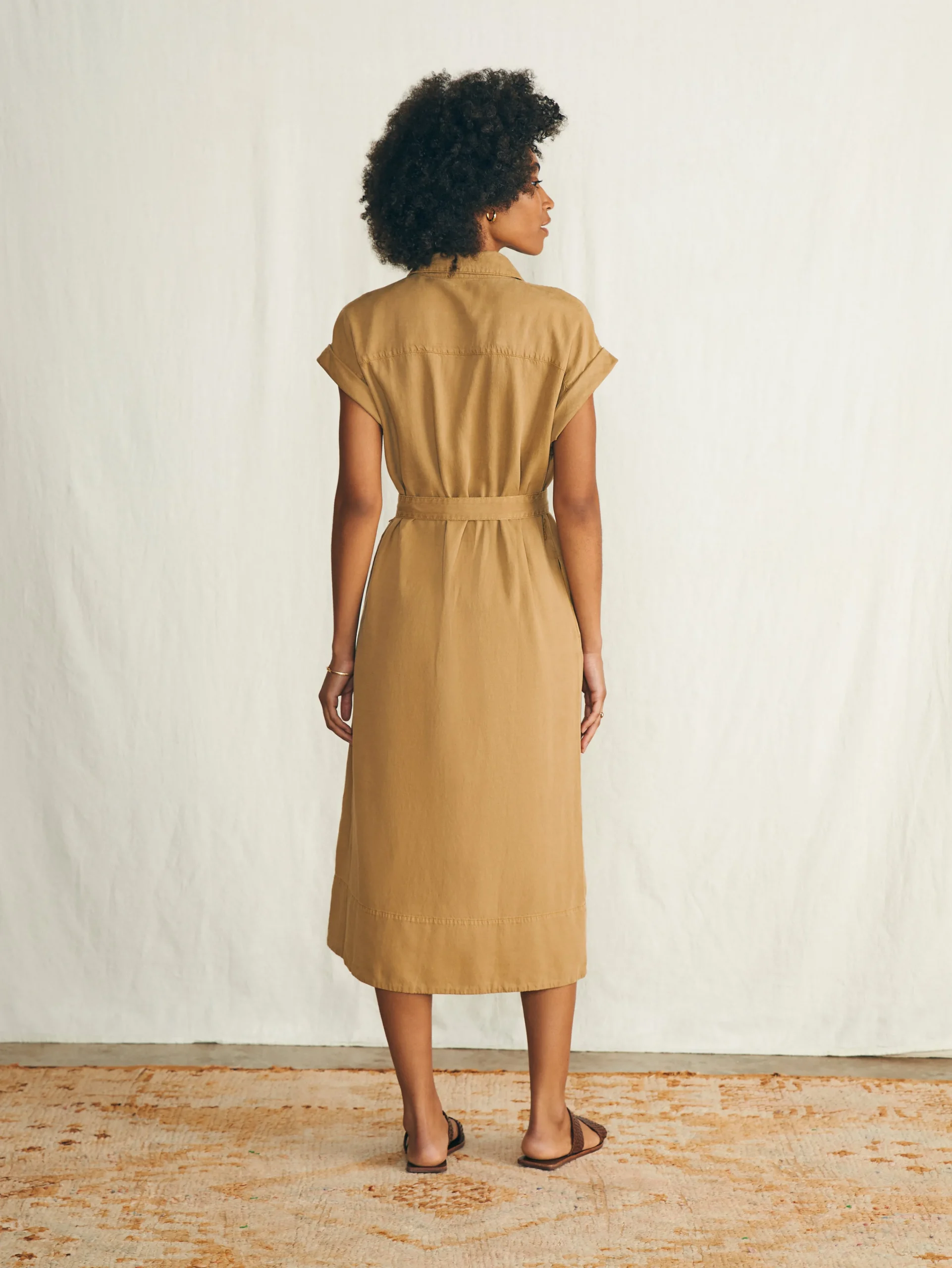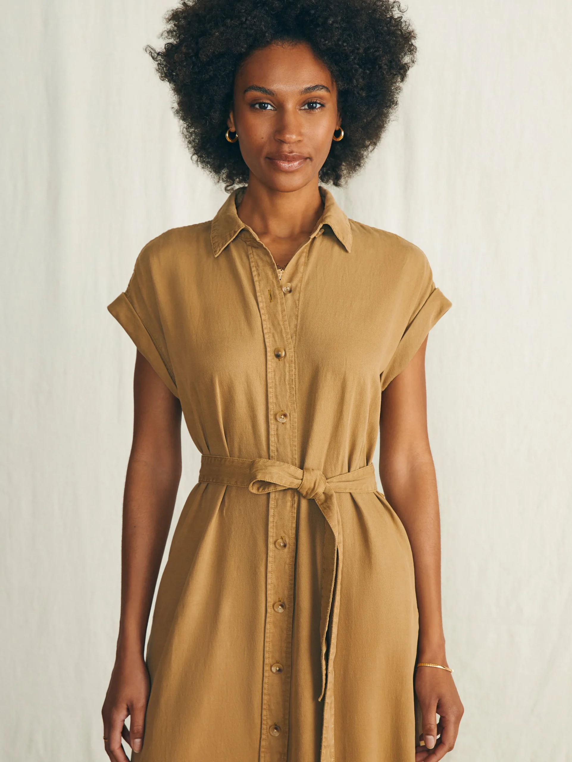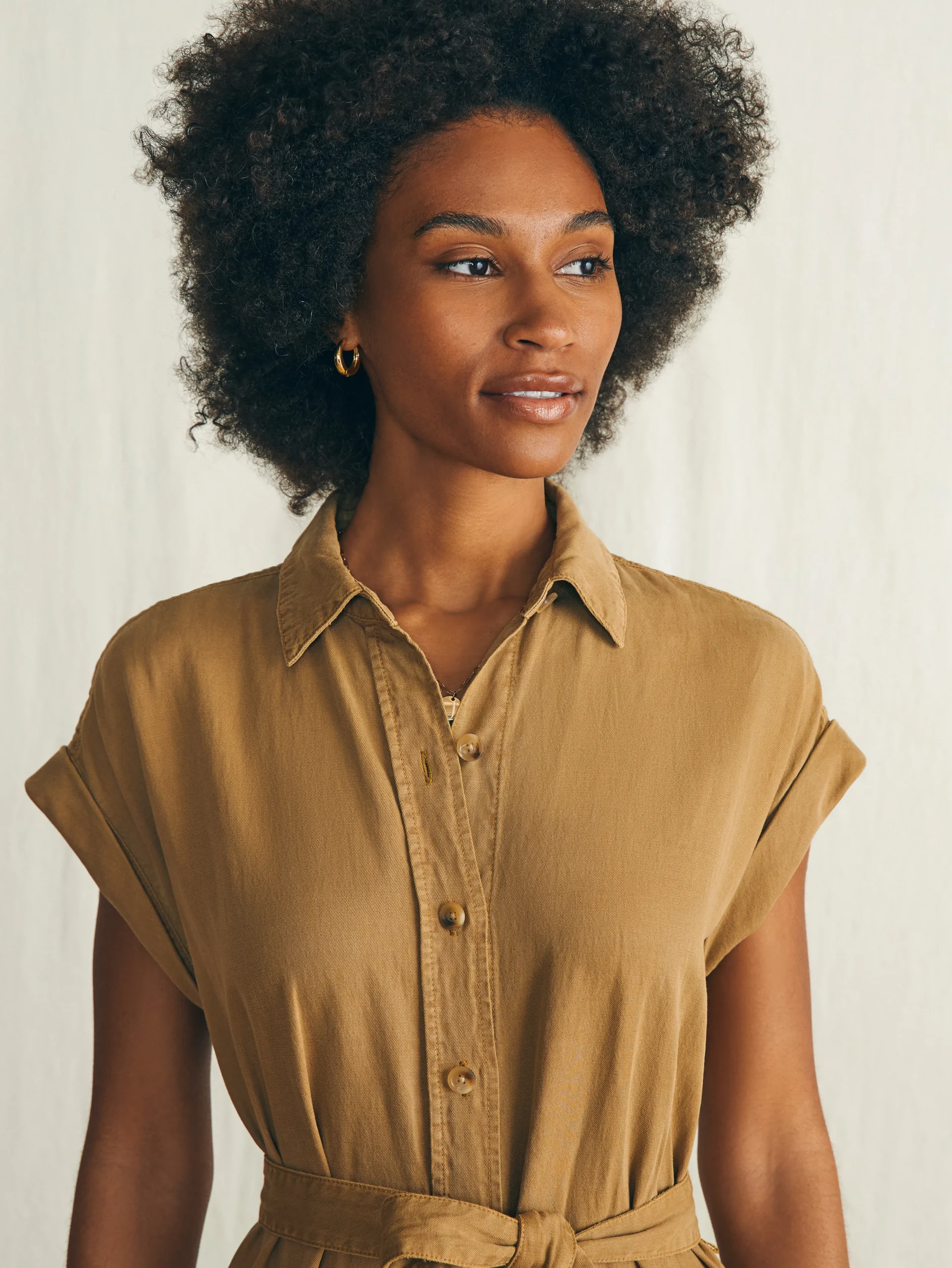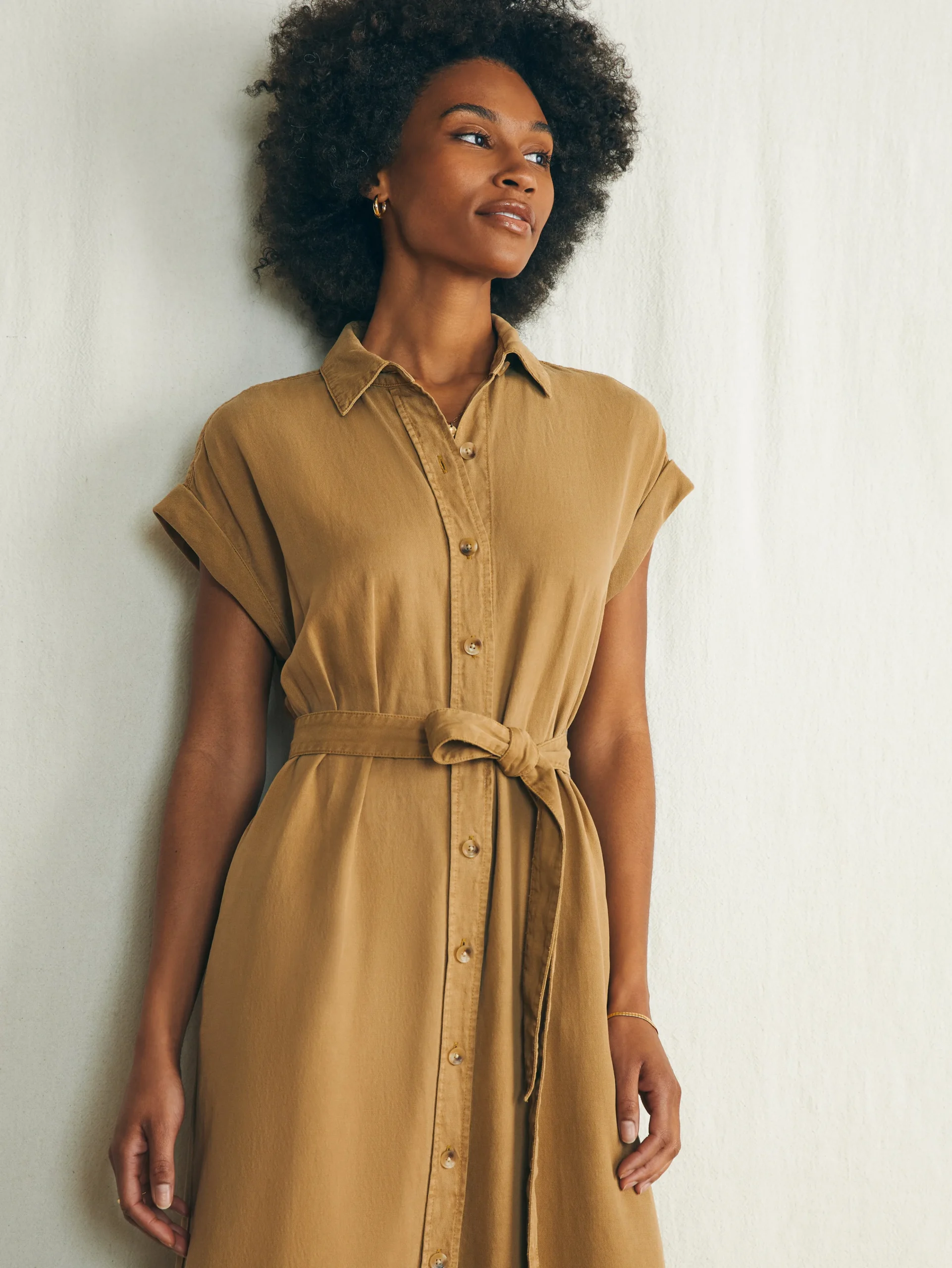 A classic shirt dress is one of our unsung wardrobe heroes. Inspired by utilitarian style, this one is made for the everyday with the same soft, just-stretchy-enough fabric of our fan favorite Arlie Day Pant. Specially dyed and washed for a vintage-inspired, lived-in vibe, we designed it with rolled cuffs, patch pockets, and cinched tie for that casually cool vibe that takes you from afternoon errands to dining alfresco.