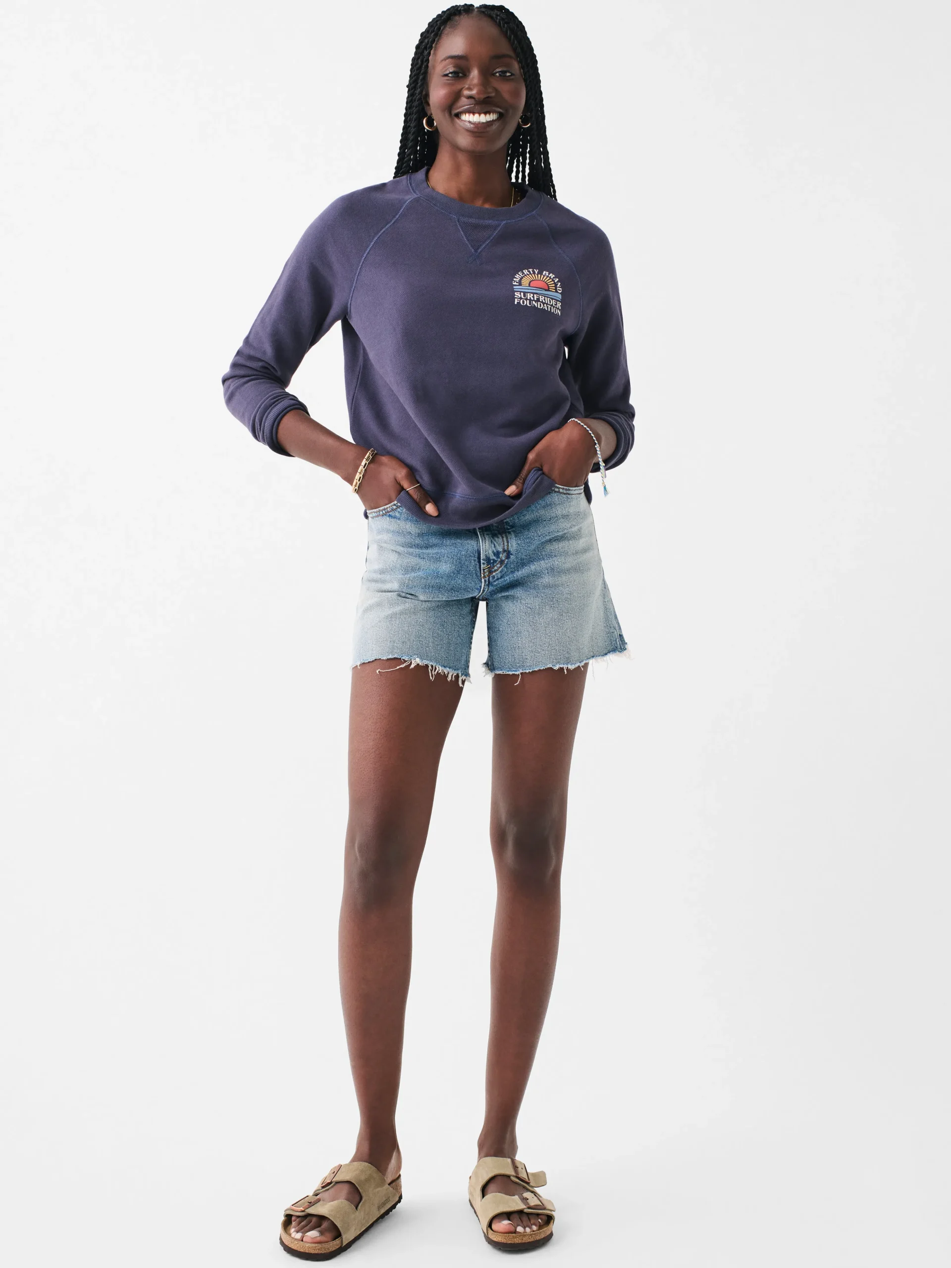 - Detail: Long sleeve crewneck with soft plastisol print, raglan seams, and rib detail at neckband, sleeve cuffs and hem.