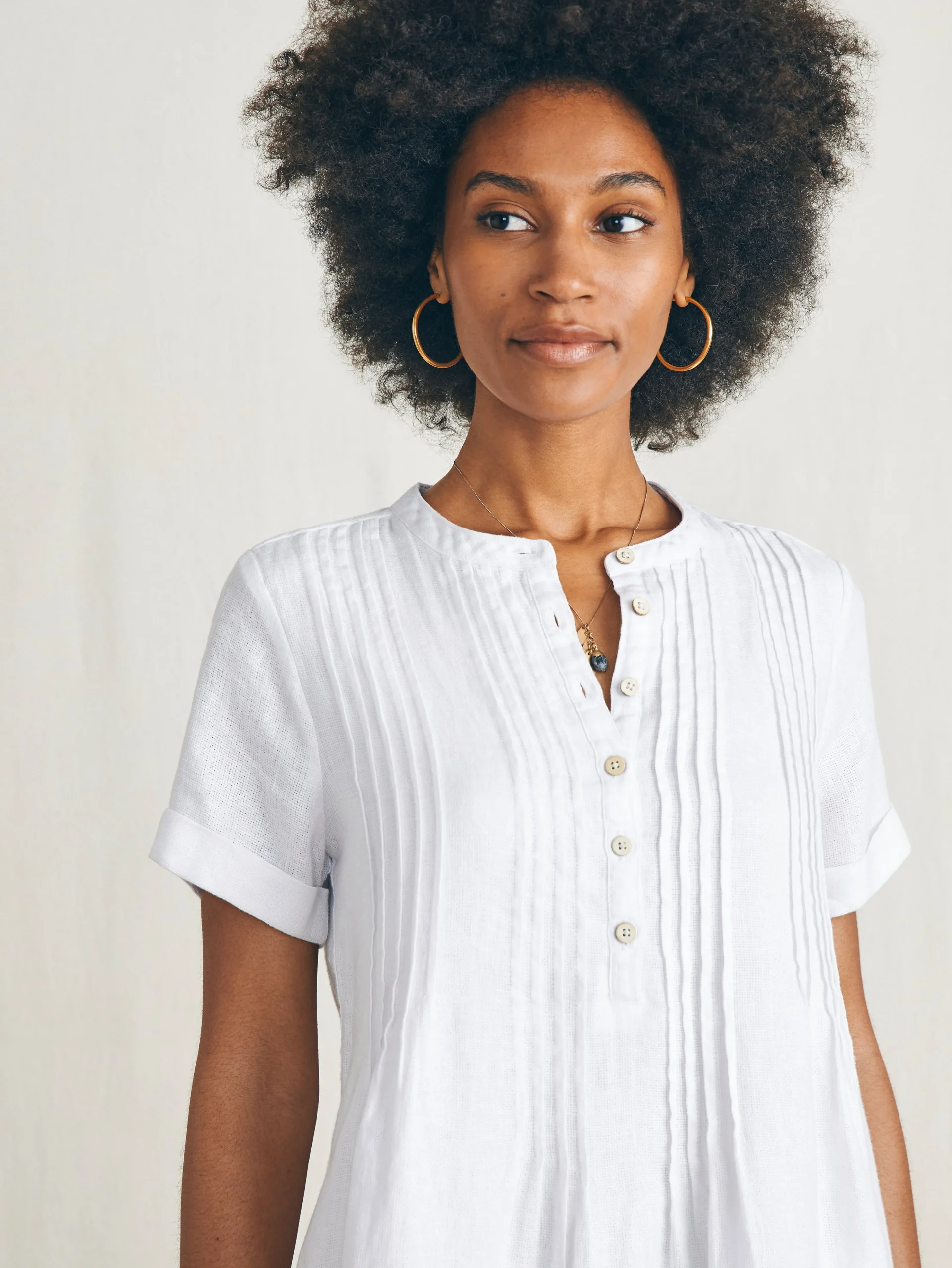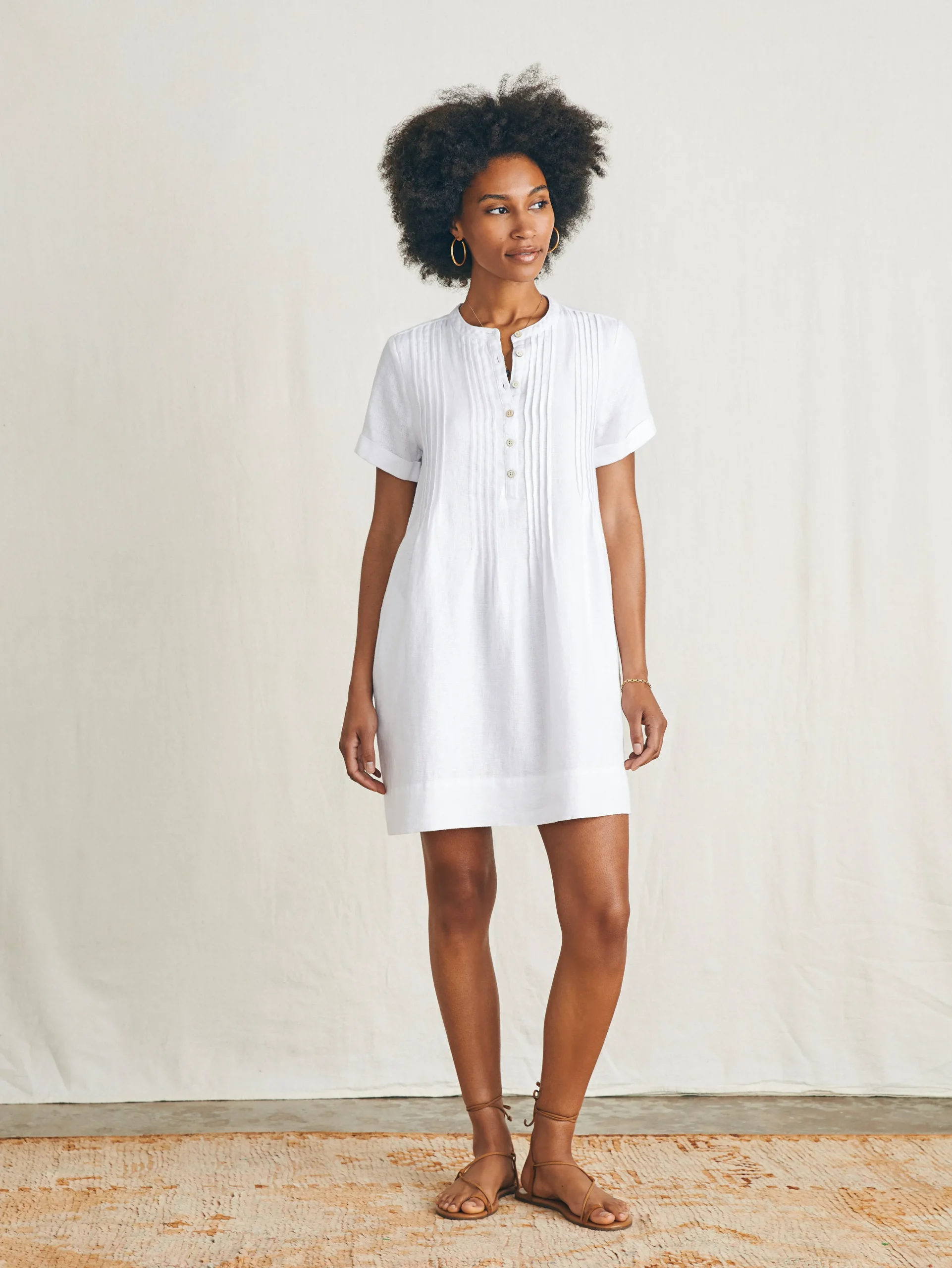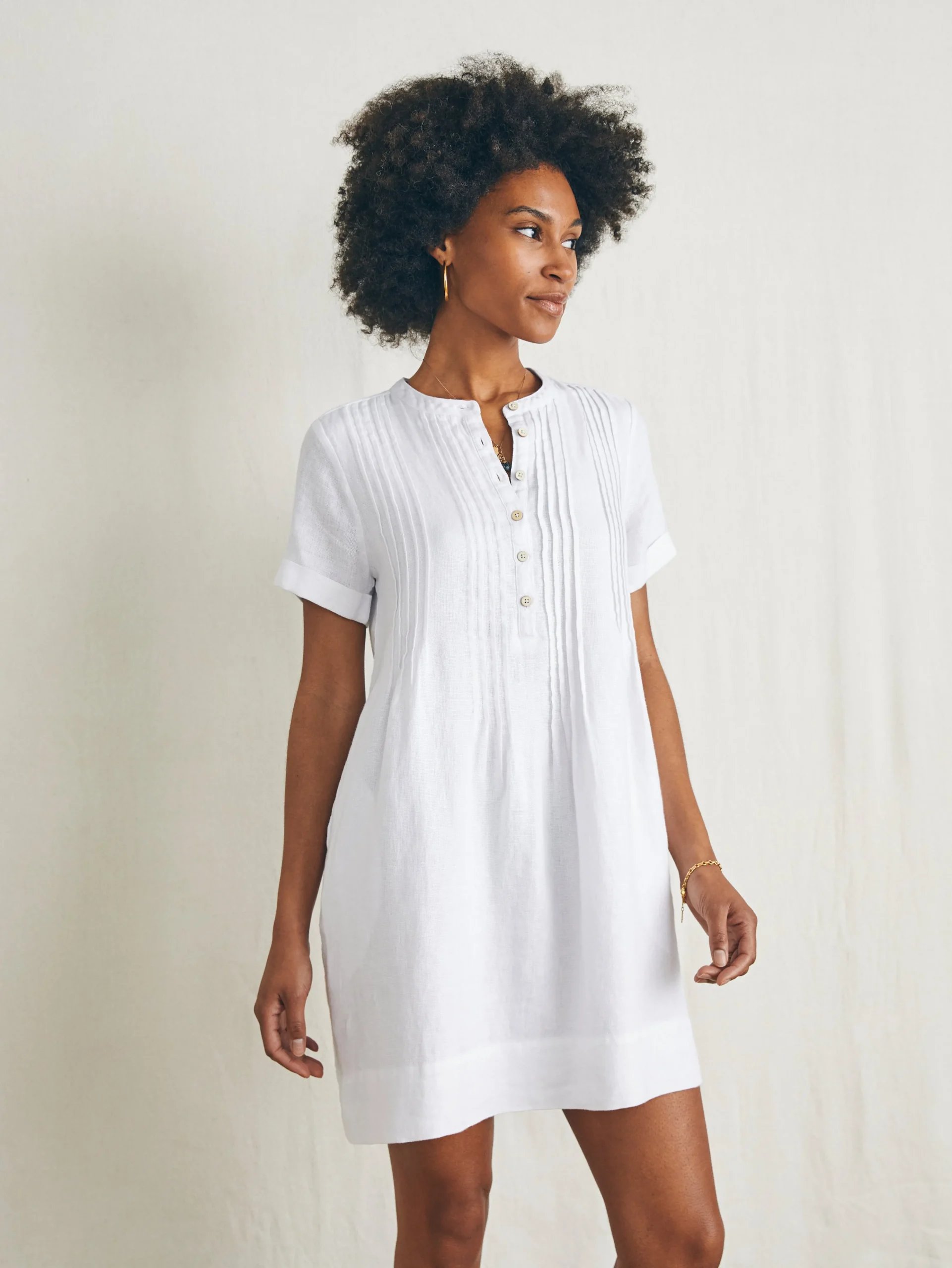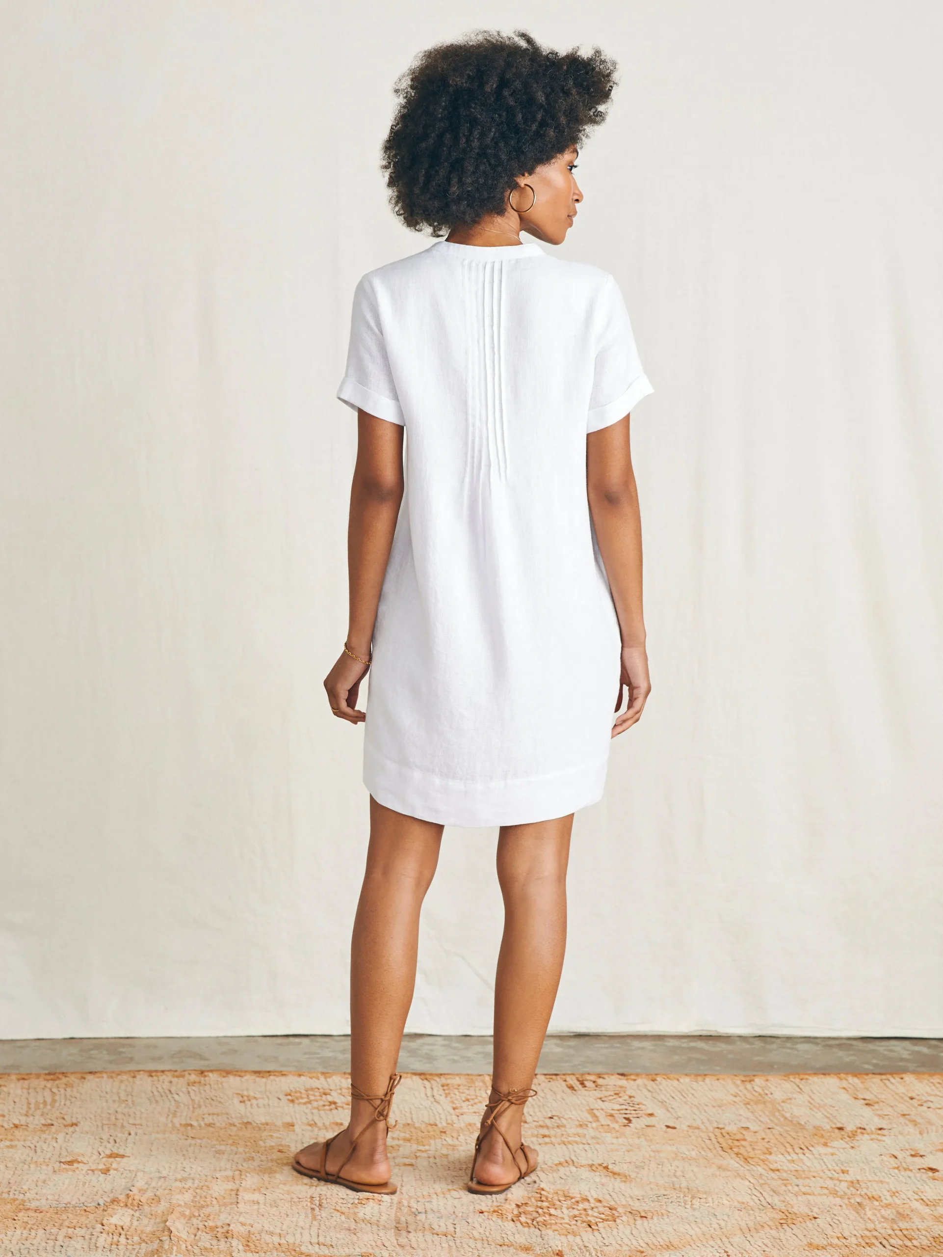 - Detail: Pintucks at bodice and at center back. Short sleeve with rolled cuff. Half placket with shell buttons at center front. Hidden side entry pockets. Dress is lined.