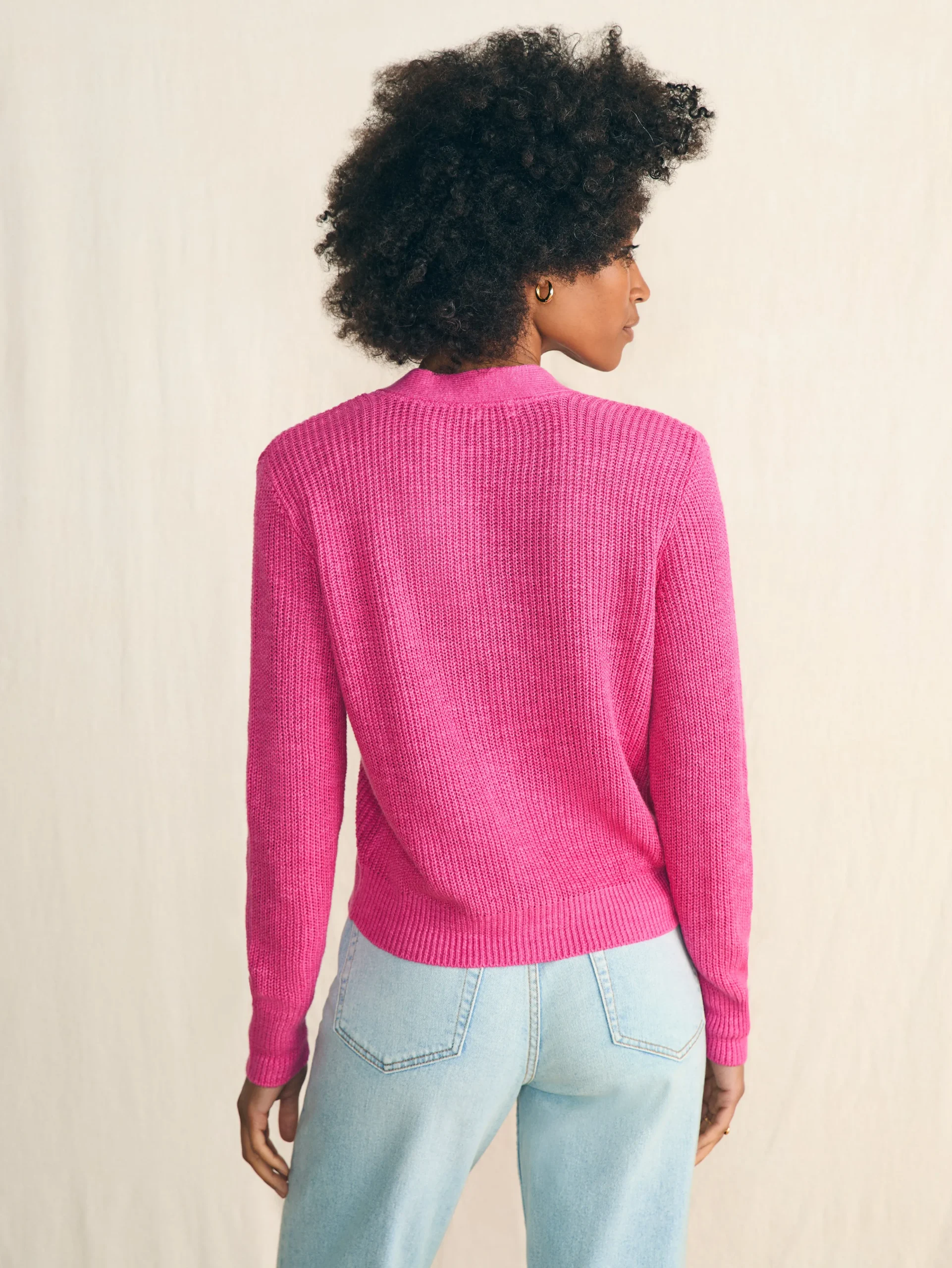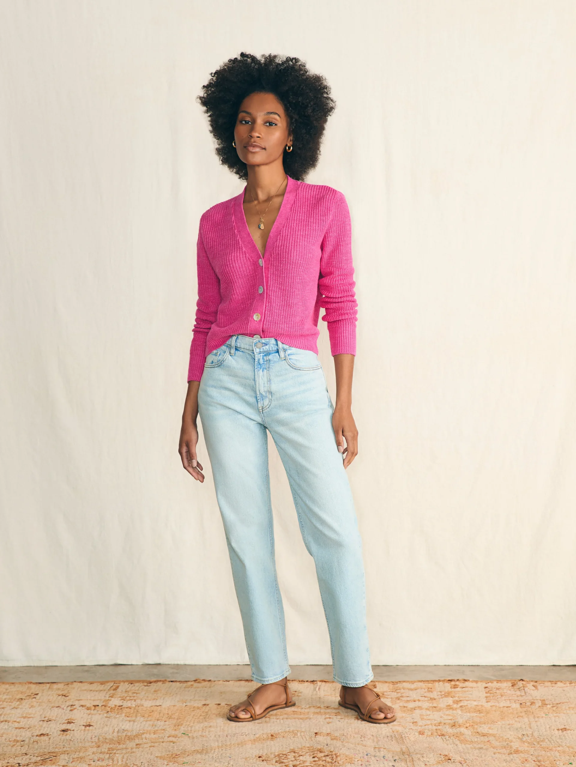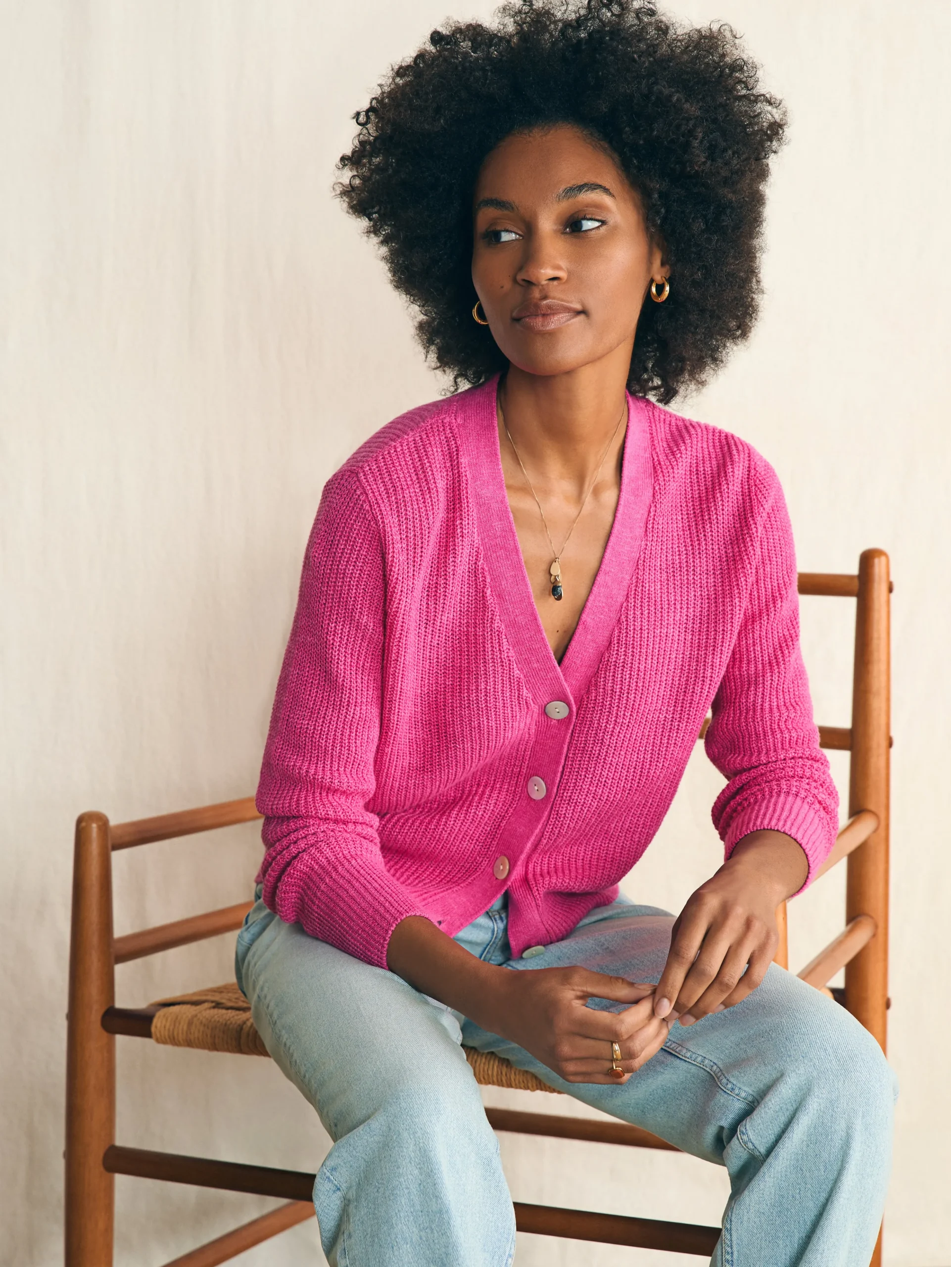 Warm enough for cool spring evenings but still light enough for sunny days, this charming cardigan is knit in an airy linen cotton blend that makes it the ideal layering piece. The textural, open stitch drapes beautifully with a slouchy, oversized fit. Over a tank, dress, or on its own, you’ll be reaching for this versatile cardigan throughout the season.