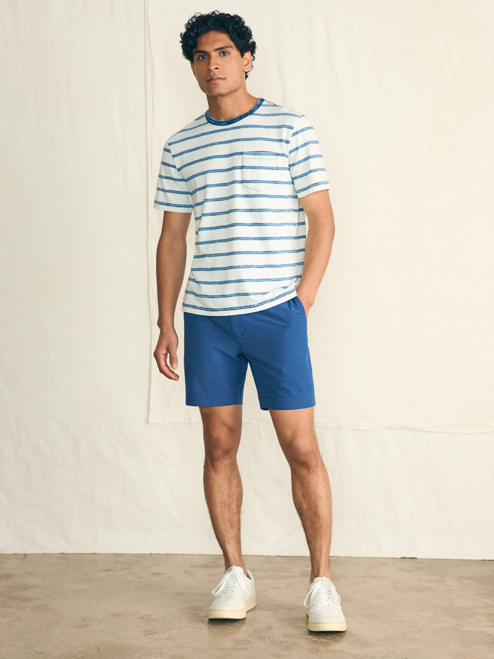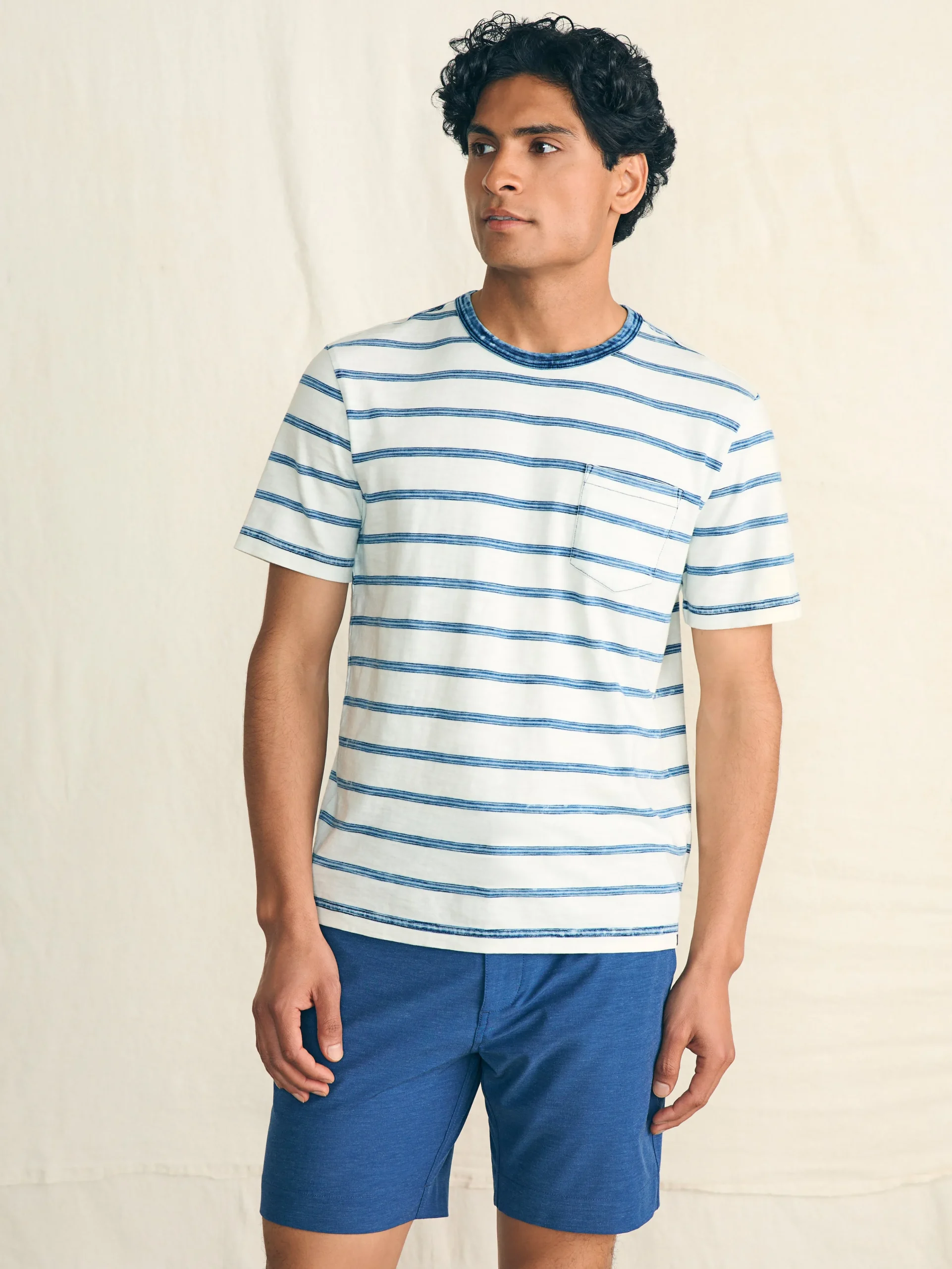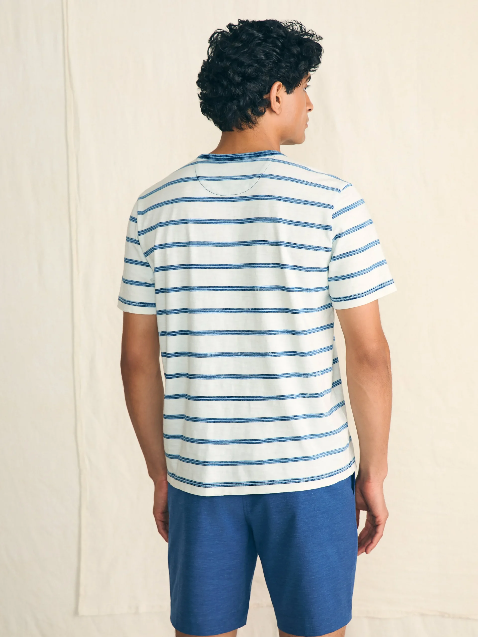 Inspired by the perfectly imperfect look of a well-worn vintage t-shirt, our tee is knit with slub cotton yarns for texture and authenticity. Dyed with natural indigo and garment washed for softness, it’s the not-so-basic, basic.