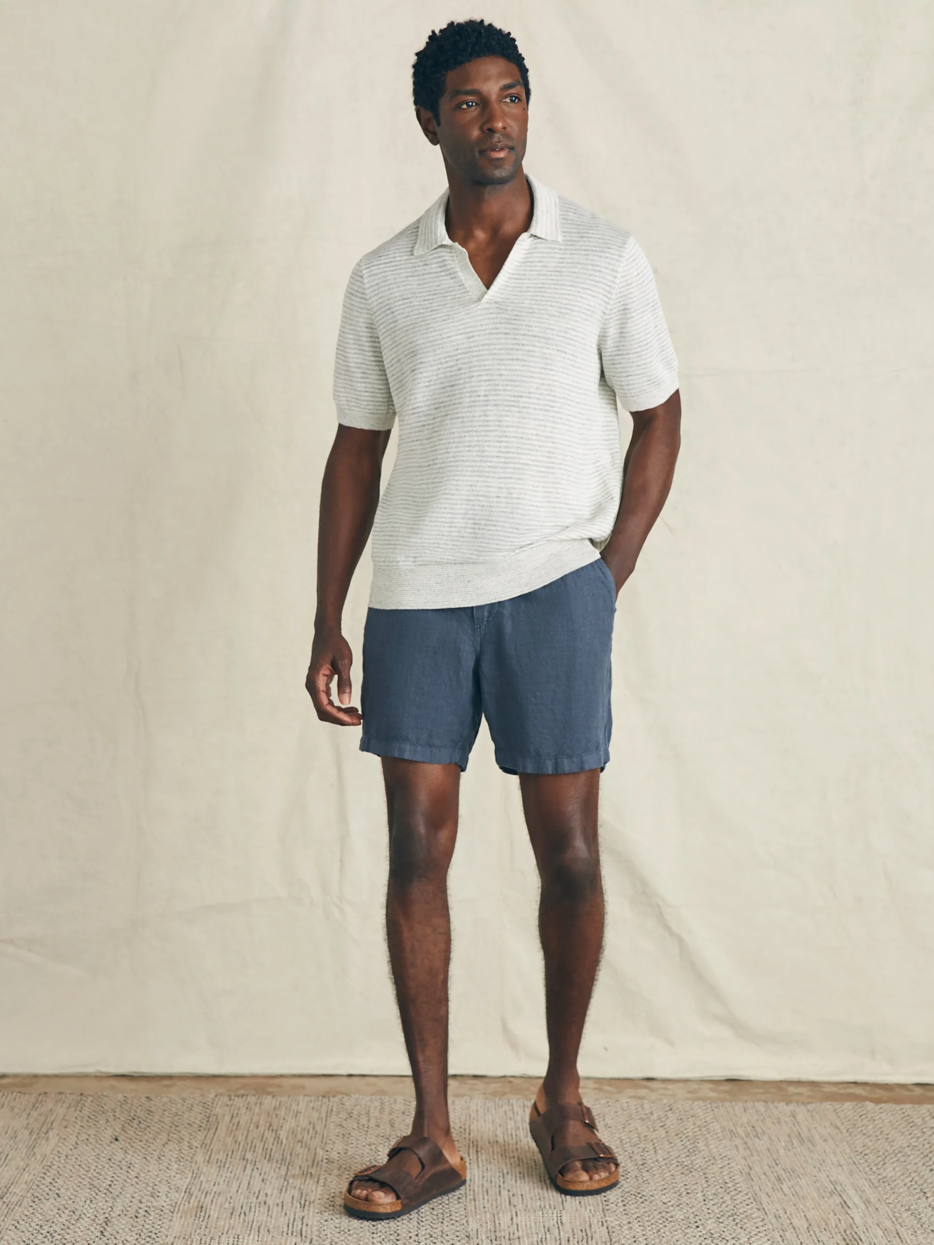 This wardrobe classic gets a casually elevated look (and a touch of retro appeal) knit in a softly textured linen yarn. Naturally cooling and breathable, this lightweight polo can be as relaxed as you need it to be or polished enough for any setting.