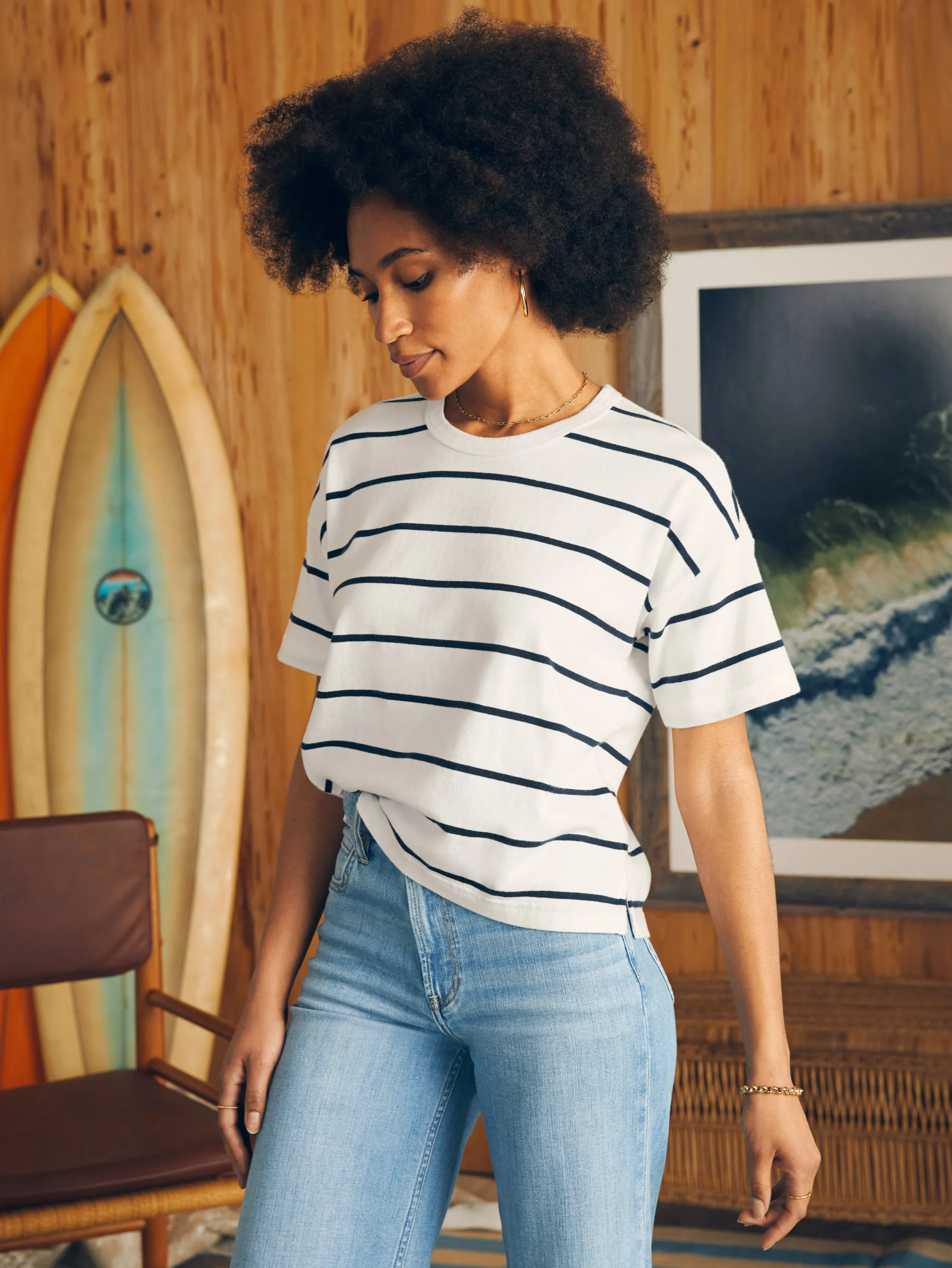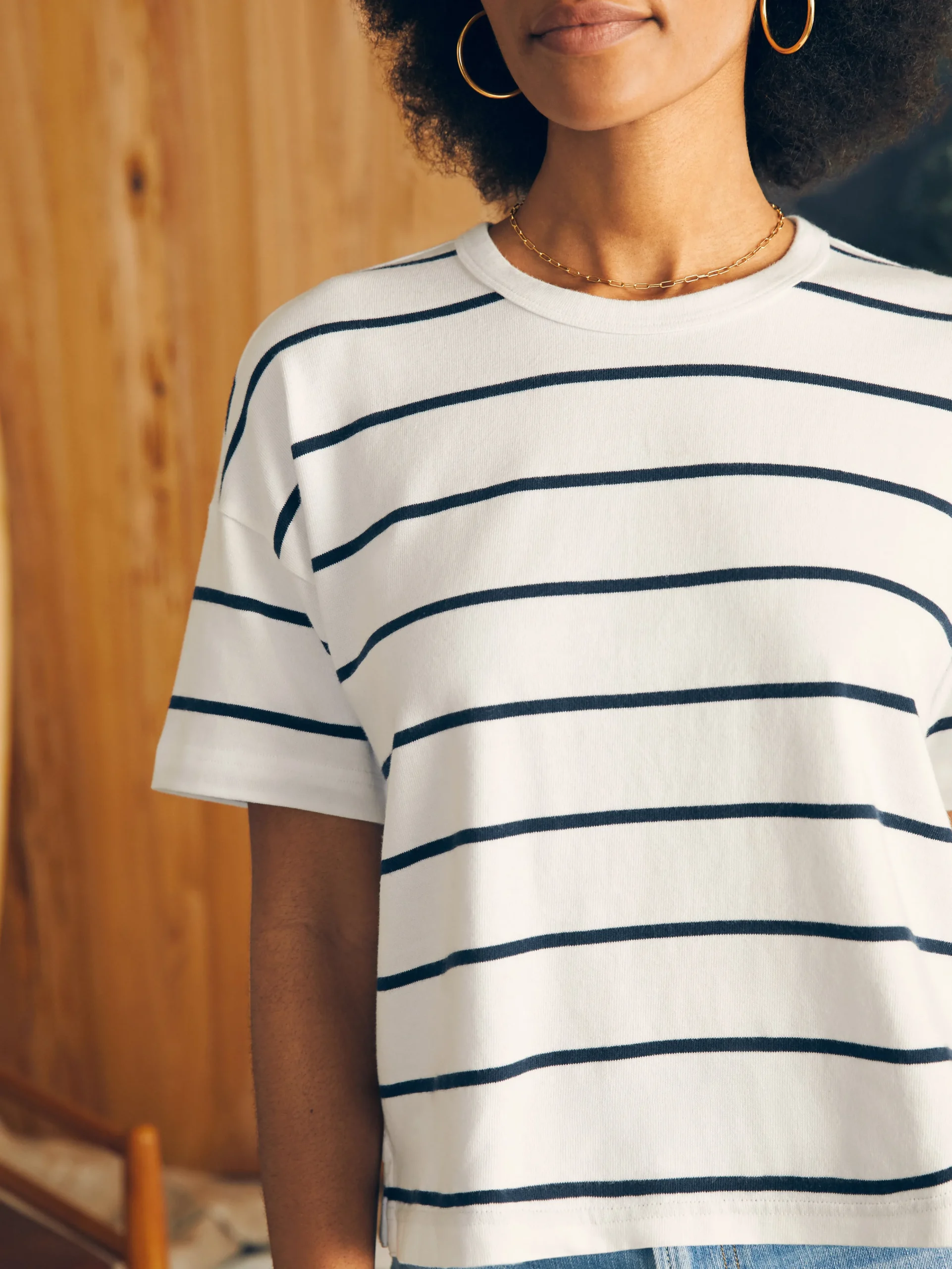 Equal parts preppy and playful, this short-sleeved boatneck tee is a classic for a reason. Contrast stripes keep it crisp and clean and our super soft cotton makes it suited for all-day wear – from morning walks on the dock to dining alfreso with the family.