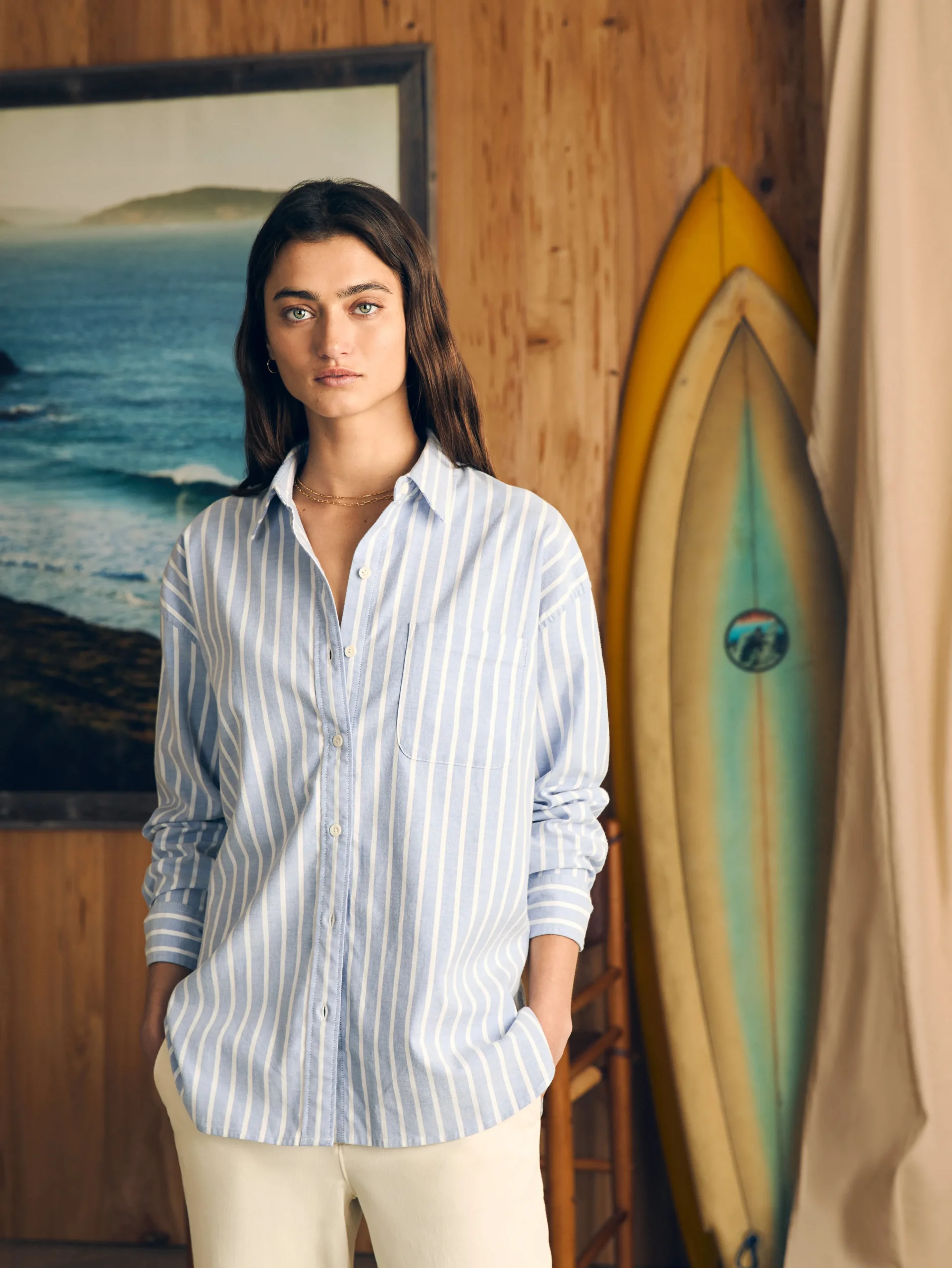 - Detail: Shell buttons at center front and cuffs. Shirttail hem.