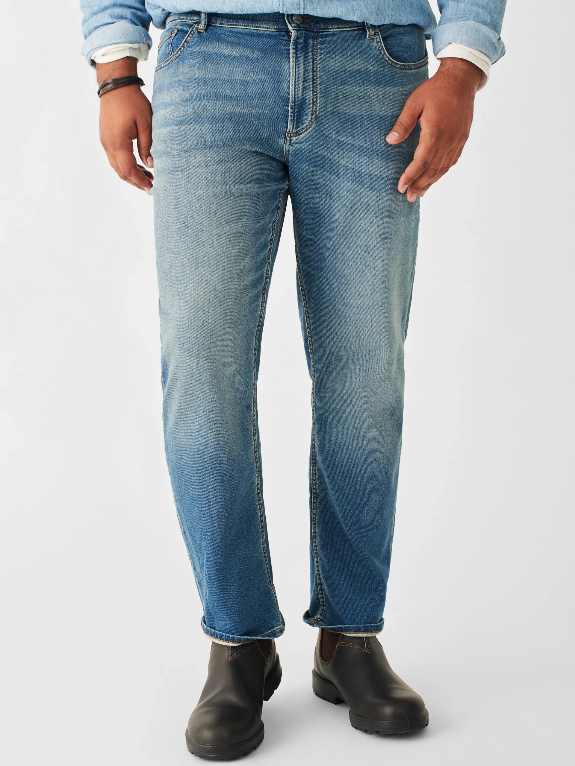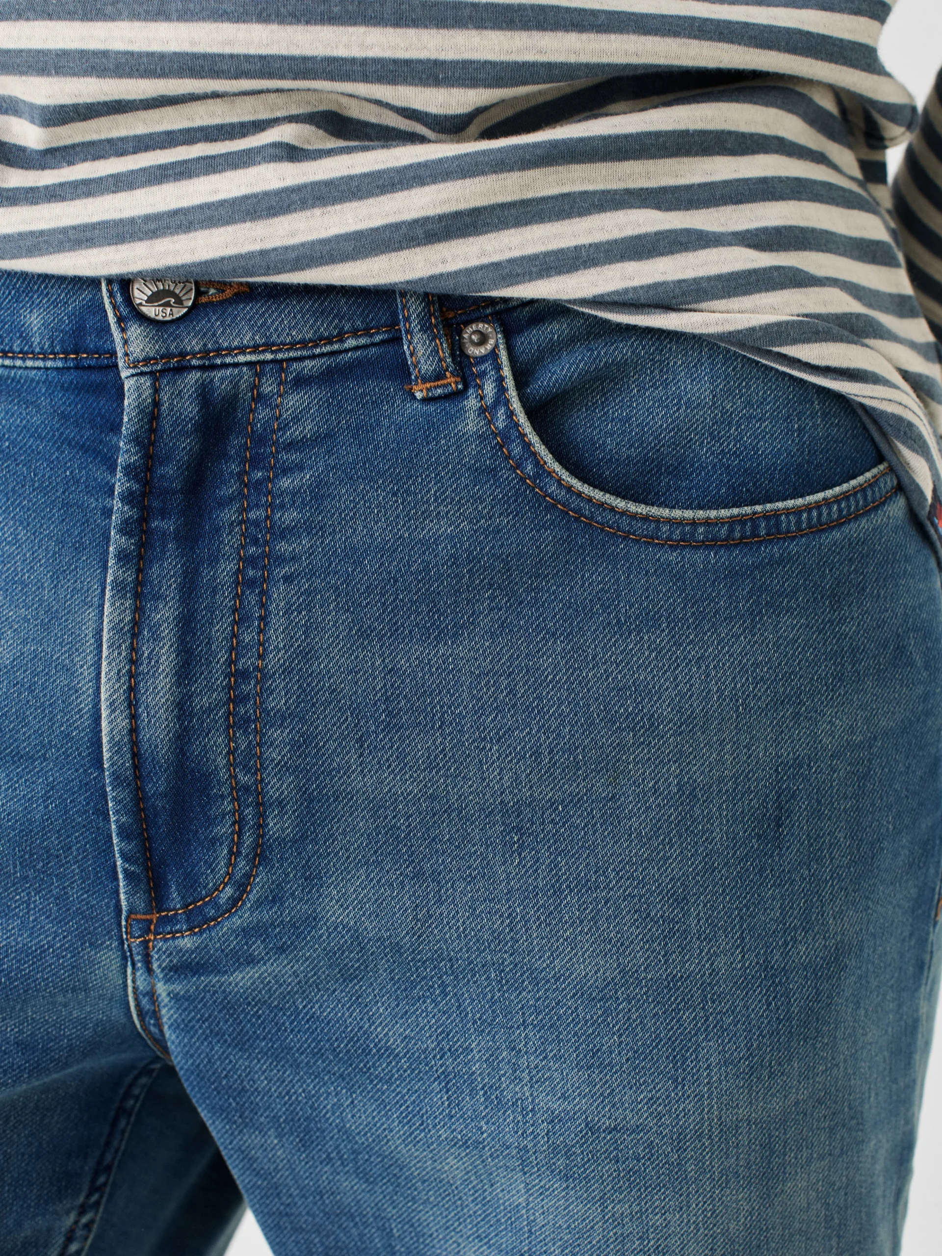 Our beloved Stretch Terry 5-Pocket now done in an indigo wash for the classic denim look. Woven with a thick knit structure, they’re stretchy and comfortable and completely versatile. The proprietary fabric dreamed up by Mike, our Co-founder and Chief Creative Officer lives up to all the hype. We recommend ordering your true size. Like new denim, they might feel a bit snug right out of the box but trust the process. Your natural movements will make them relax and conform to your unique shape.