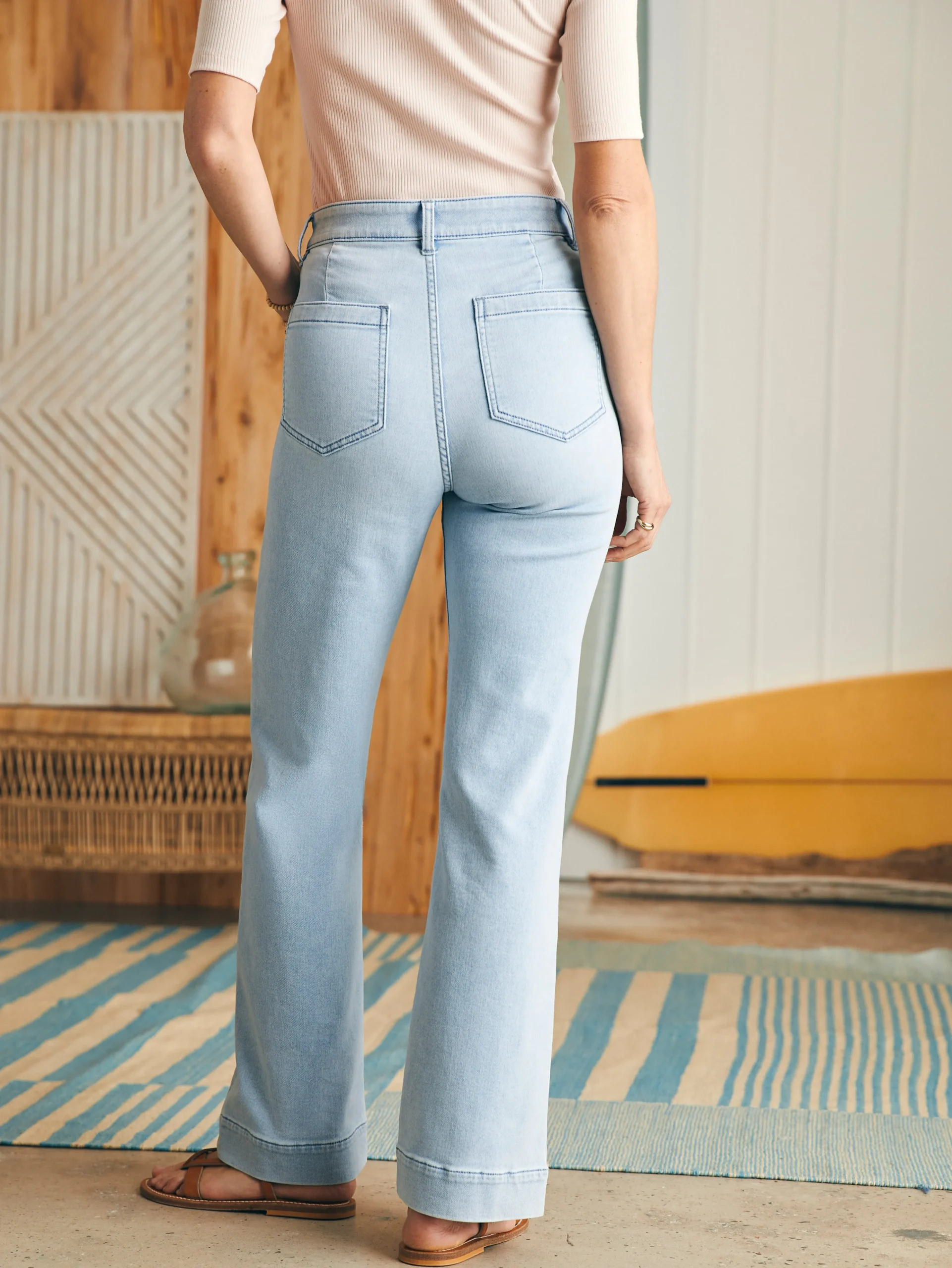 It’s all about our signature Stretch Terry fabric in this 70s-inspired high waist, wide-leg style. With all the softness and washed character of your favorite denim and the stretch and comfort of a pair of lounge pants – we’ve been perfecting these for a few seasons now to be your go-to everyday pants. Each piece of fabric is crafted with real indigo dye, which then goes through an intricate washing process, resulting in slight variations in color and shades. This authentic patina makes each pair of pants distinct and one-of-a-kind.