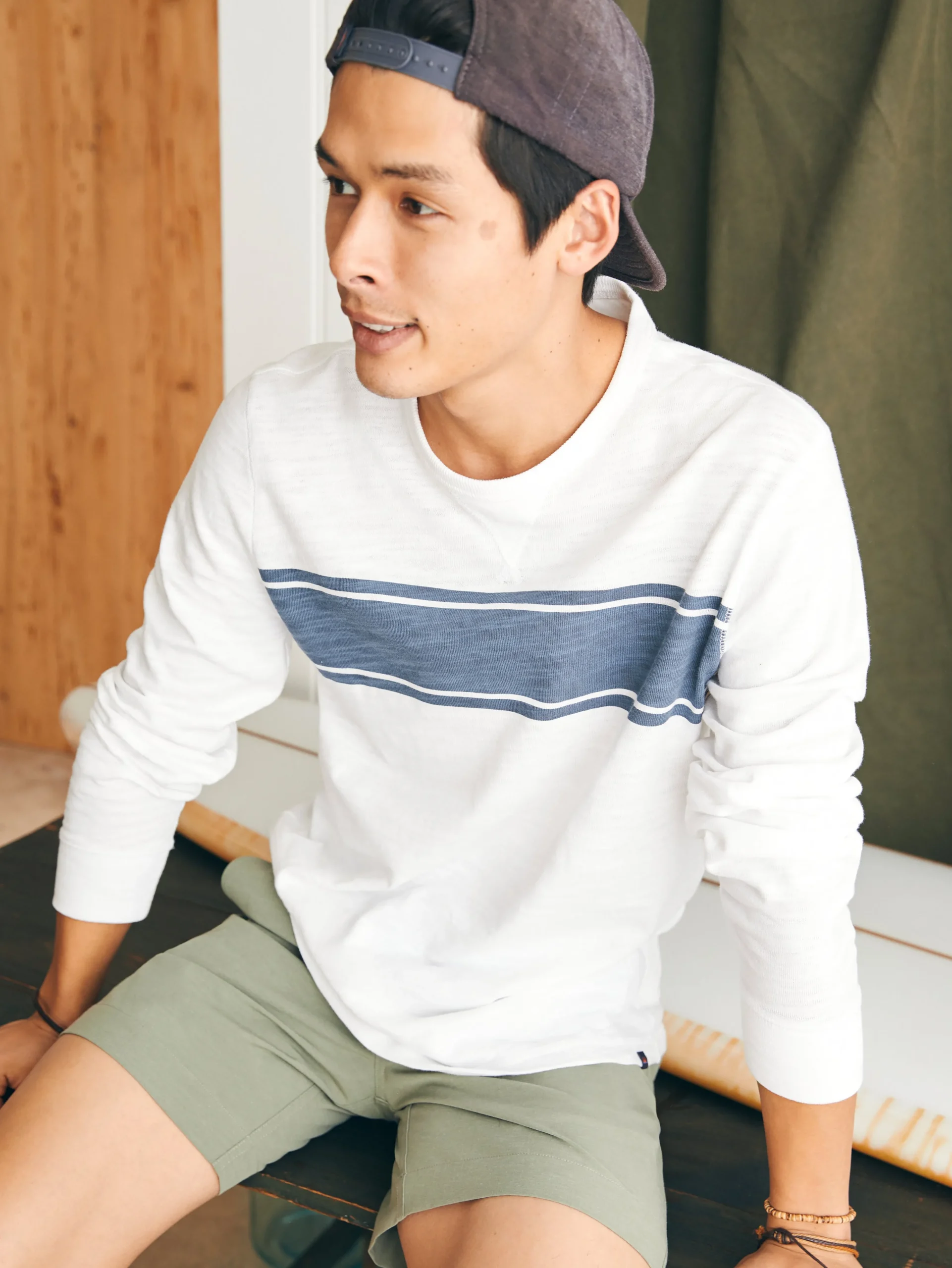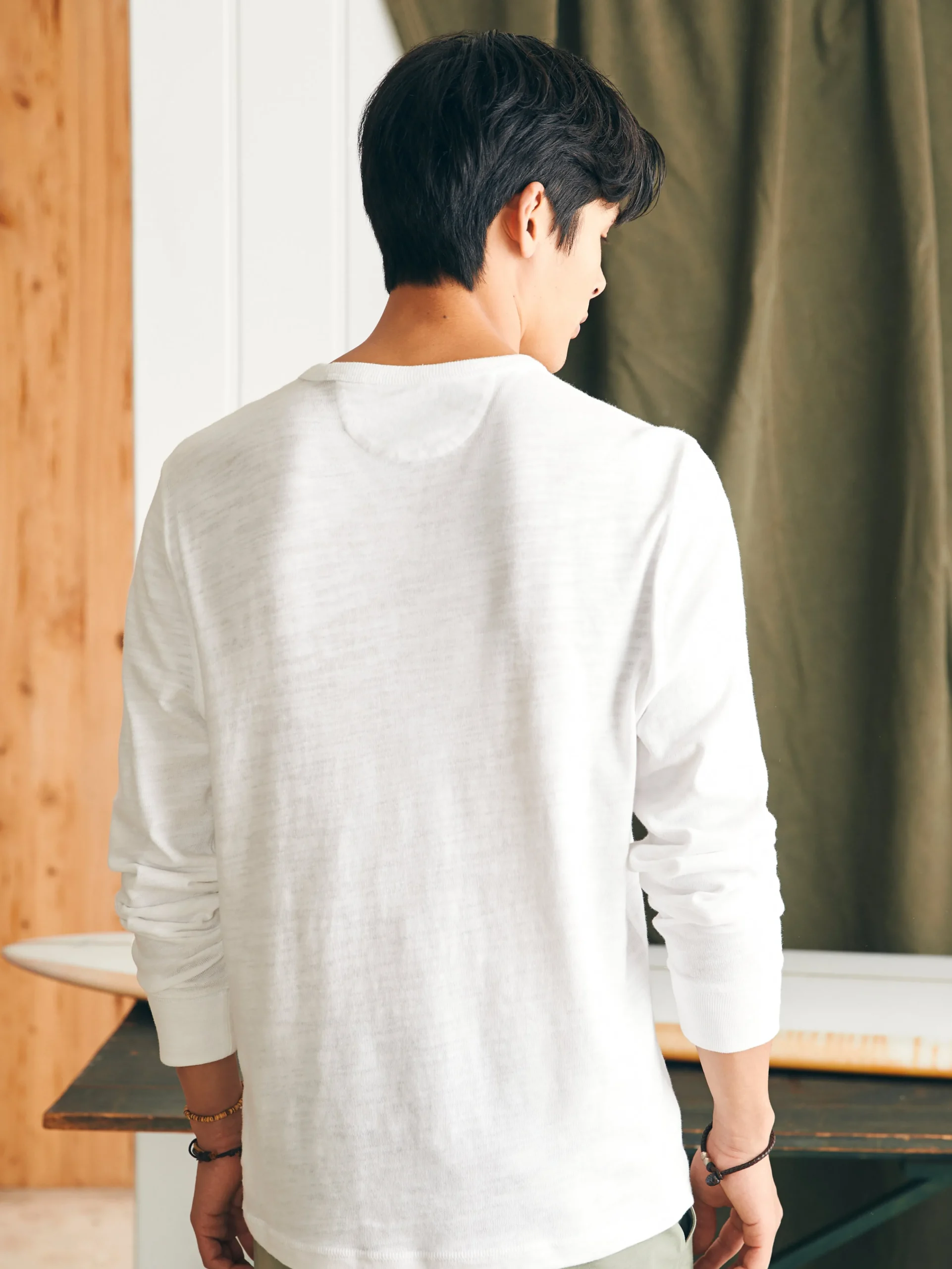 Our slub knit fabric is crafted from high-quality grown cotton and combed for exceptional texture and softness. The perfect layer does all the work of a sweatshirt — featuring a classic relaxed fit, knit ribbing at the collar, cuffs, and hem — without the added weight. Get one, and feel what we’re talking about.