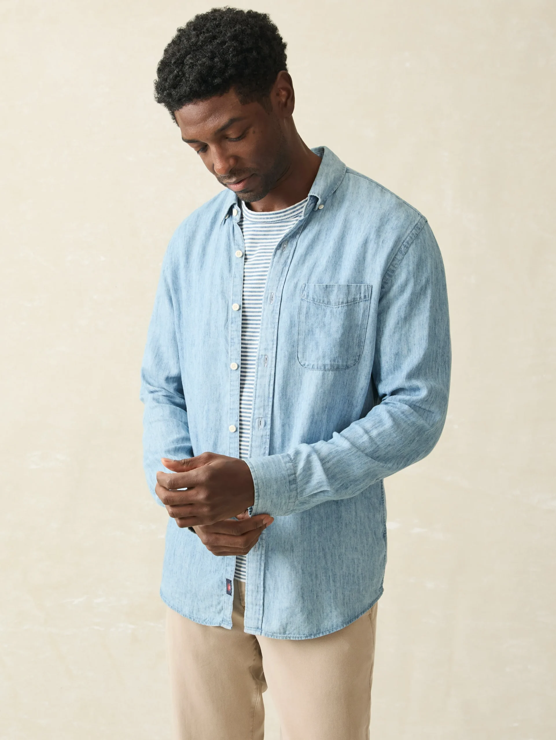 Think of a classic chambray shirt, but super light and super soft. We updated ours in a tencel and linen blend for the softest hand feel and improved breathability. With classic styling, this shirt can go anywhere and do anything—on it’s own or underneath a jacket or blazer