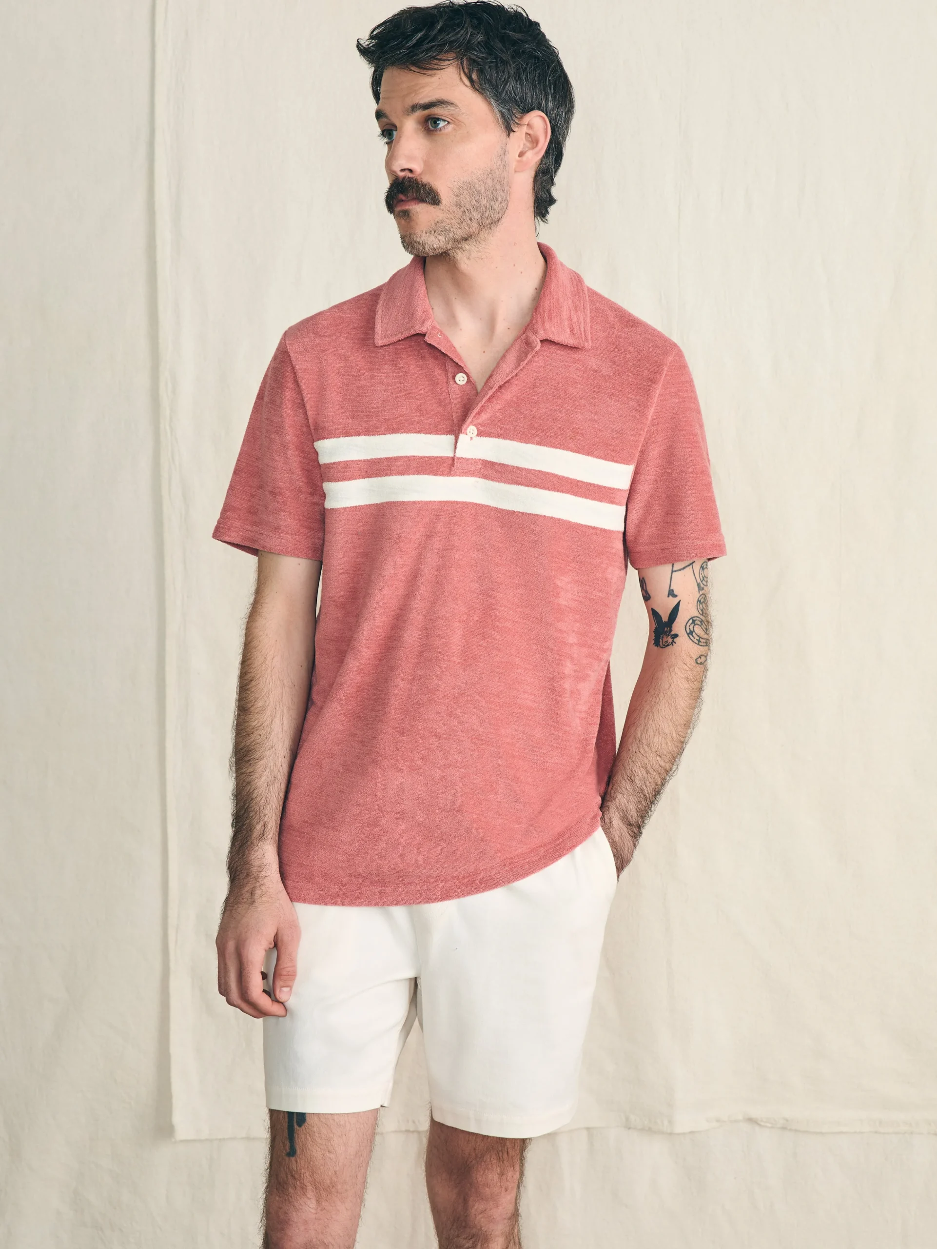 Meet your new go-to for lazy weekends, poolside chilling, or a day in the sun. Channeling ultimate vintage beach vibes. this polo made from a soft terry fabric is fun and relaxed, just like summer should be.