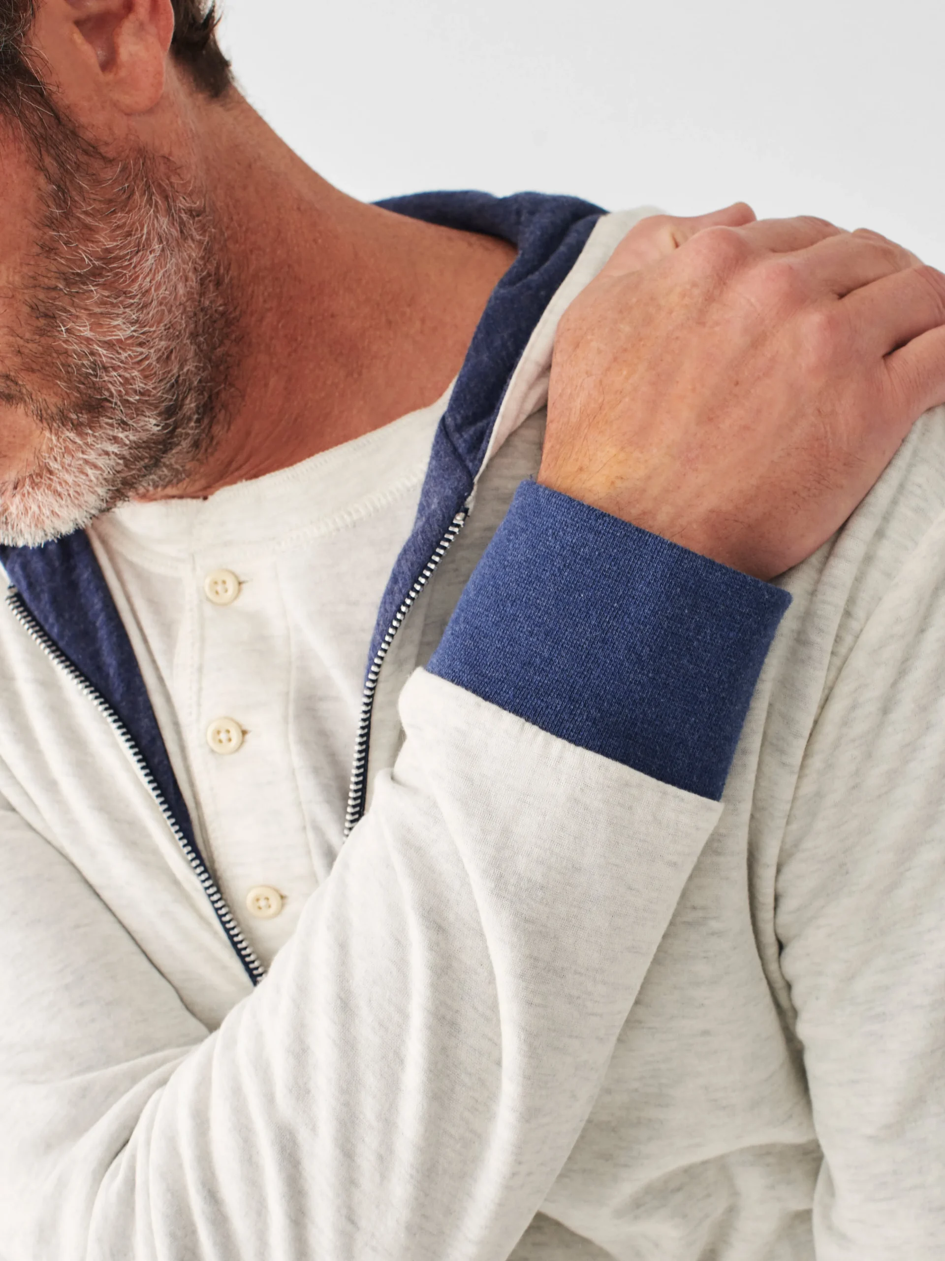 Quite possibly, the world’s softest hoodie. But most definitely the world’s softest reversible hoodie. Incredibly light and soft, this double-knit pima cotton and modal blend is constructed of two layers of our softest Cloud knit fabric. Heathered for texture, this hoodie even features a tear-away tag to reverse flawlessly. Switch colors depending on your mood, roll the sleeve to flash a peek at the other side.
