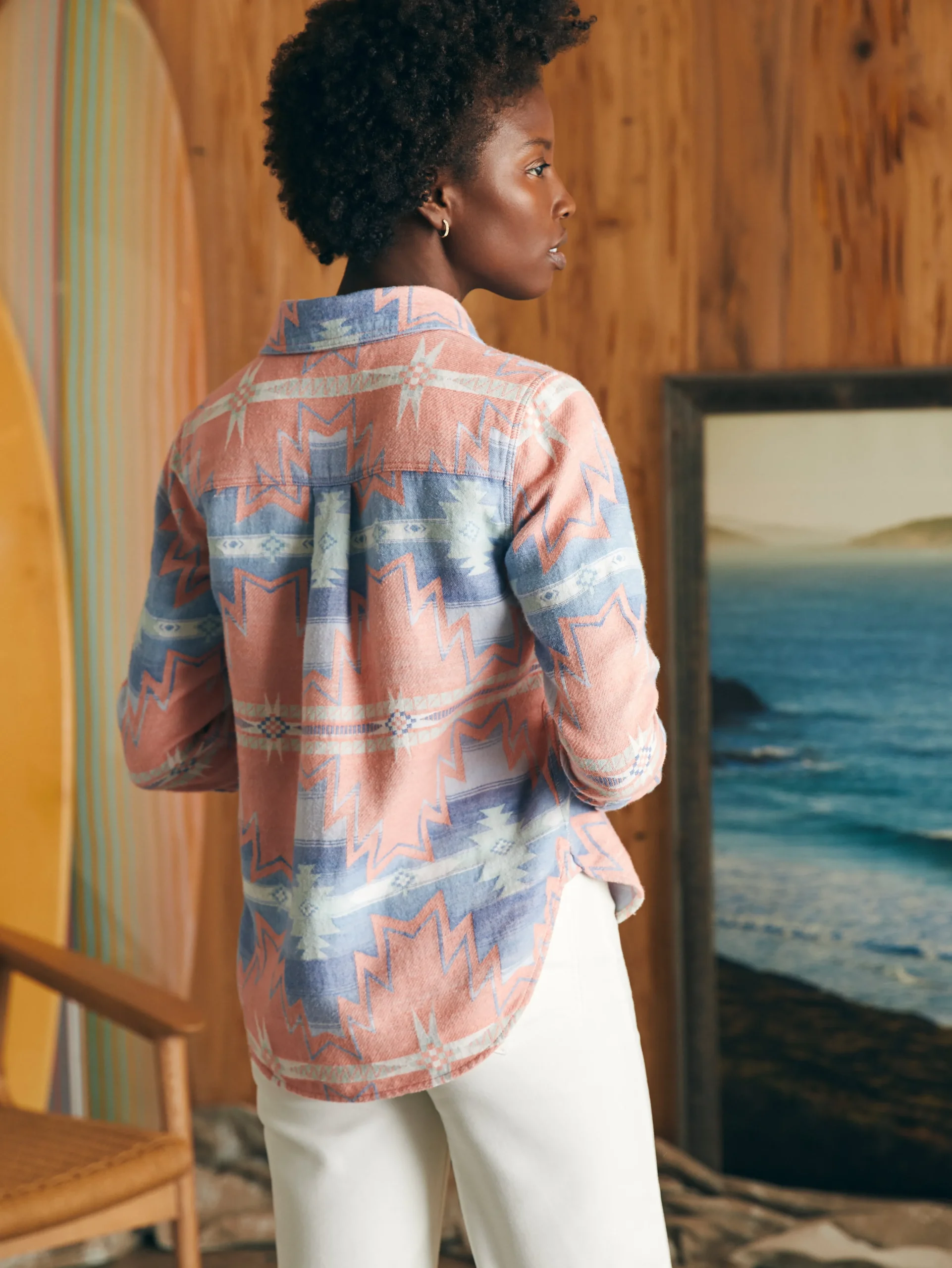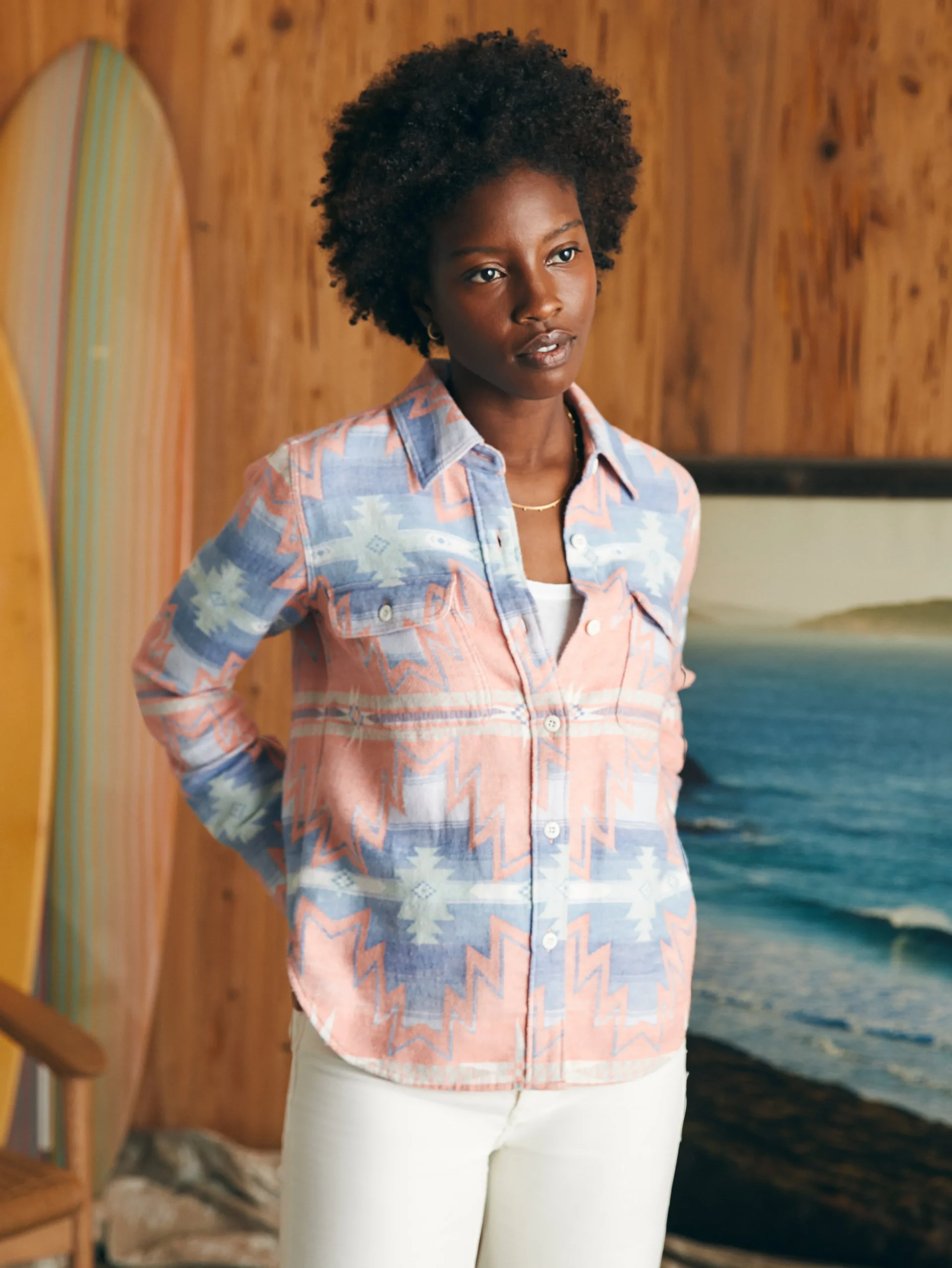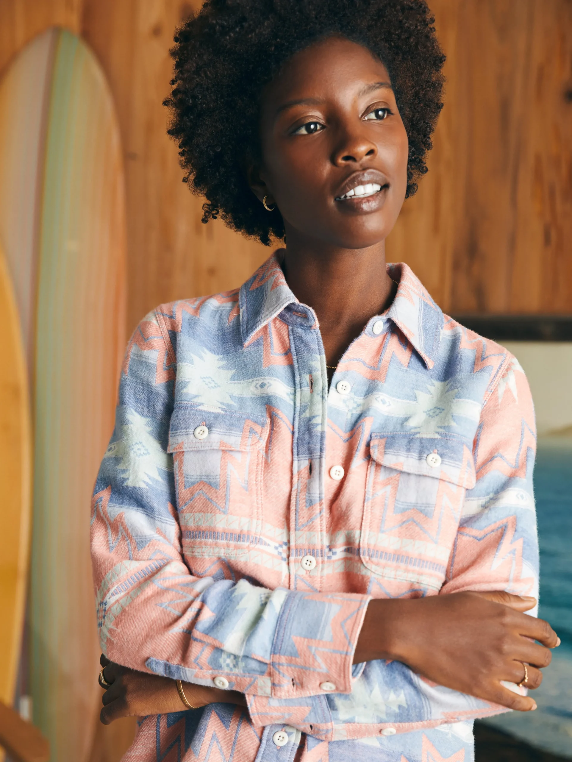 Crafted in 100% organic cotton, this work shirt incorporates all the elements of the cool, vintage styles we love. Featuring an exclusive pattern designed by our friend and Native artist, Doug Good Feather from the Standing Rock Lakota and Dakota Nation, its casually rugged style instantly turns your everyday jeans into a statement look.