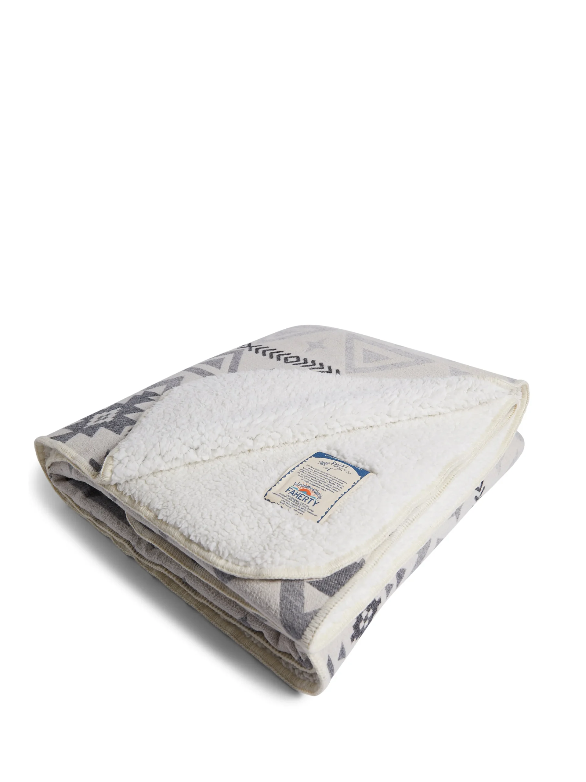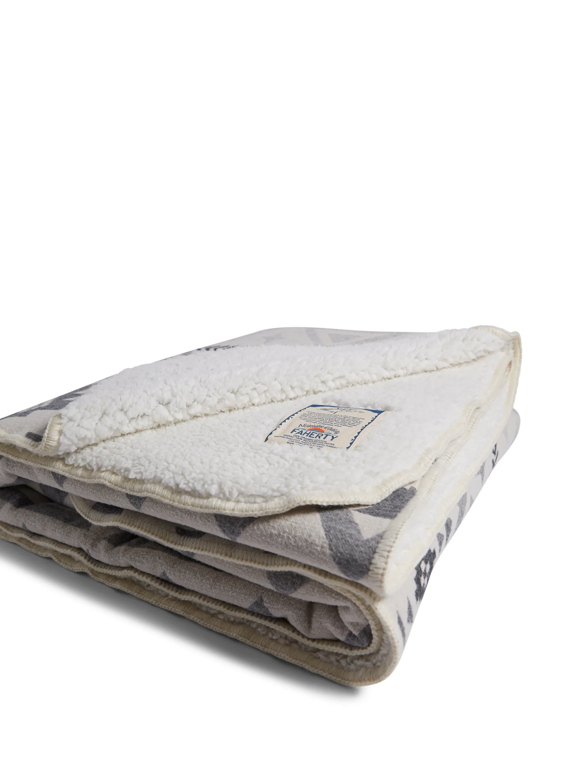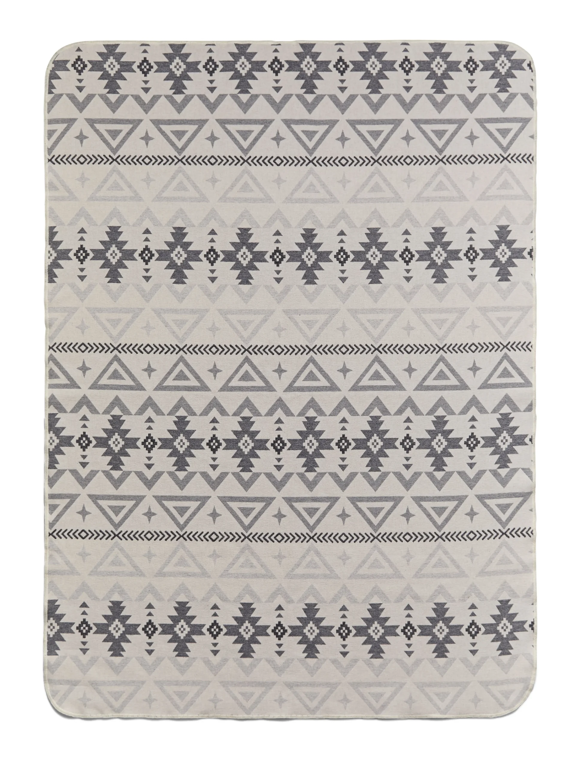 Created in collaboration with Native artist Doug Good Feather, this super cozy blanket features his Prairie Stream design knit in organic cotton on one side and plush high pile fleece on the other. An artist, veteran, author, and teacher, Doug Good Feather is from the Standing Rock Lakota and Dakota Nation and is the founder of the Lakota Way Healing Center. Our ongoing partnership has enabled the Center to purchase 160+ acres of land and expand its ability to offer Indigenous spiritual practices to anyone in need of healing.