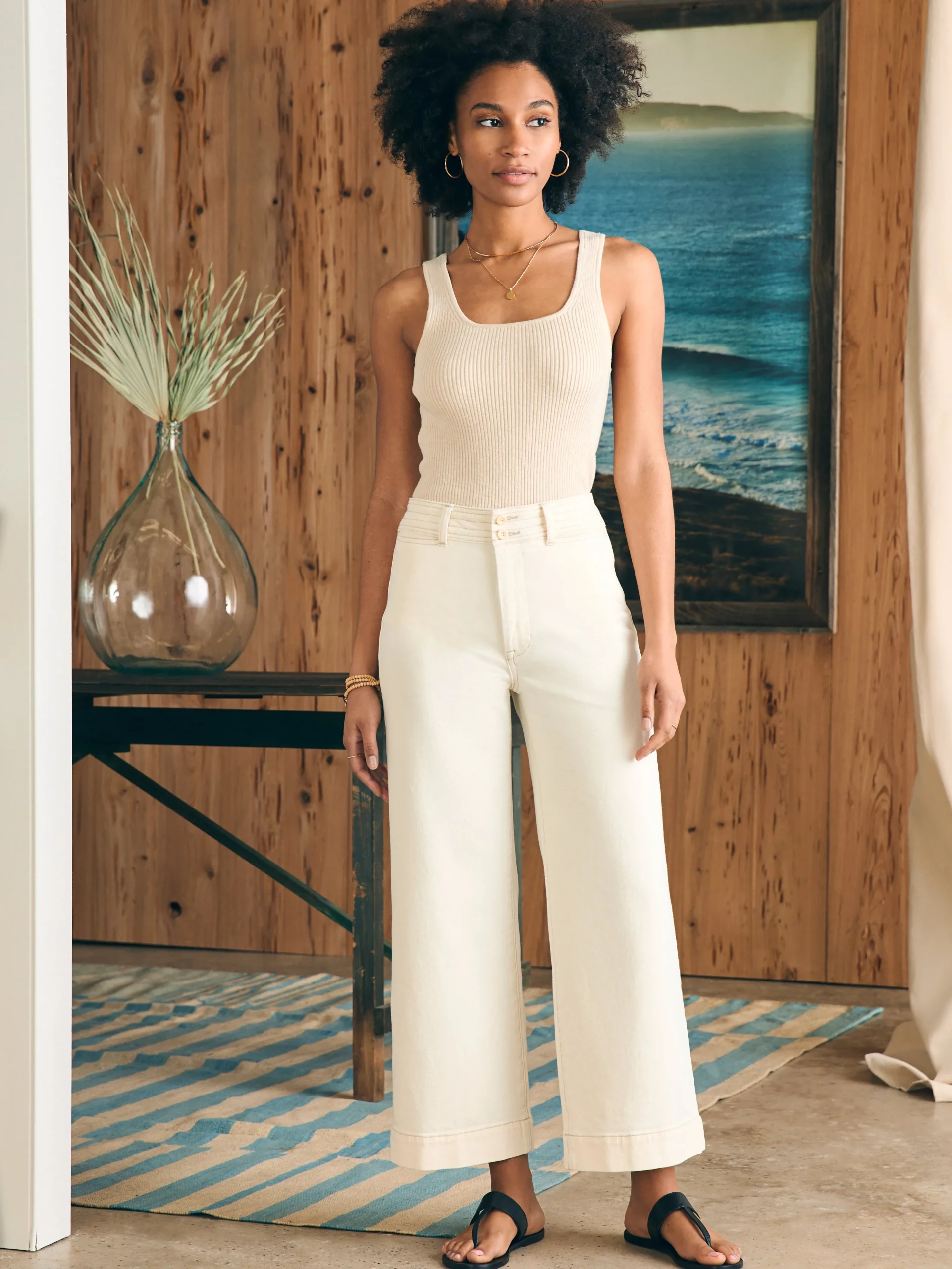 We spent years developing the perfect denim fabric—organic cotton woven with a textured slub yarn that washes down and ages beautifully. Combined with the perfect amount of stretch and a just-right fit that’s comfortable enough for all-day wear, yet elevated for a night out, they’re the most comfortable and lived-in jeans you’ve ever worn. They also feature an innovative, energy-efficient wash process that utilizes 80% less water than conventional denim wash methods. Our new Harbor Crop silhouette features a high rise and wide leg that hits at the ankle for a polished and playful look in a truly versatile, authentic wash of color.