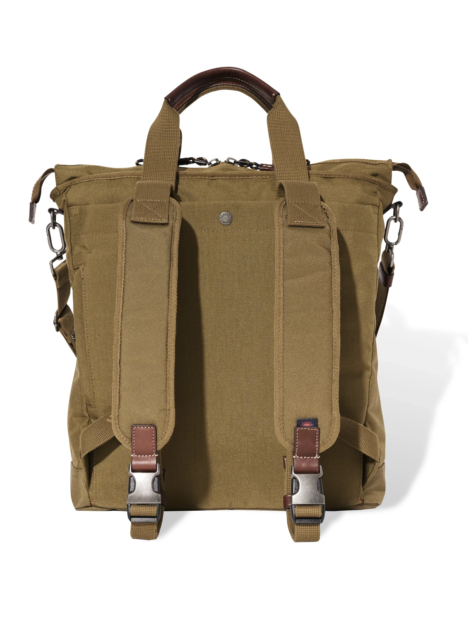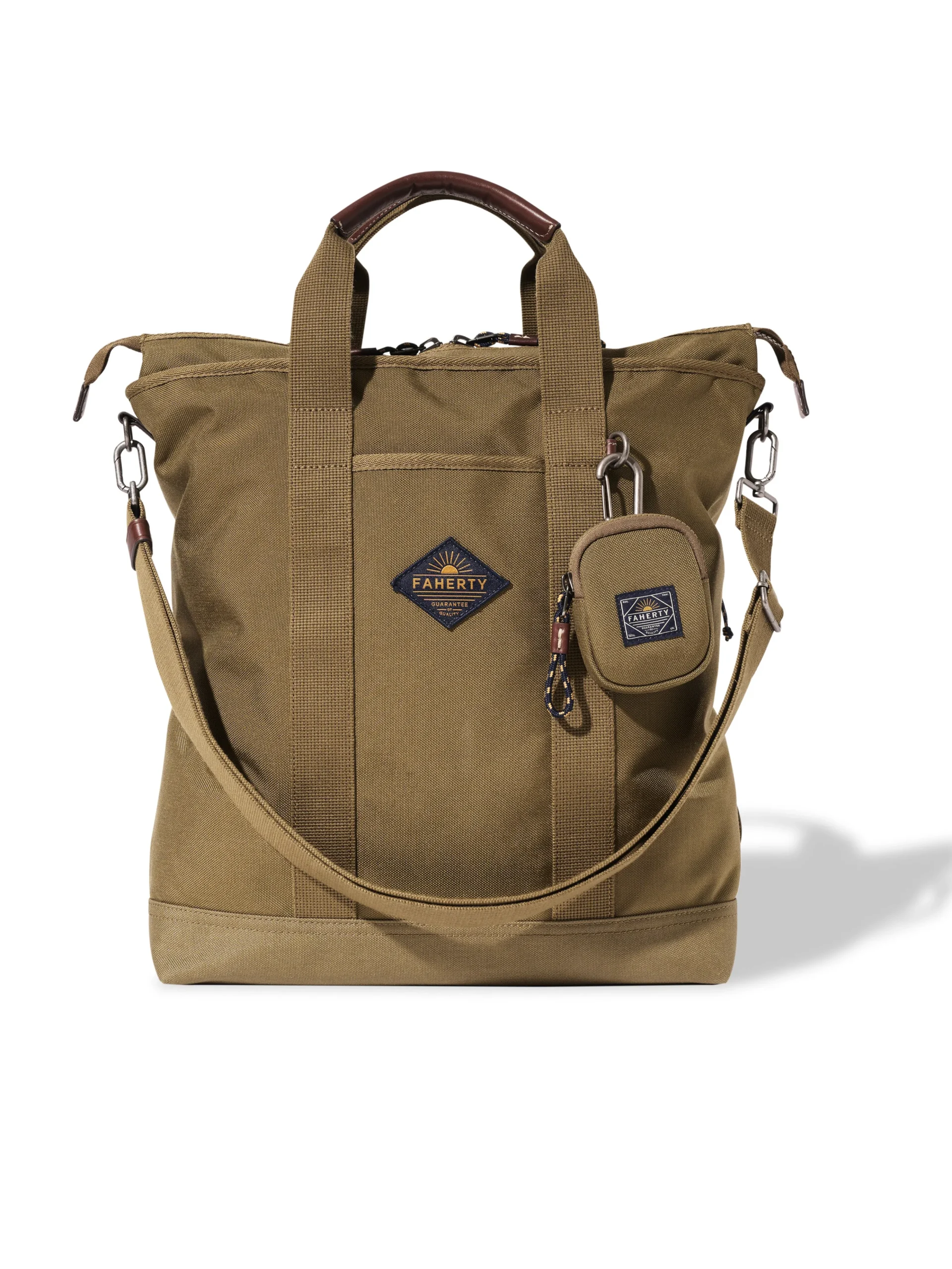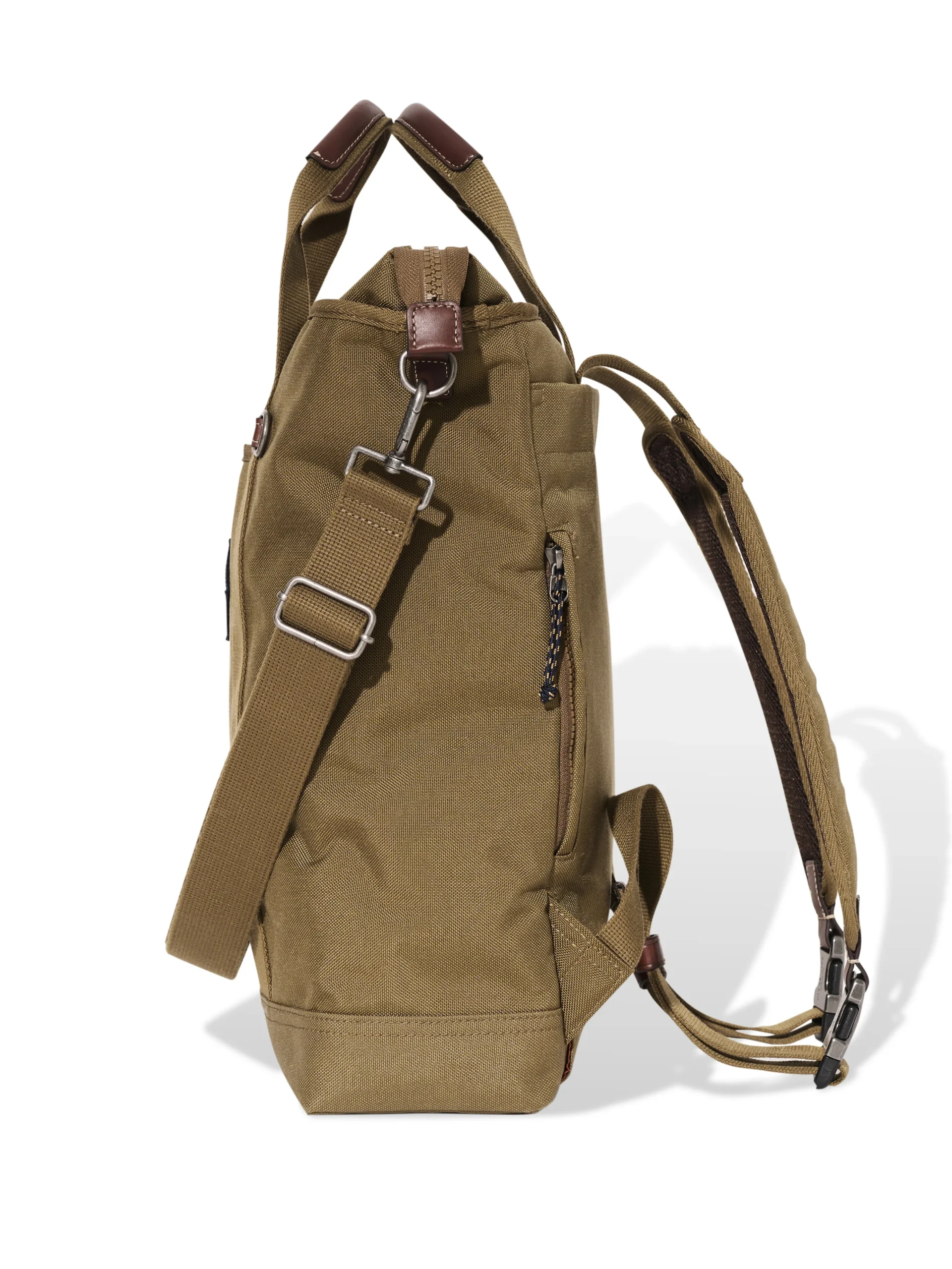 Travel is in our DNA and we’ve logged thousands of miles chasing the sun and waves. For our first ever bag collection, we knew we had to create some epic gear for when adventure calls. Our Latitude Convertible Tote Backpack embodies that in every stitch. Seamlessly transitioning from urban streets to remote trails, this bag is all about versatility so you can just get after it. Made from lightweight, durable, and water-resistant recycled nylon, it’s got ample space for your essentials – including an internal padded zip pocket for a laptop. The backpack straps unclip and can be tucked away into a back pocket for sleek conversion to a tote. And check out the interior pockets with microfiber lining to protect your phone and glasses, as well as a back zip stash pocket. Topping it off is genuine leather trim (processed with DriTan™ Technology which drastically reduces the amount of water used in tanning) for a rugged charm that also stands up to the rigors of travel.