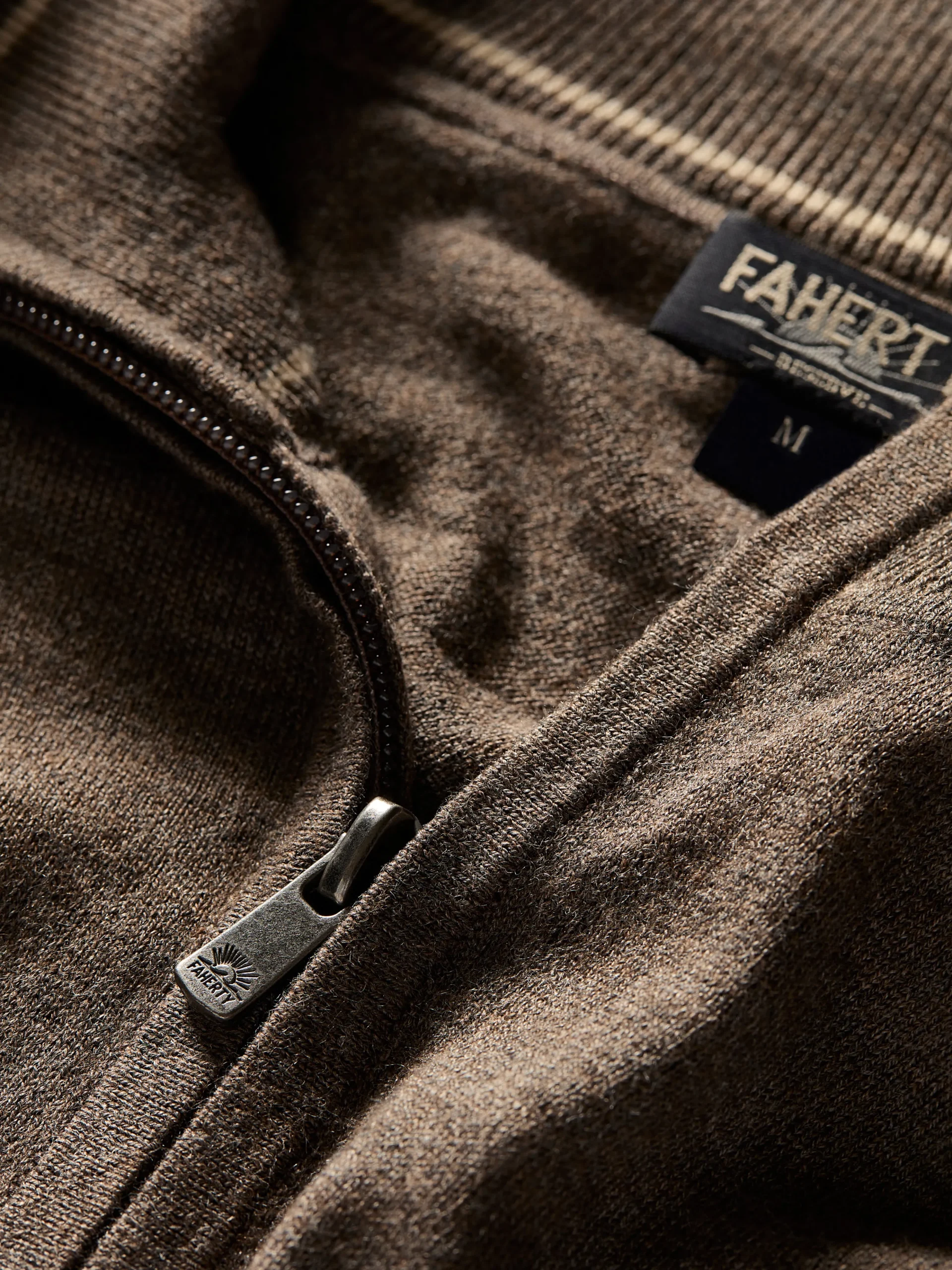 - Material: Shell – 55% Cotton, 45% COOLMAX® EcoMade Polyester; 95% Organic Cotton, 5% Cashmere Interior Collar Stripes; Elastane Collar, Cuff & Hem Ribbing; Antique Nickel Zipper at Centerfront