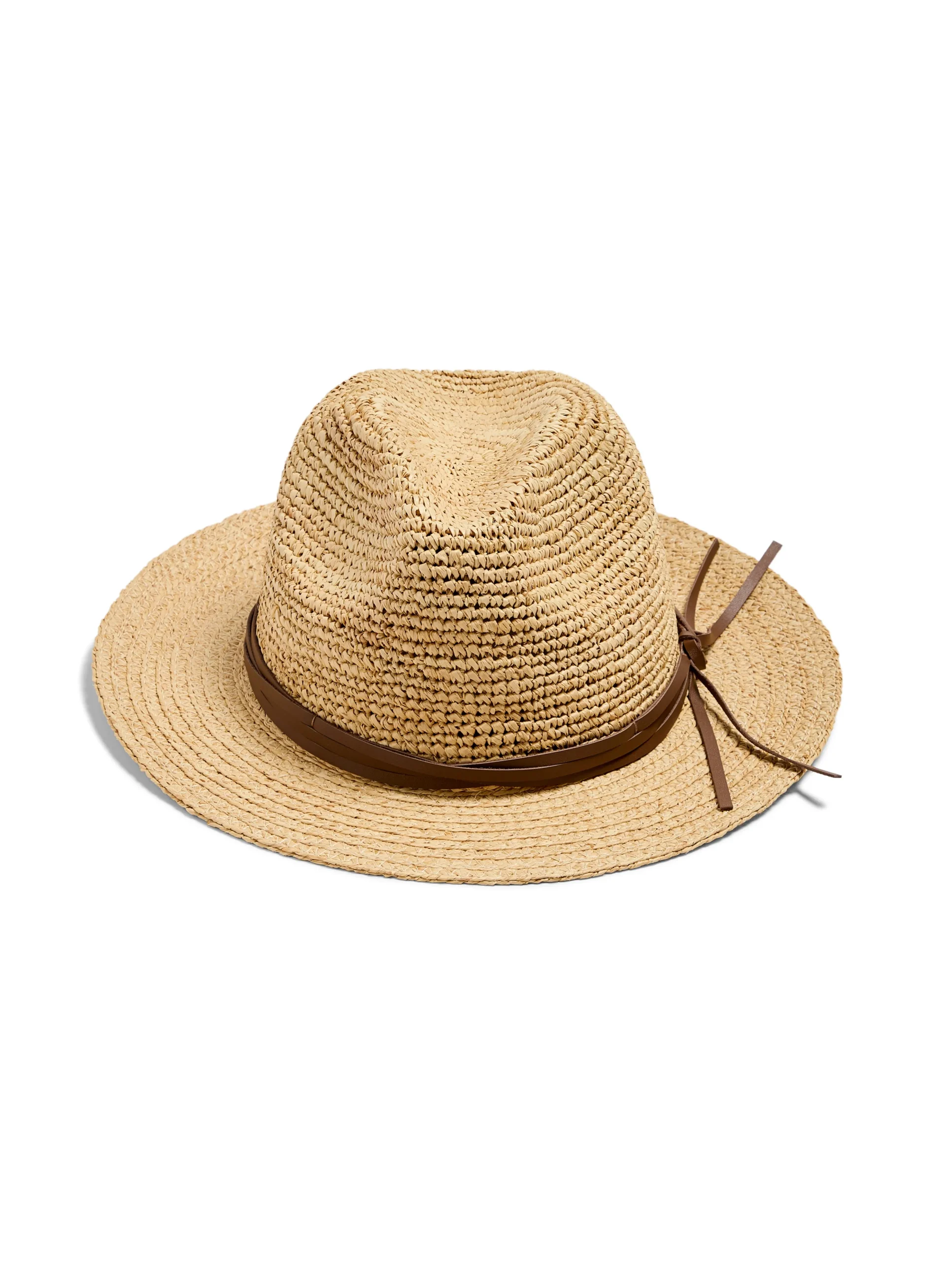 Fit: One SizeMaterial: Body: 100% Raffia. Trim: Cow SuedeCare: Spot CleanYH0008-107Expertly woven from straw, this styli…