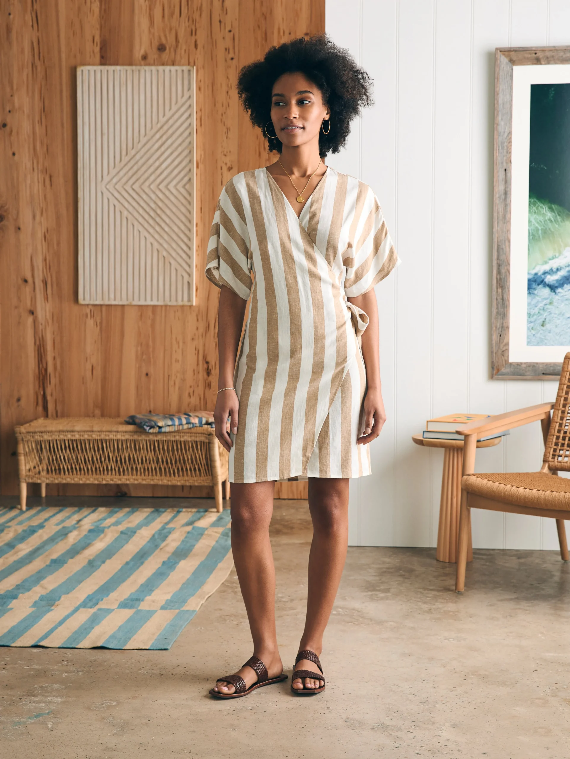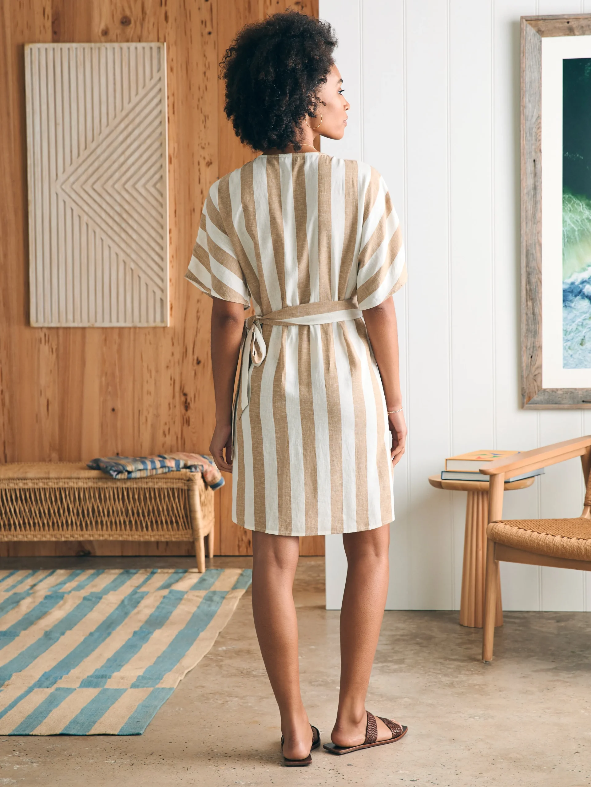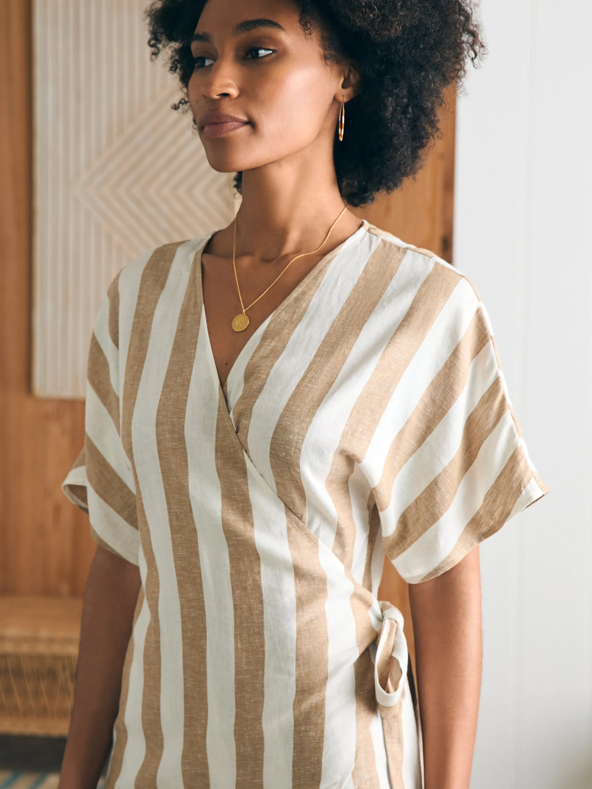 Our timeless wrap dress is designed with all the elements of the style: a flattering V-neck, adjustable tie to define the waist and highlight your curves, and graceful dolman sleeves. In a breezy linen and sustainable viscose blend, it flows with feminine ease for casual and formal events.