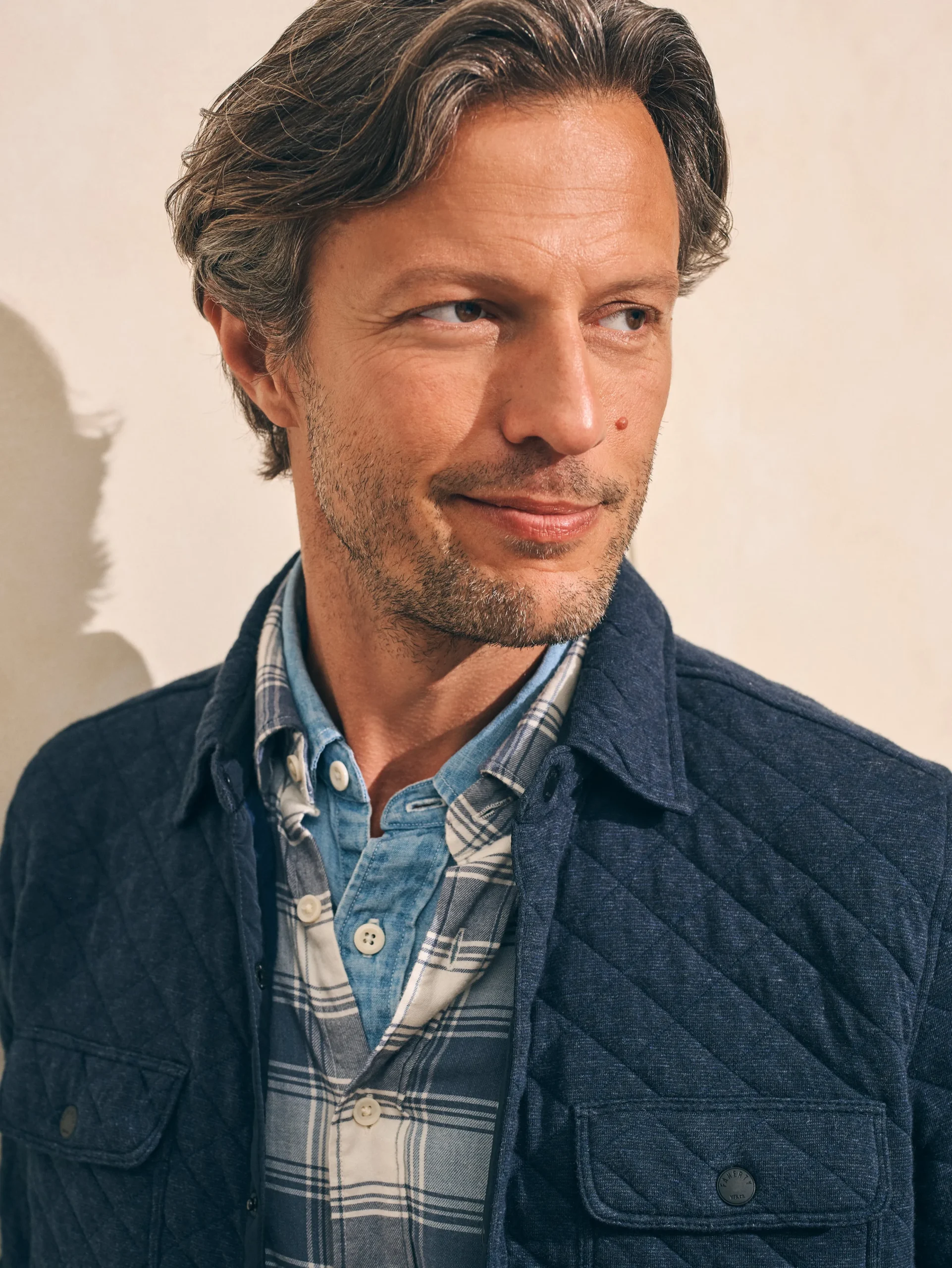 Rooted in military heritage, the CPO is a midweight masterpiece. Each diamond stitch pattern holds a just-warm-enough insulation between two layers of heathered fleece while still remaining light and allowing for mobility. Timeless utility details add to its casually rugged style, making it your favorite transition piece when the cooler months roll in.