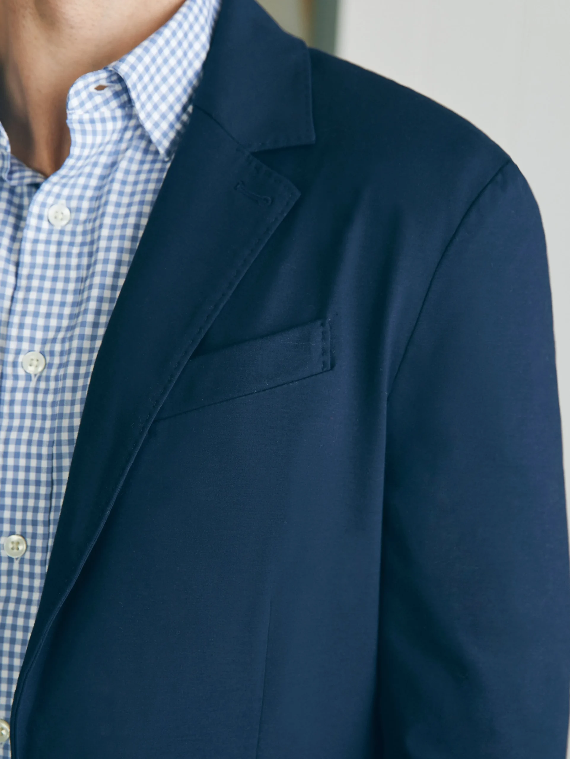 - Detail: Welt pocket at wearer’s left chest. Lower pockets with flaps that can tuck into double welts. Two interior pockets. Welt pocket at wearer’s right interior and hidden zipper pocket at wearer’s left interior for secure storage. Fully lined sleeves. Lightweight unlined blazer construction. Bound internal seams. Non-functional four-button cuffs.