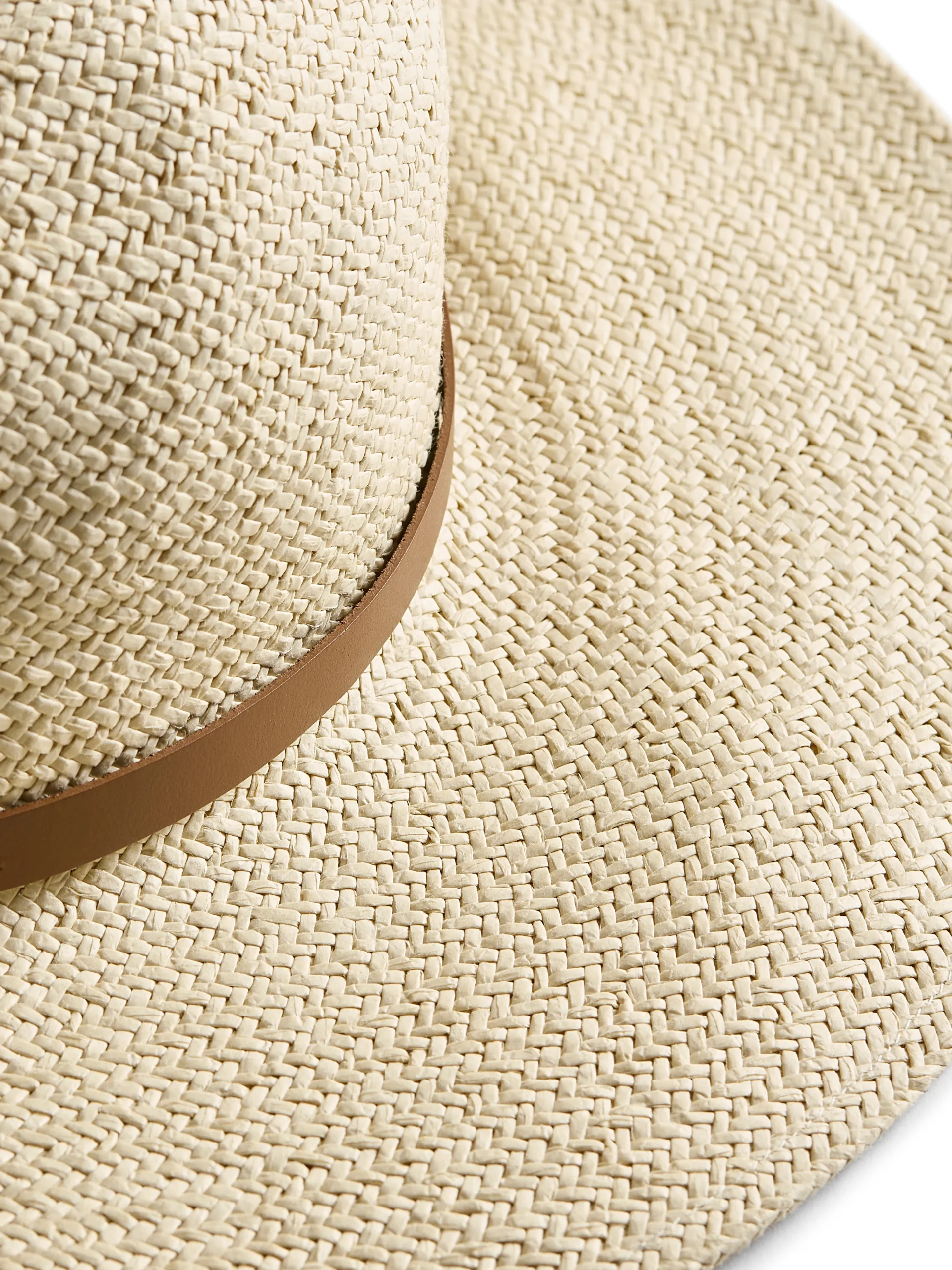 This stylish rancher style is crafted from lightweight woven raffia for a casual and relaxed vibe.