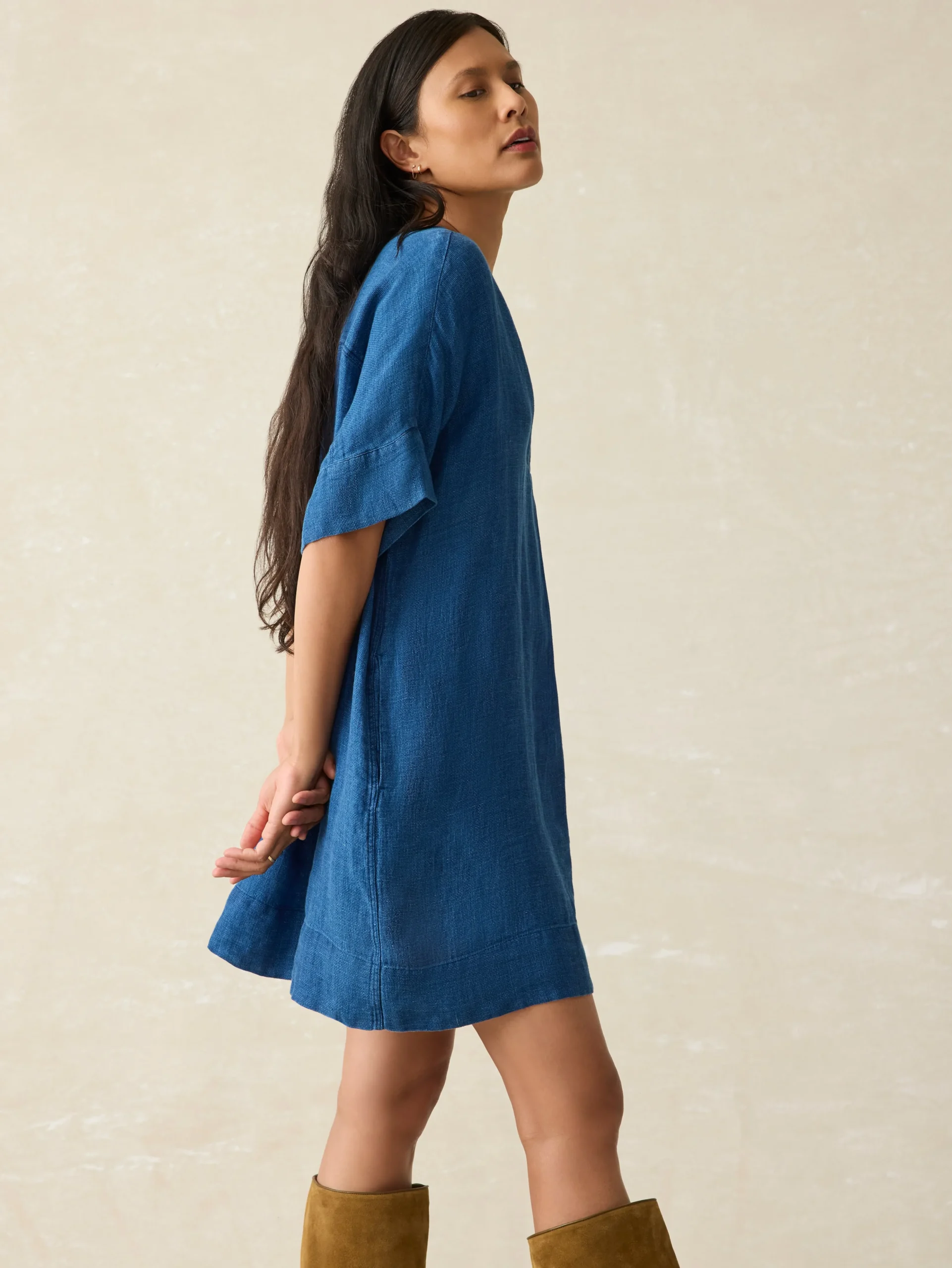 It’s all about barefoot glamor in our effortless pullover dress made for the most leisurely days. The luxe basketweave texture of this premium linen gives it an elevated drape that looks perfect with a spritz in hand.