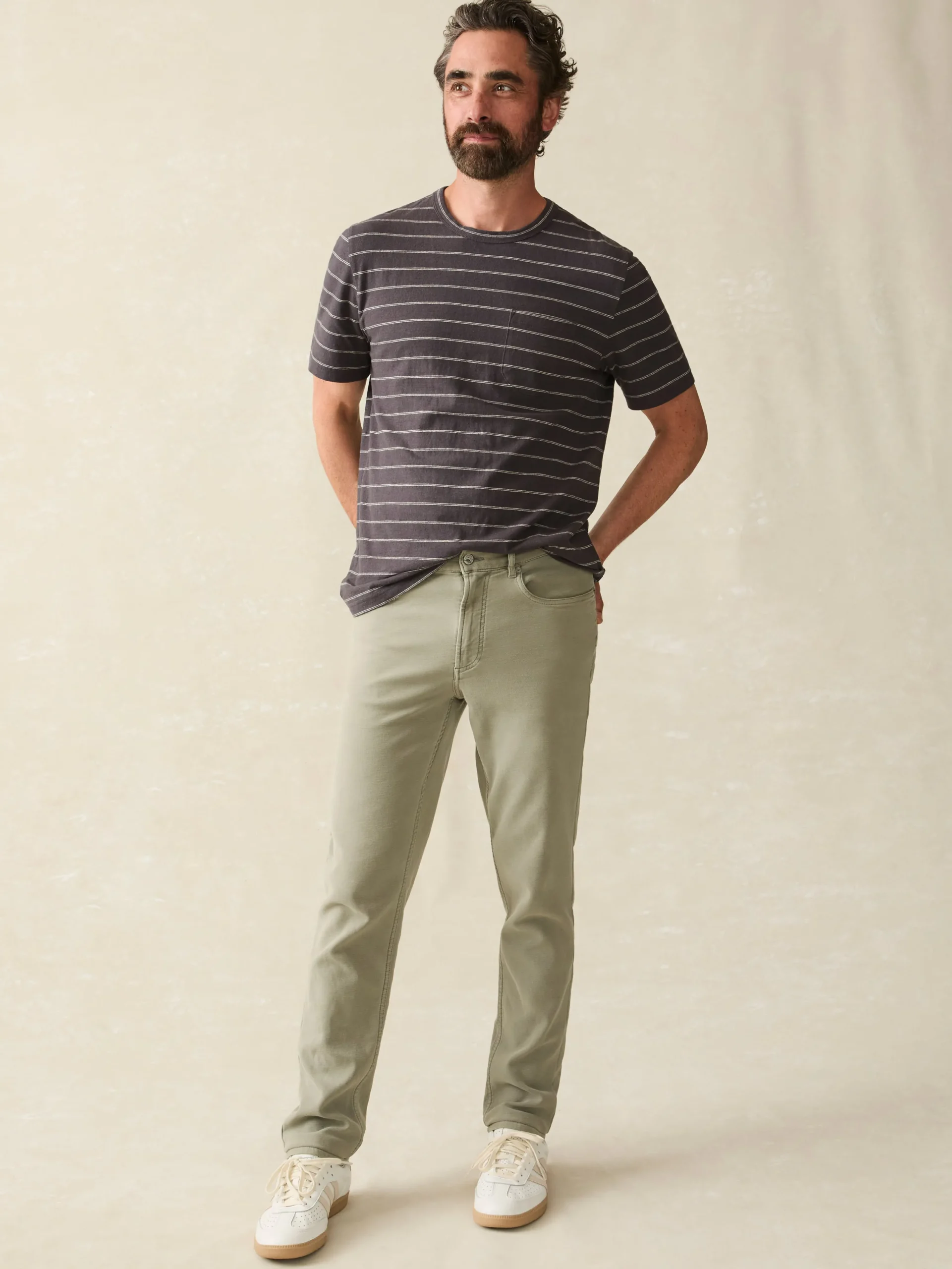 There’s nothing quite like our Stretch Terry 5-Pocket pants out there. Why? Frankly, there just aren’t that many other people thinking about what would happen if they combined their favorite pair of slim, straight leg jeans with absurdly soft sweatpants. The proprietary stretch fabric dreamed up by Mike, our Co-founder and Chief Creative Officer makes it all that and more. We recommend ordering your true size. Like new denim, they might feel a bit snug right out of the box but trust the process. Your natural movements will make them relax and conform to your unique shape.
