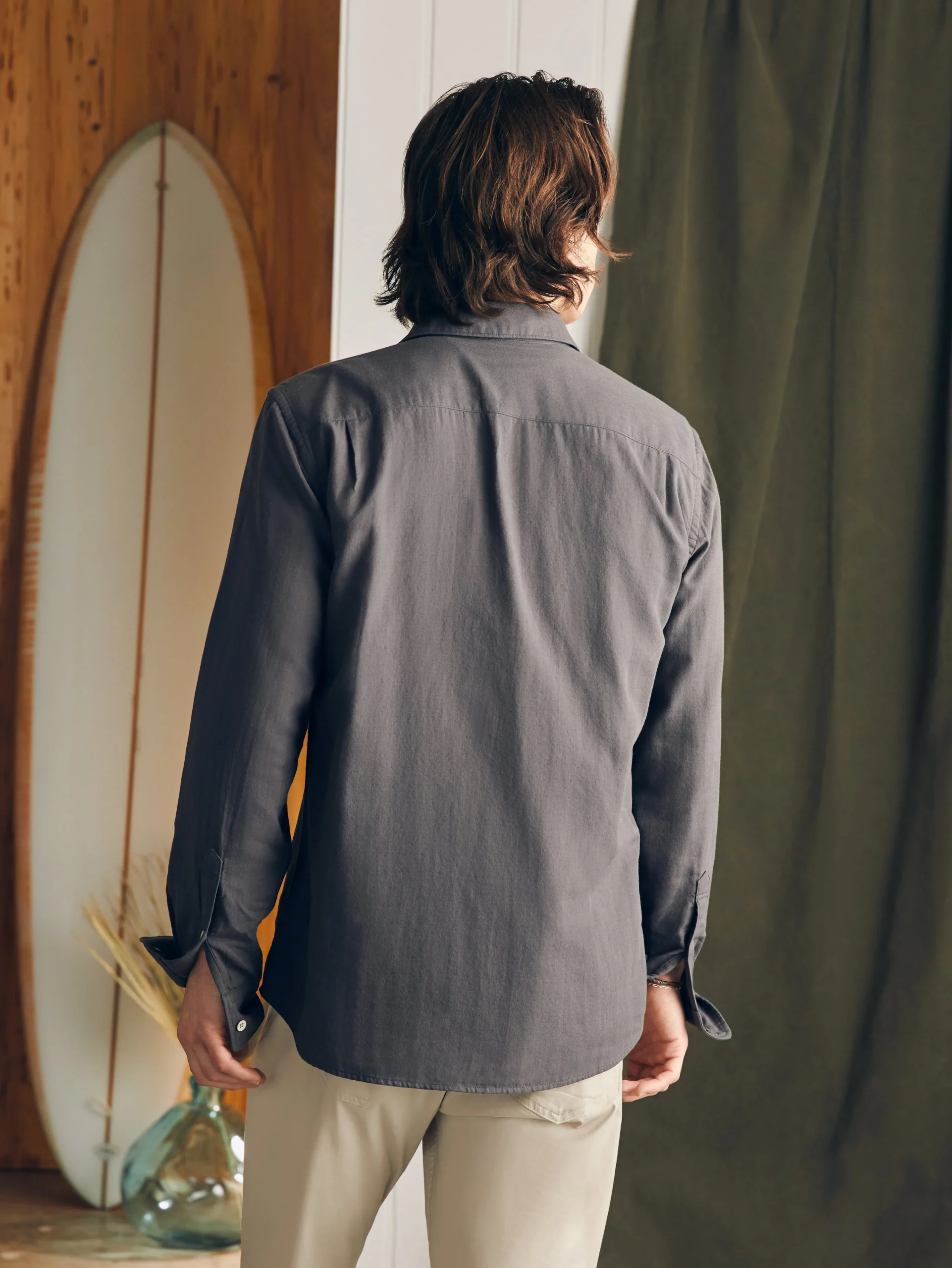 The key callout on this laid-back button-up is its incredibly soft double cloth fabric. With an airy, homespun nature, the weave has a subtle dotted texture for extra character. If you’re looking for a button-up to wear with shorts and flip-flops or even on a casual evening out, this is it.