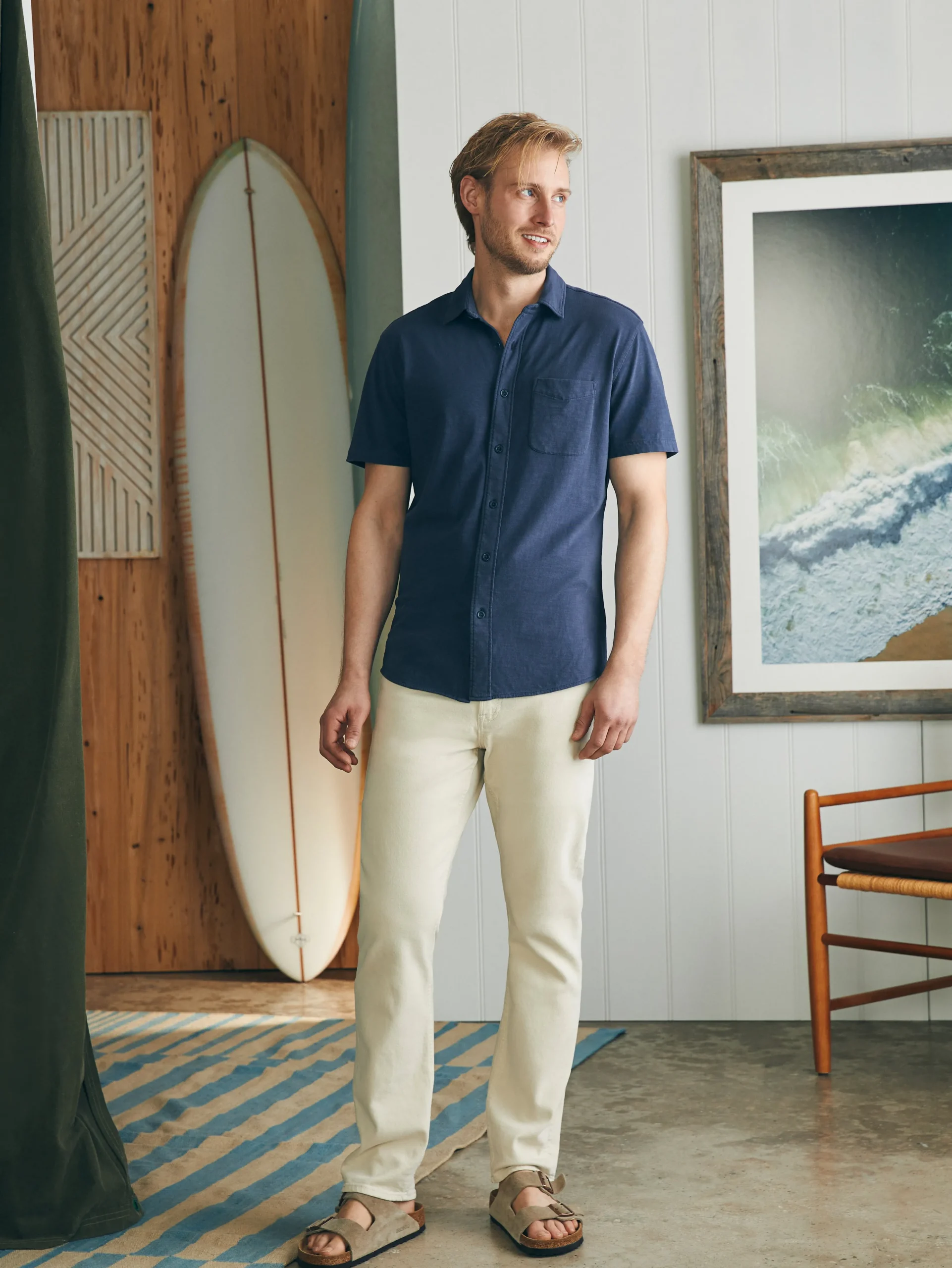 Crafted from incredibly soft 100% organic cotton and knit (rather than woven), the Knit Seasons shirt looks like a button-up with utility style details, but feels like your favorite tee. New for this season is the single pocket design that gives it a more minimal and streamlined look.If you’re looking for the Knit Seasons shirt, this is the latest and greatest version, under a new name.