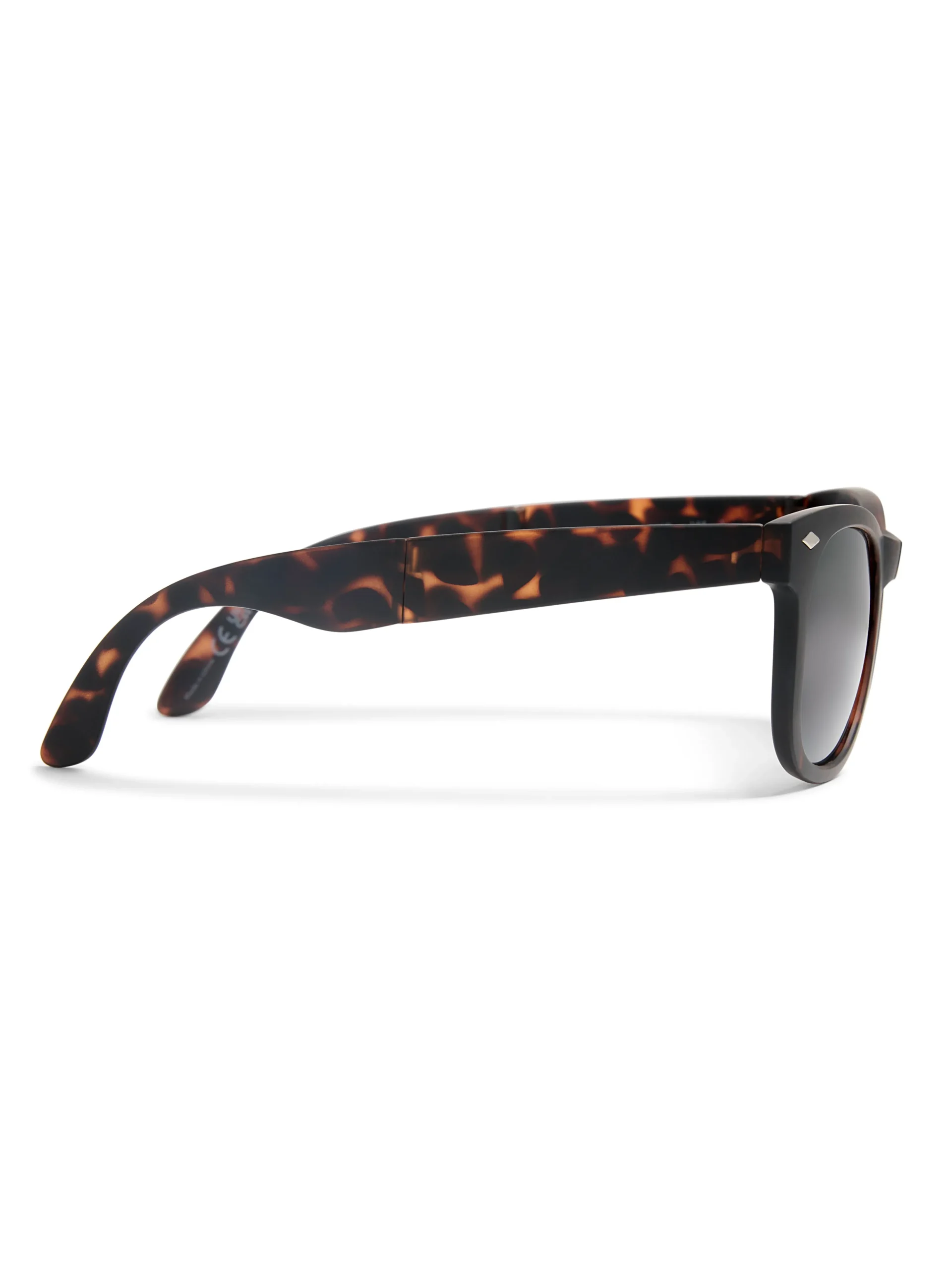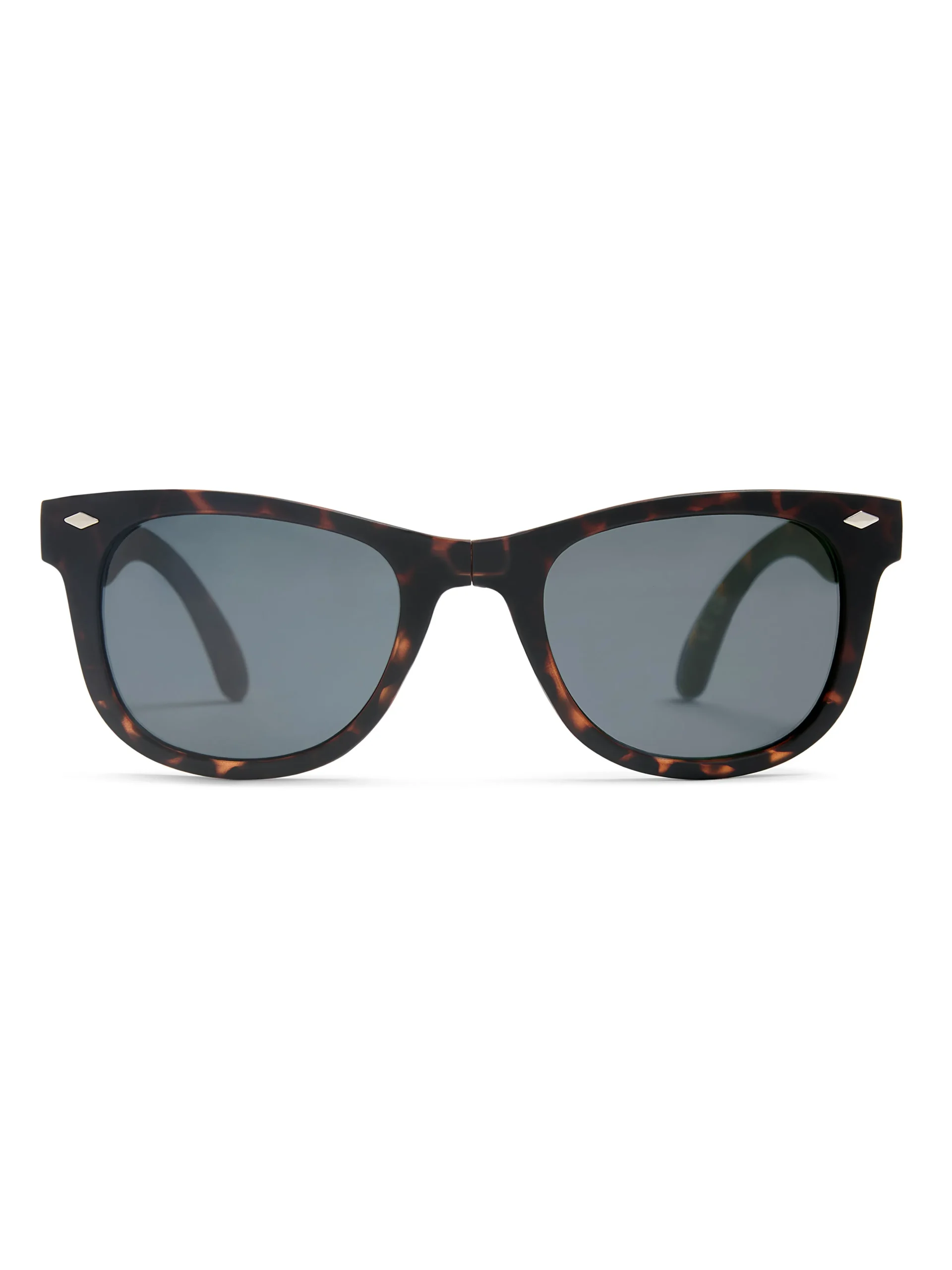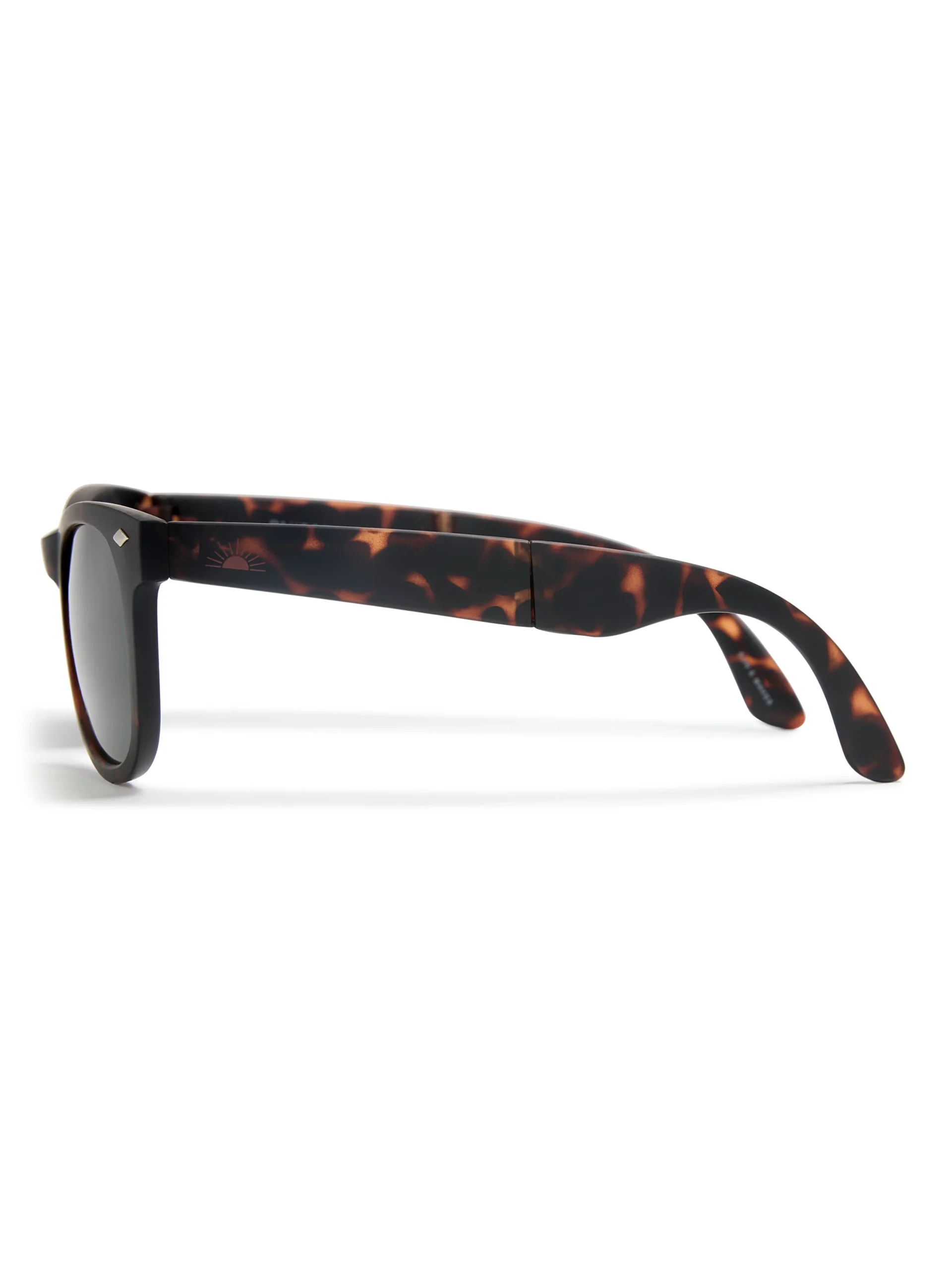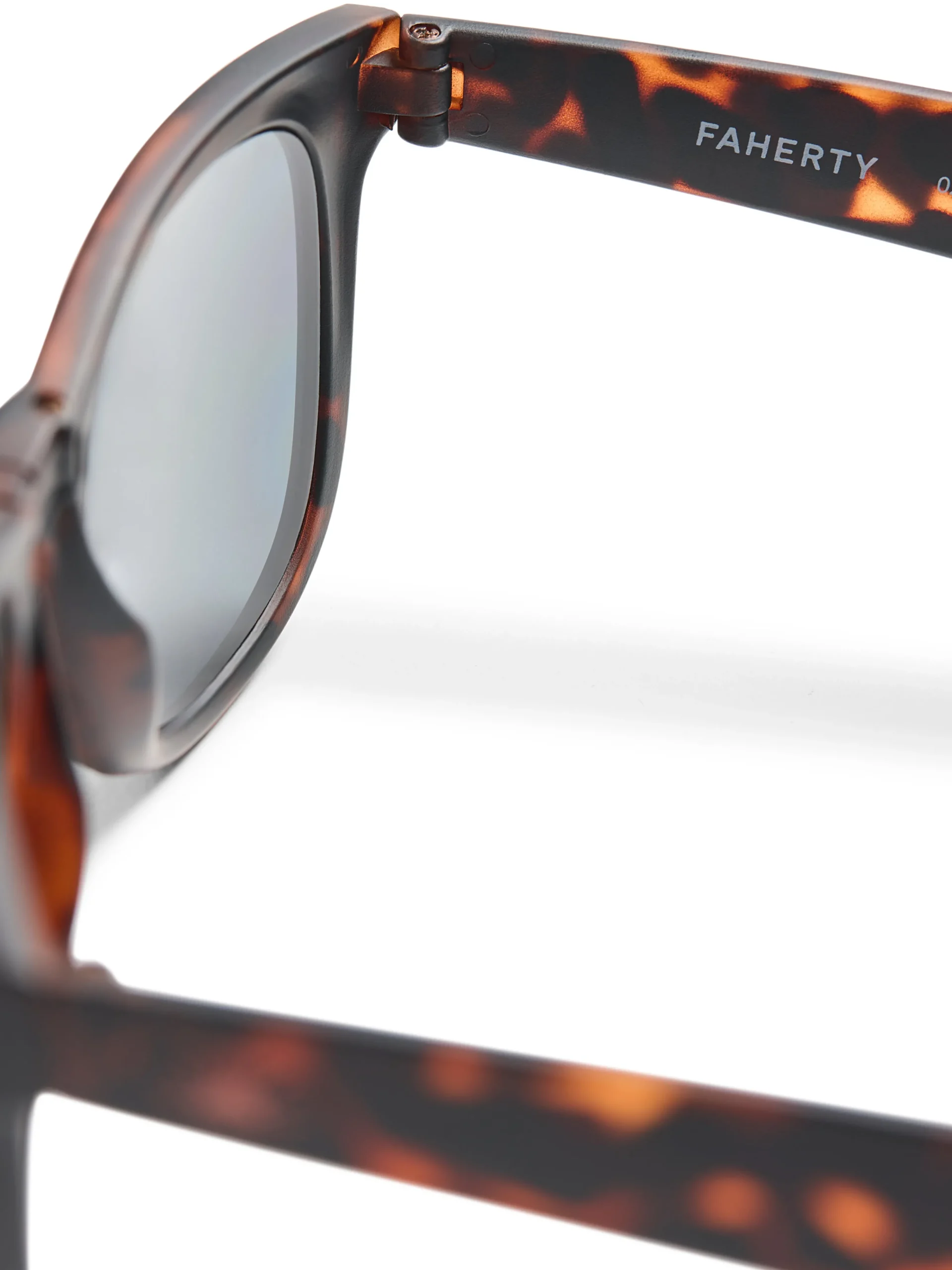 - Detail: Sporty foldable ; Signature Faherty sun logo wearer’s left temple; Tag line “Sun & waves” printed internal temple tip; polarized lenses