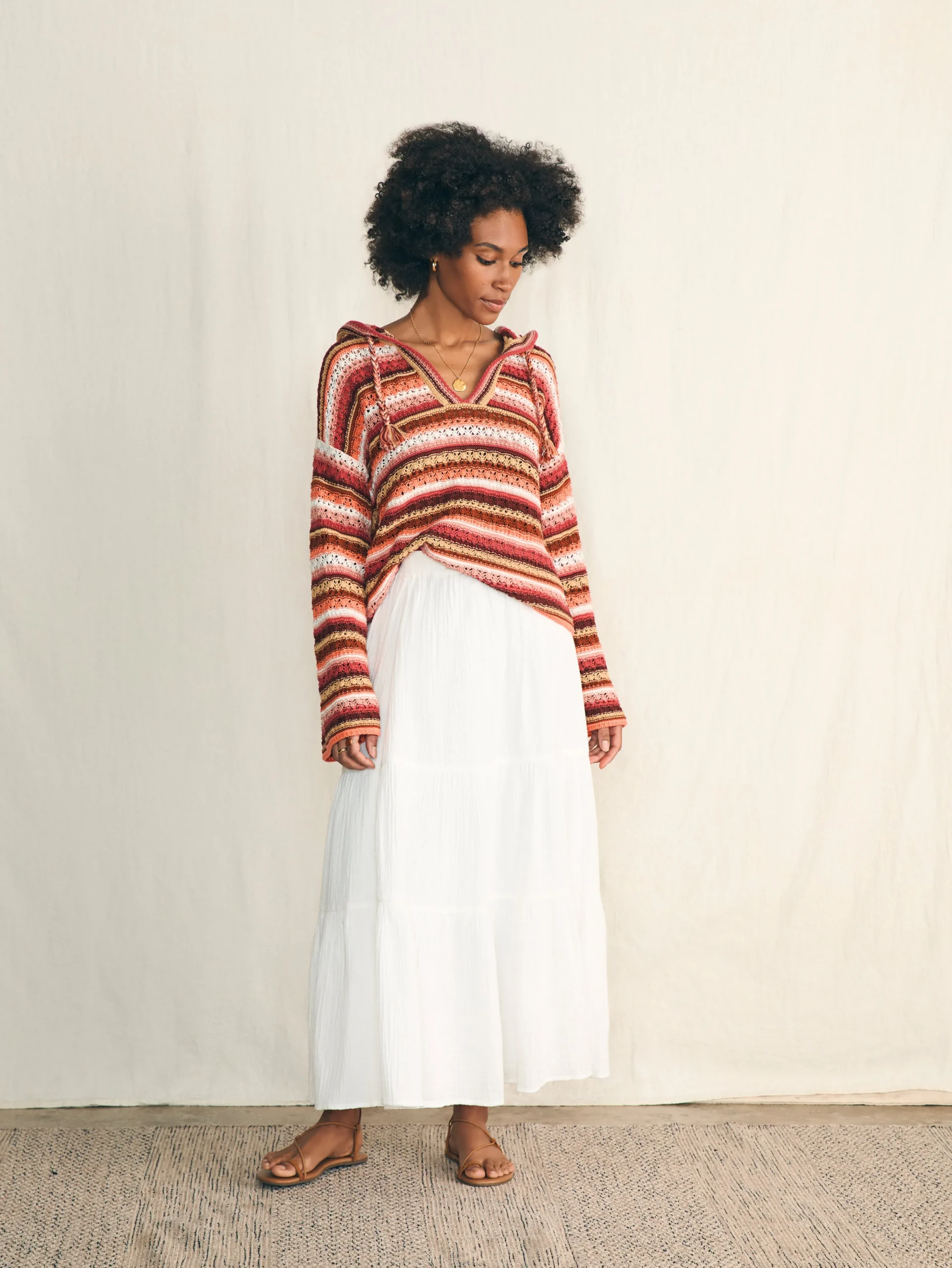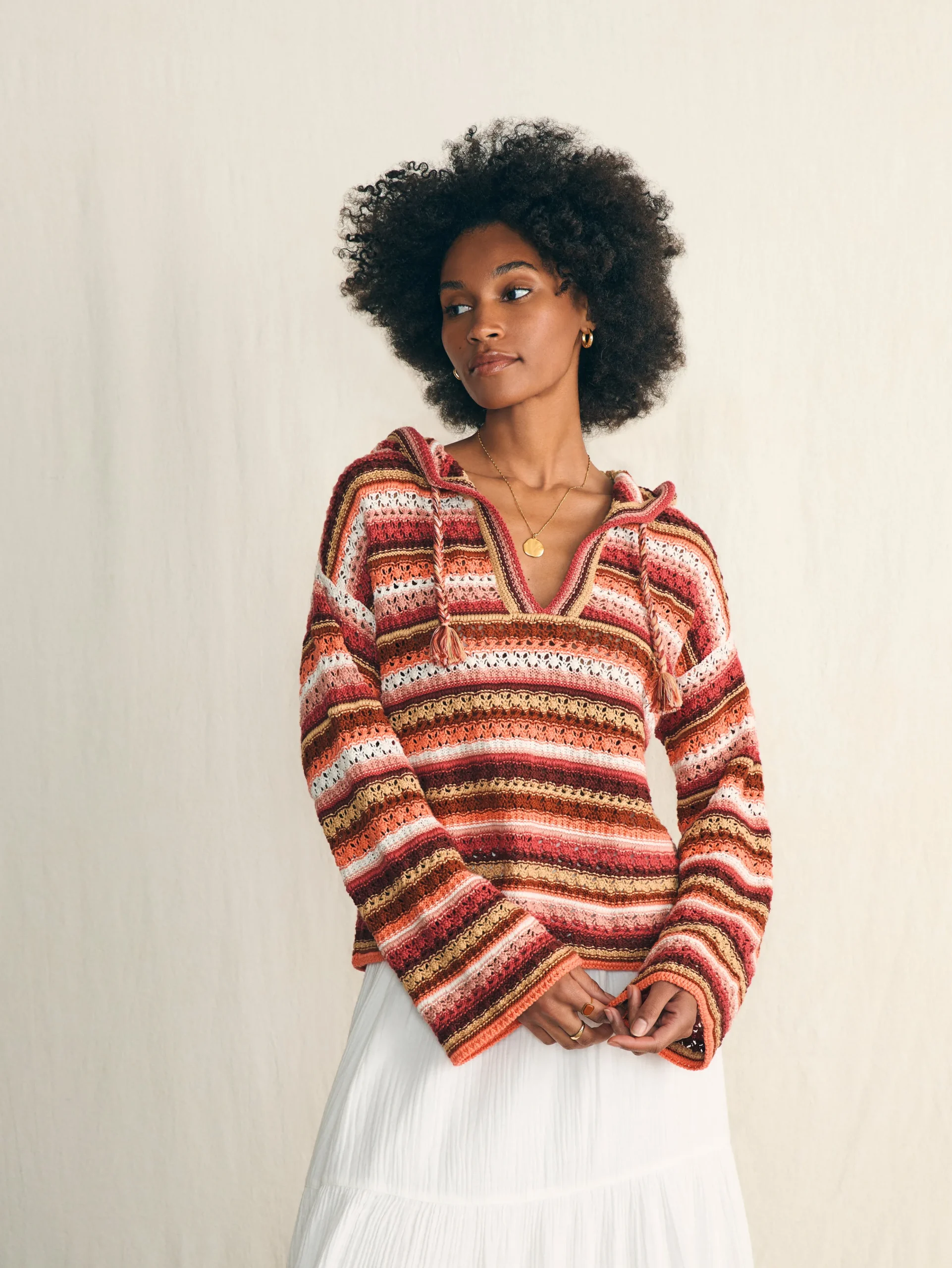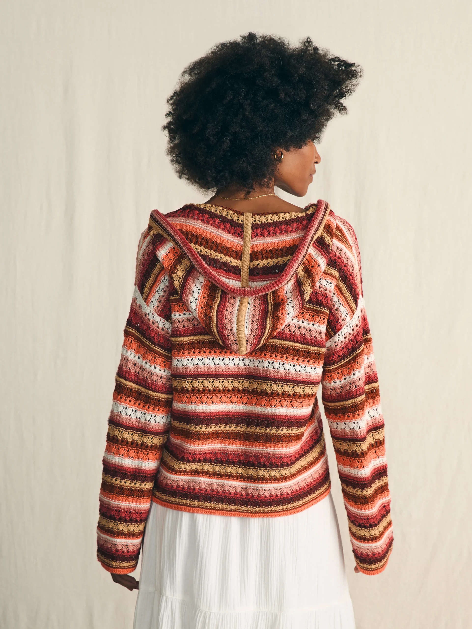 Knit from a soft and airy 100% organic cotton yarn, this easygoing hoodie crocheted in subtle sunset-inspired colors is peak Faherty. Throw it on for your next stroll down the beach or night under the stars.