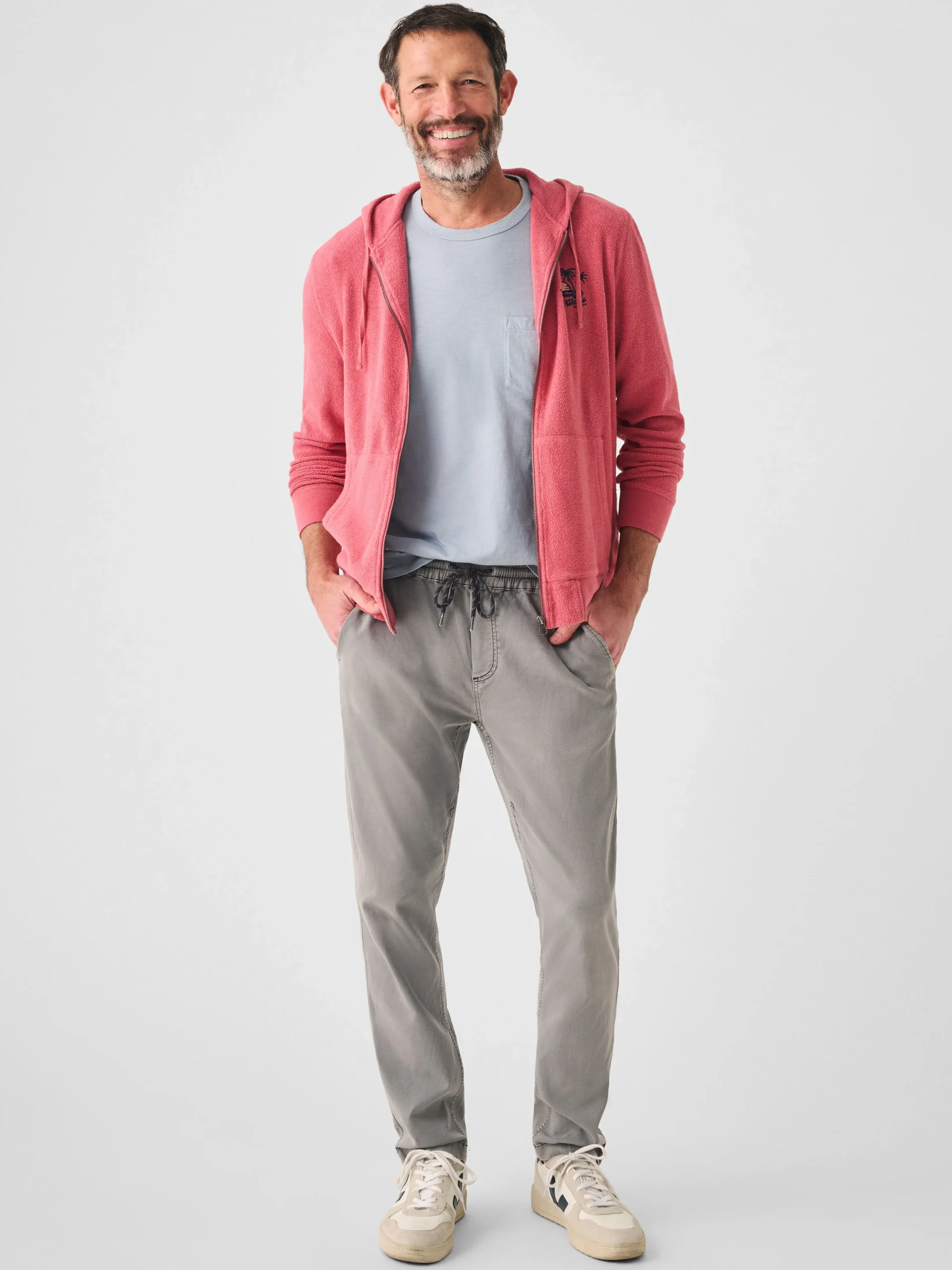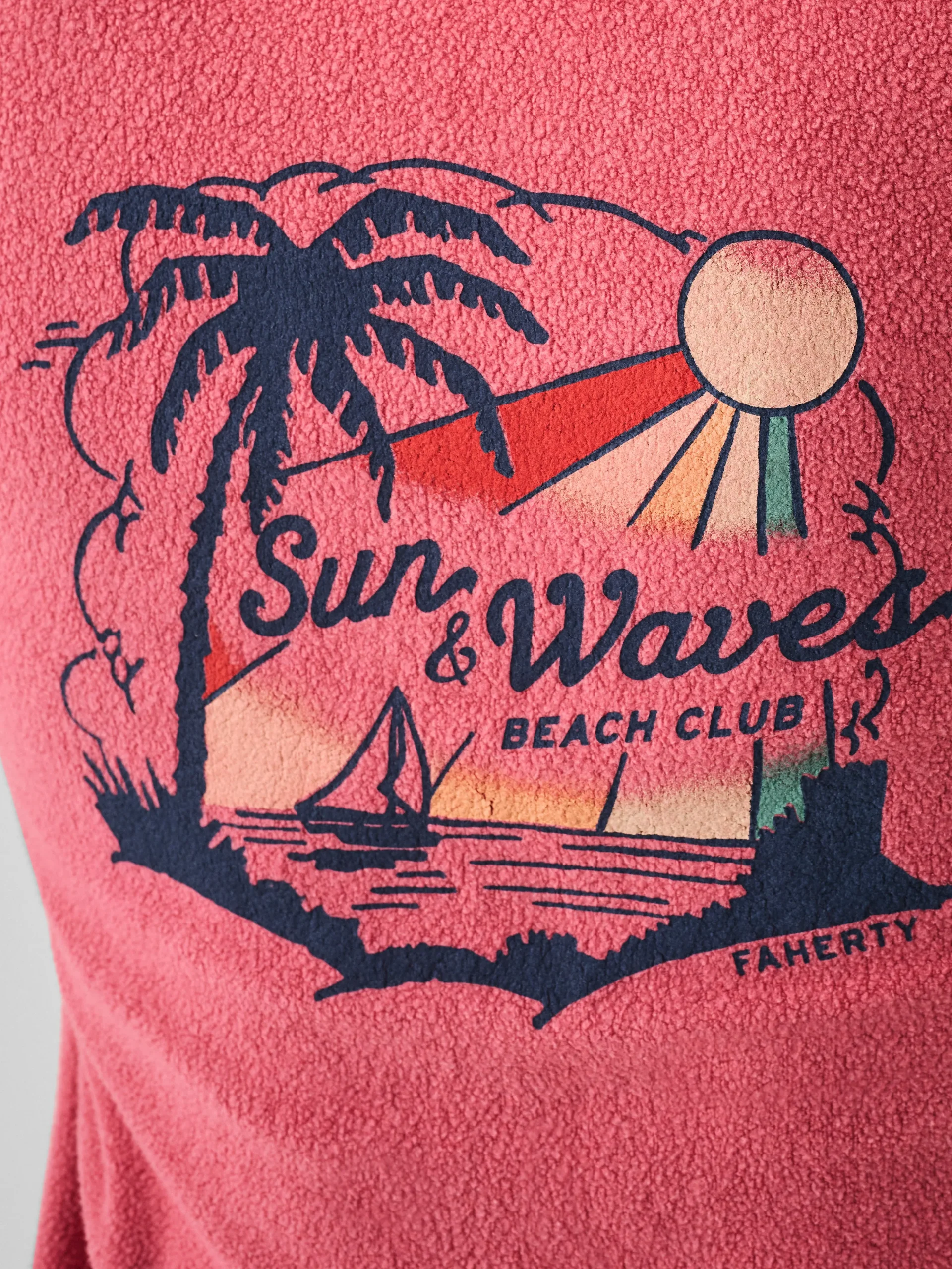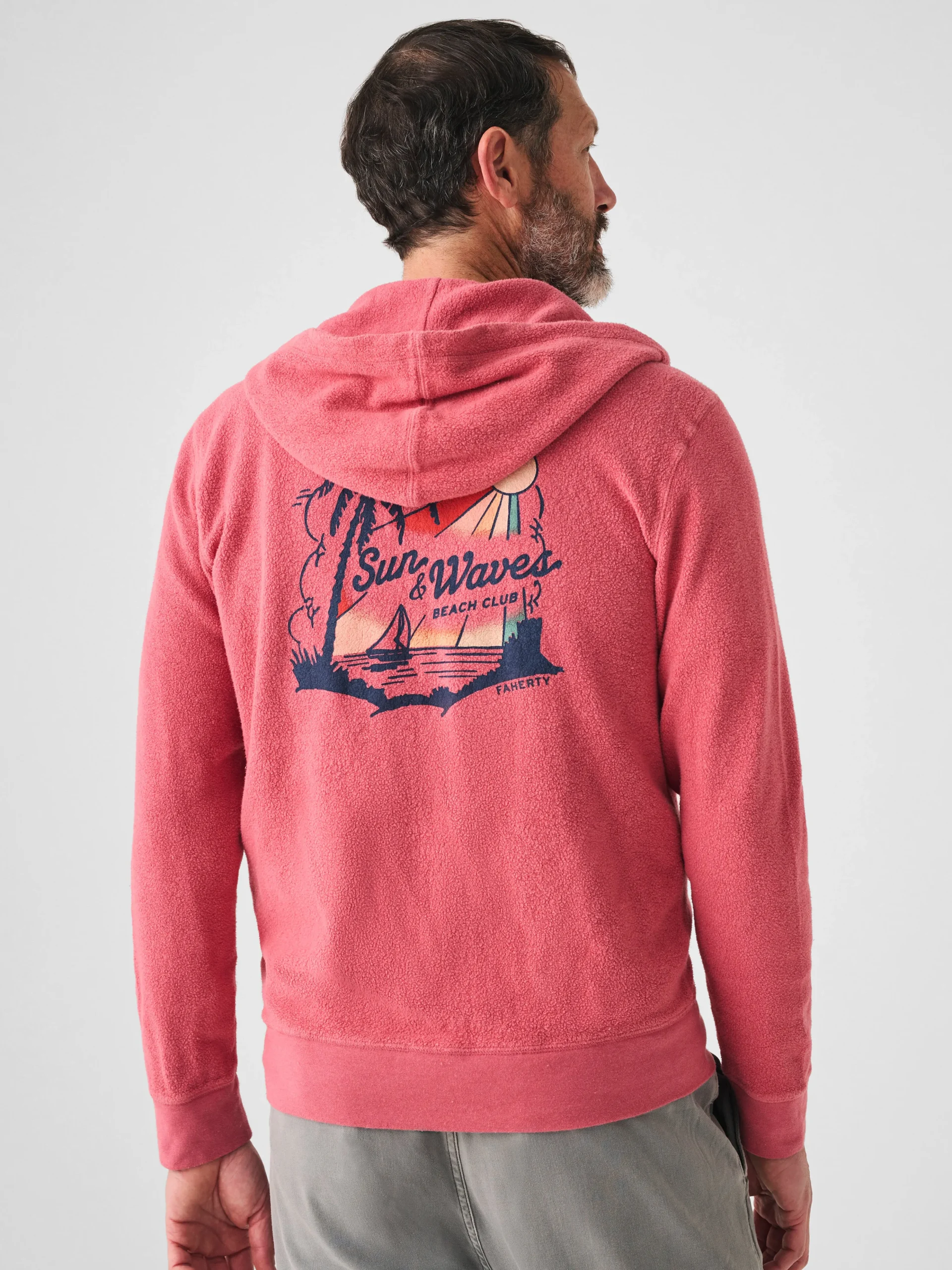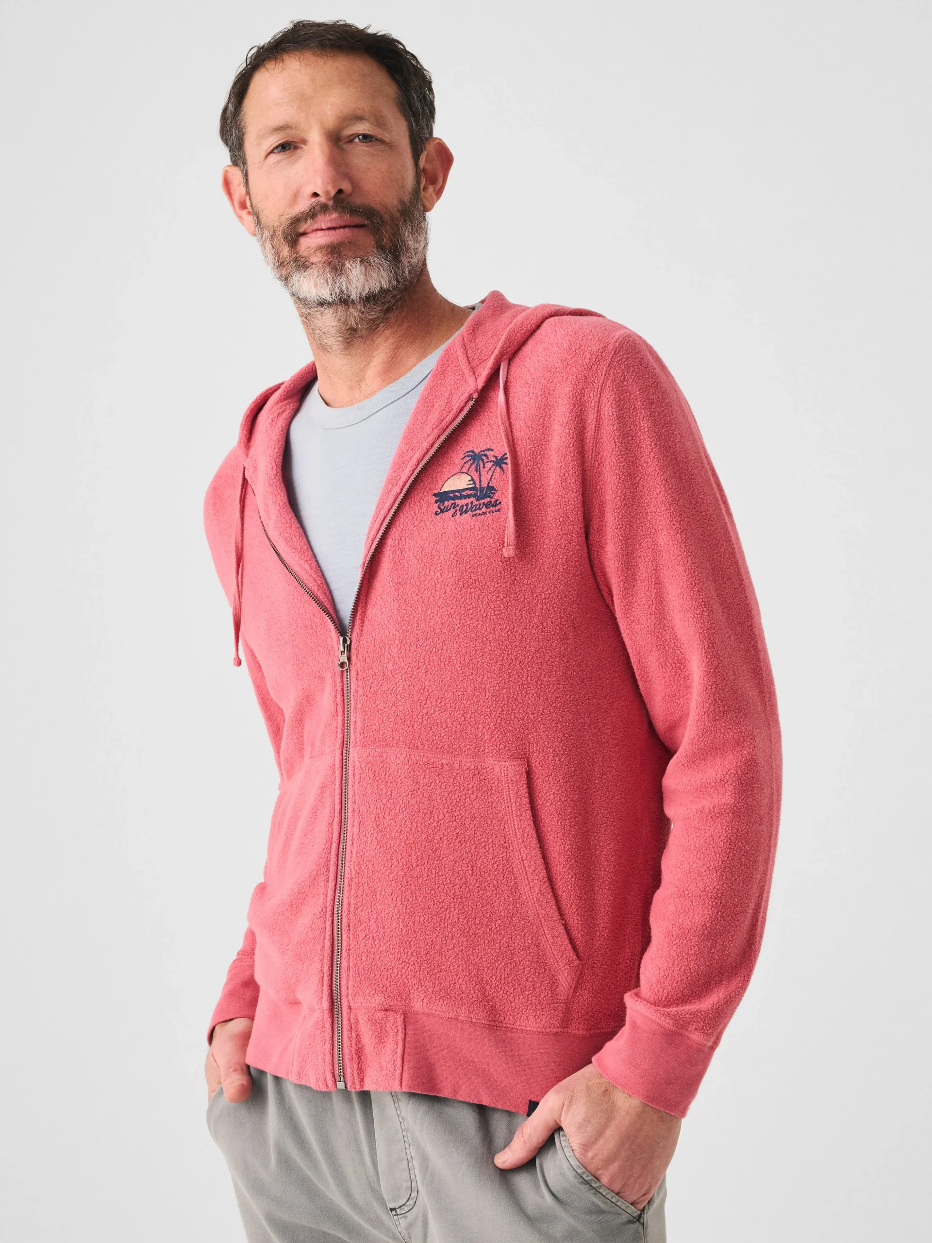 We took our favorite hoodie, flipped it inside out and never looked back. Made from an irresistibly soft and textured brushed terry, this beach hoodie sports a washed vintage graphic inspired by the surf towns we grew up visiting with our family and friends. It’s our go-to layer post waves.