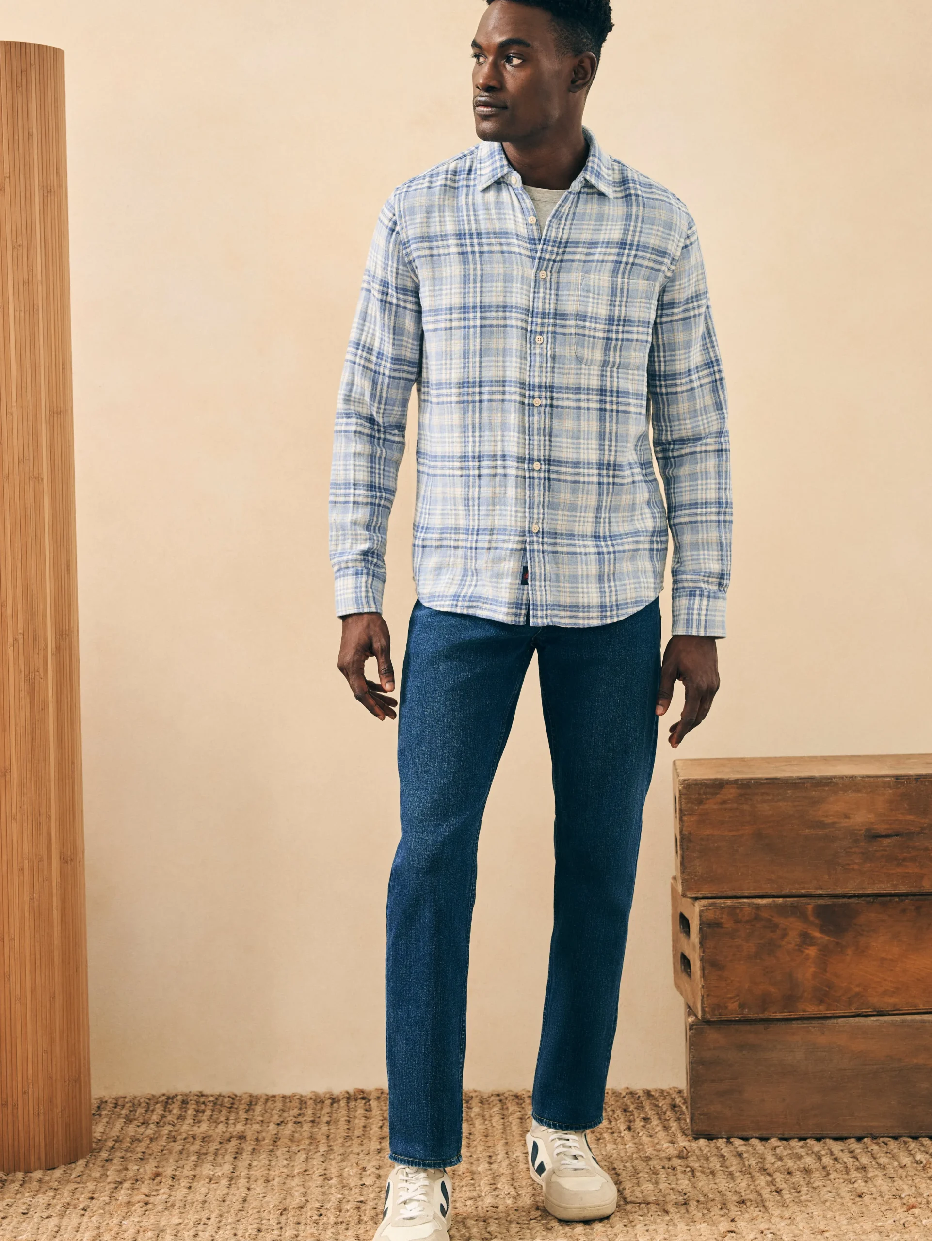 The key callout on this laid-back button-up is its incredibly soft double cloth fabric. With an airy, homespun nature, the weave has a subtle dotted texture for extra character. If you’re looking for a button-up to wear with shorts and flip-flops, this is it.