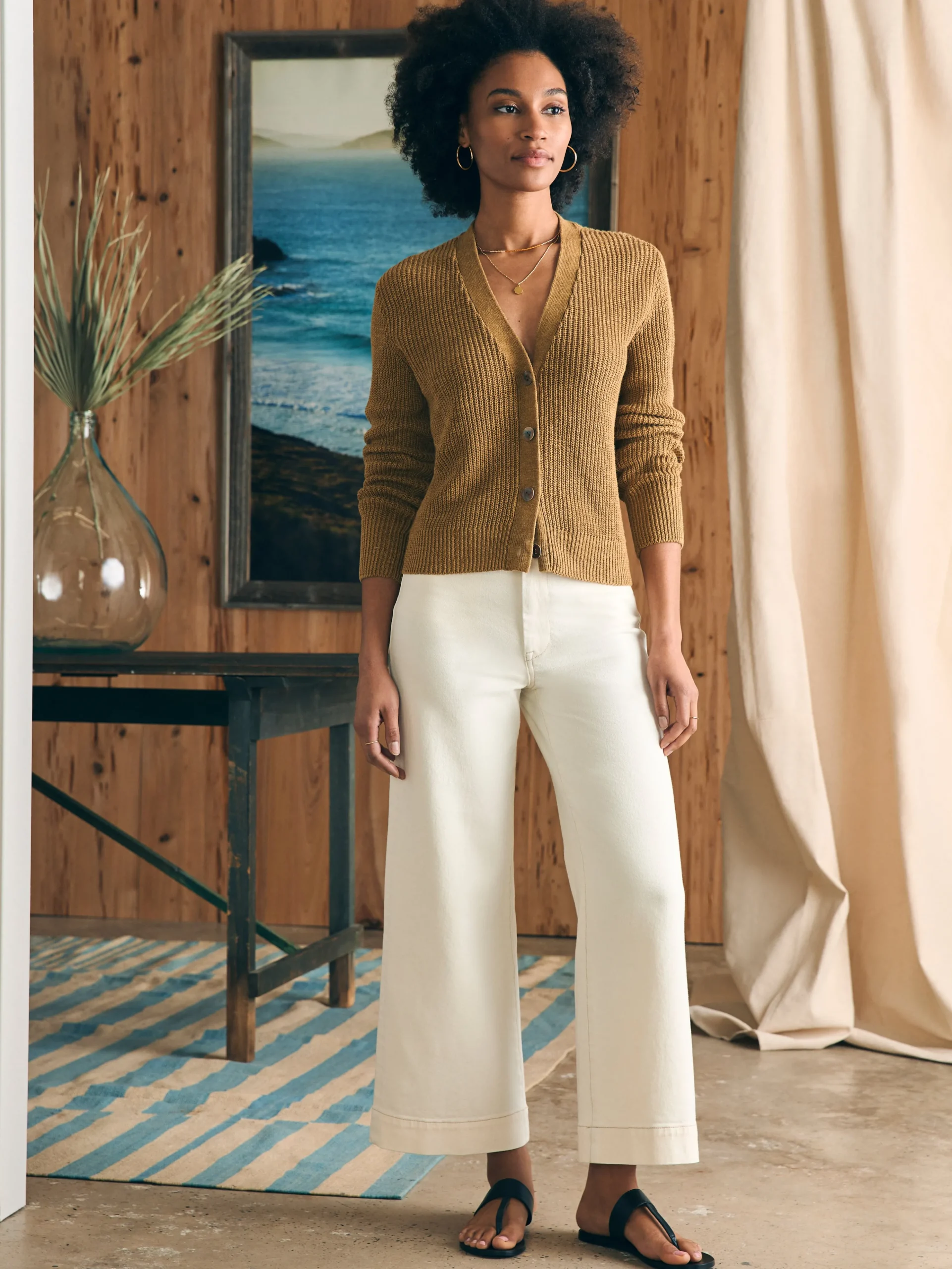 Warm enough for cool spring evenings but still light enough for sunny days, this charming cardigan is knit in an airy linen cotton blend that makes it the ideal layering piece. The textural, open stitch drapes beautifully with a slouchy, oversized fit. Over a tank, dress, or on its own, you’ll be reaching for this versatile cardigan throughout the season.
