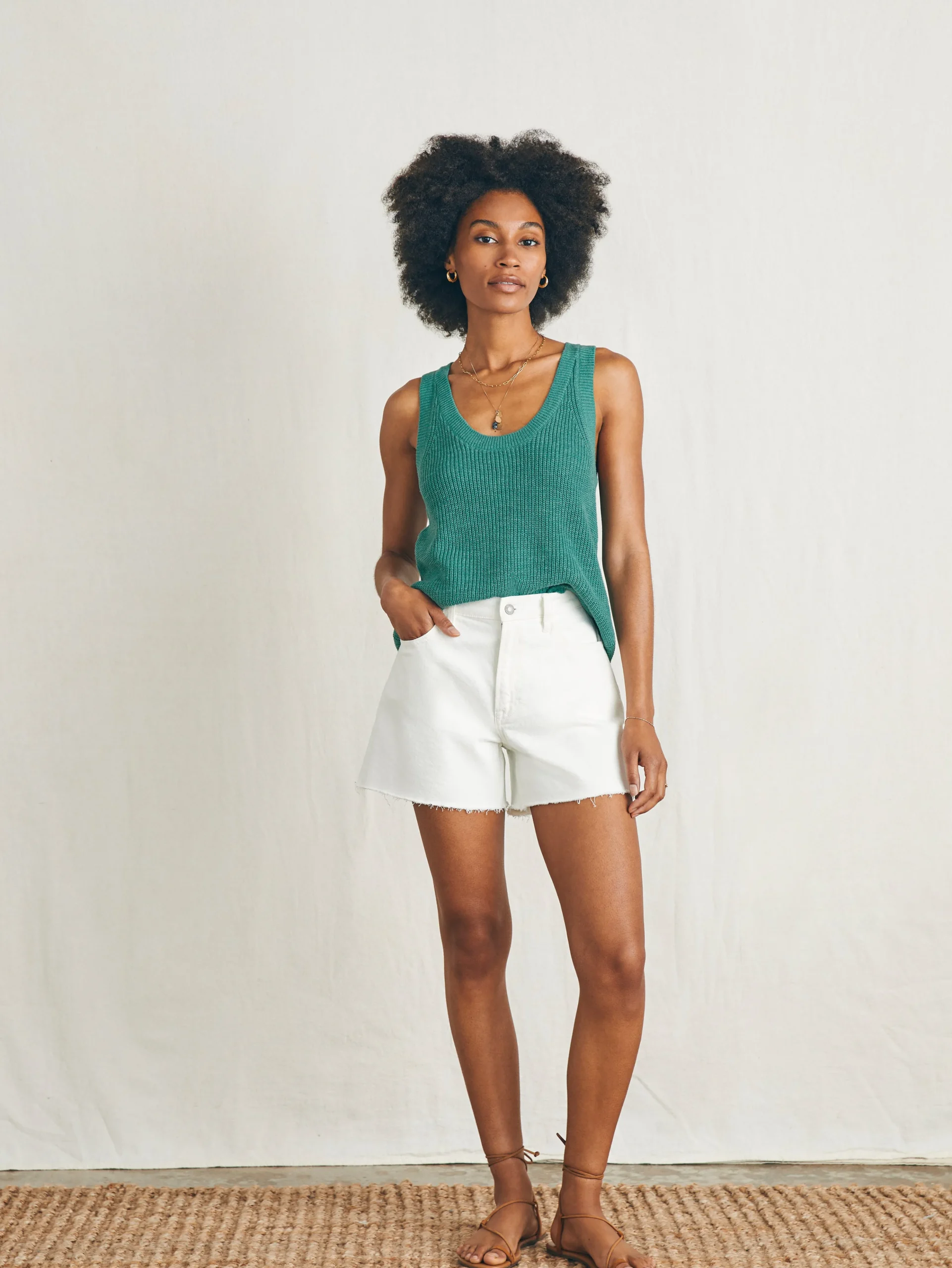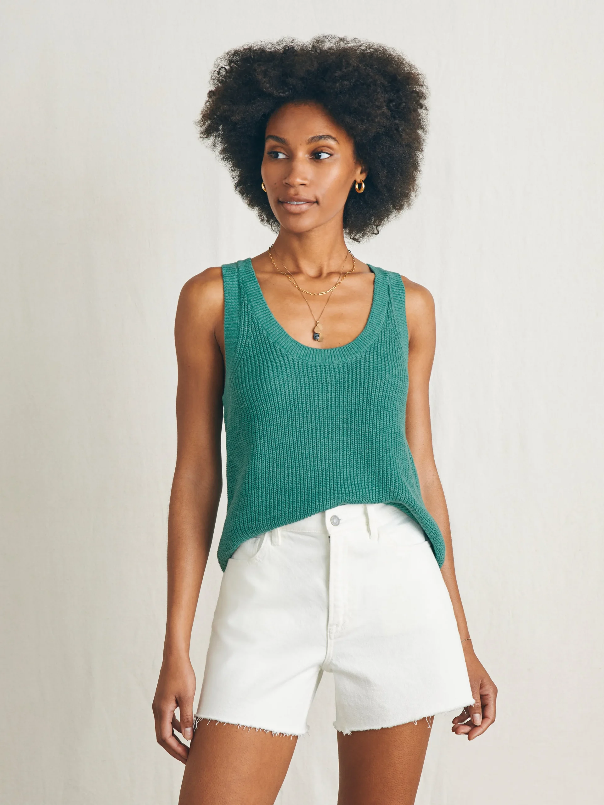 Knit in a lightweight linen blend yarn, this must-have tank top elevates summer dressing. Airy and light enough for daily wear, the luxe yarn is also suited to dressier evening looks; slim straps and stitch detailing further refine the feminine silhouette.