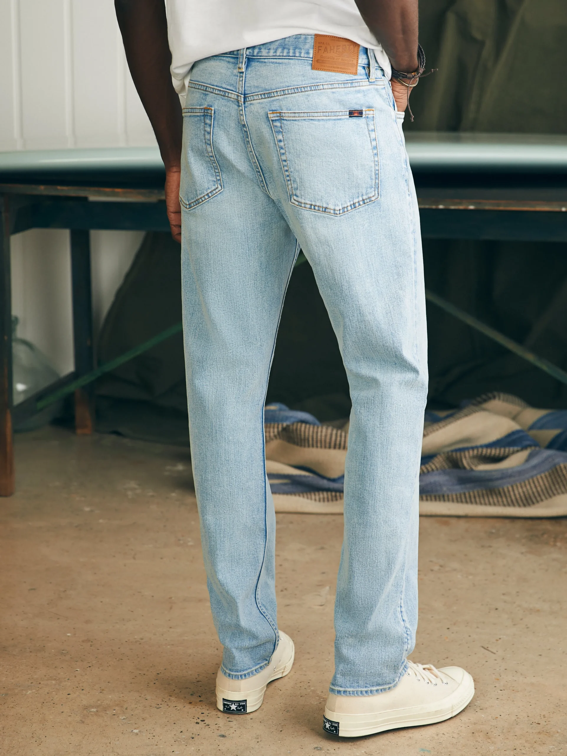 You’ve been asking for denim done our way and we’re stoked to bring it to you with the same high-quality, authentic style and legendary comfort we’re known for. We spent years developing the perfect denim fabric—organic cotton woven with a textured slub yarn that washes down and ages beautifully. Combined with just the right amount of stretch, they’re the most comfortable and lived-in jeans you’ve ever felt, from the first wear. Ours are responsibly designed too, with an innovative, energy-efficient wash process that utilizes 80% less water than conventional denim wash methods. This just-right fit is comfortable enough for all-day wear, yet tailored enough for a night out.
