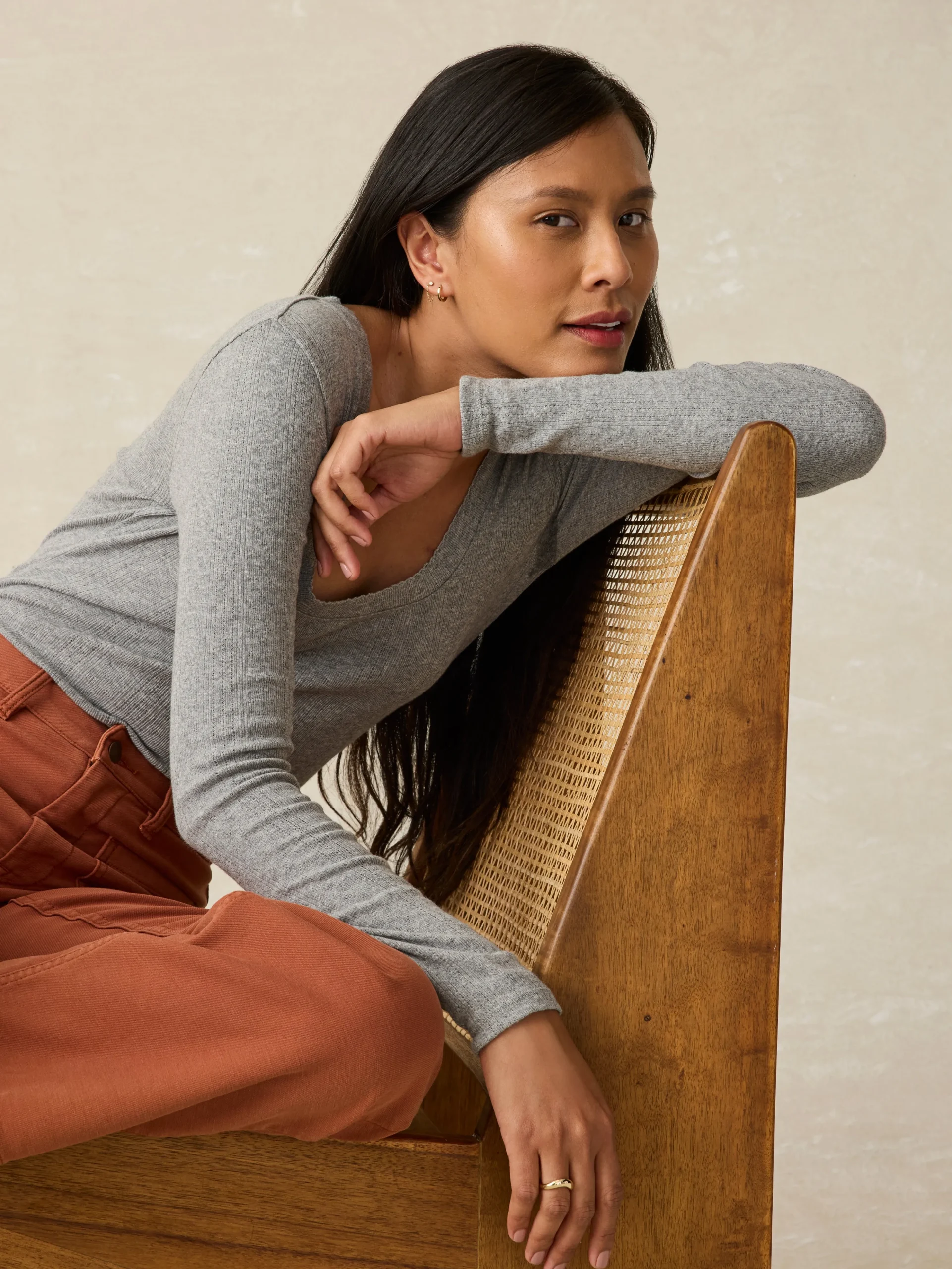 Made with a subtle, textural pointelle stitch, this long sleeve tee has the look of pretty, vintage camisole that’s a breeze to wear. Soft, airy, and delicate, it lends a bit of romance to your everyday look.