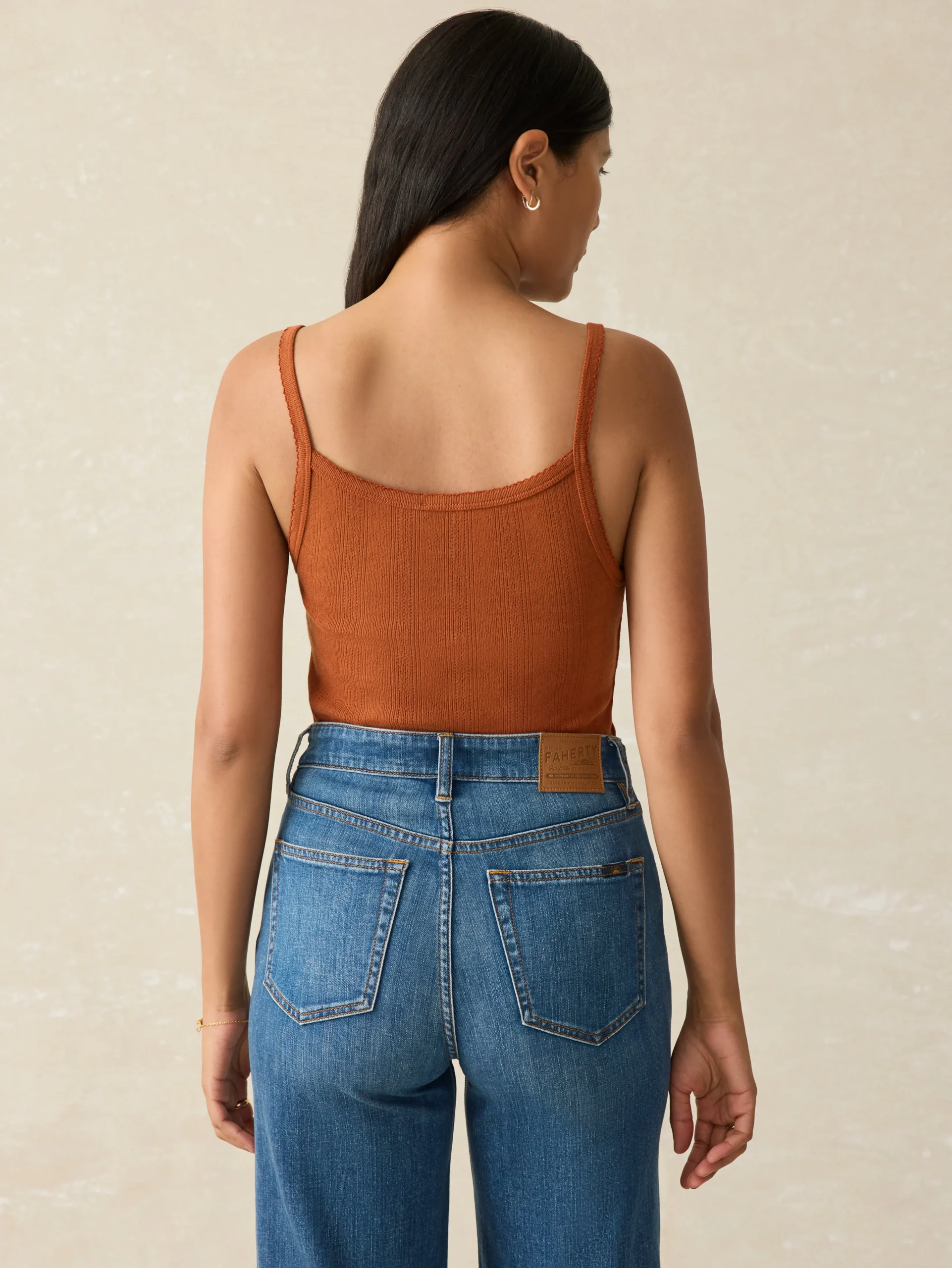 Made with a subtle, textural pointelle stitch, this pretty tank top has the look of a vintage camisole that’s a breeze to wear. Soft, airy, and delicate, it lends a bit of romance to your everyday look.
