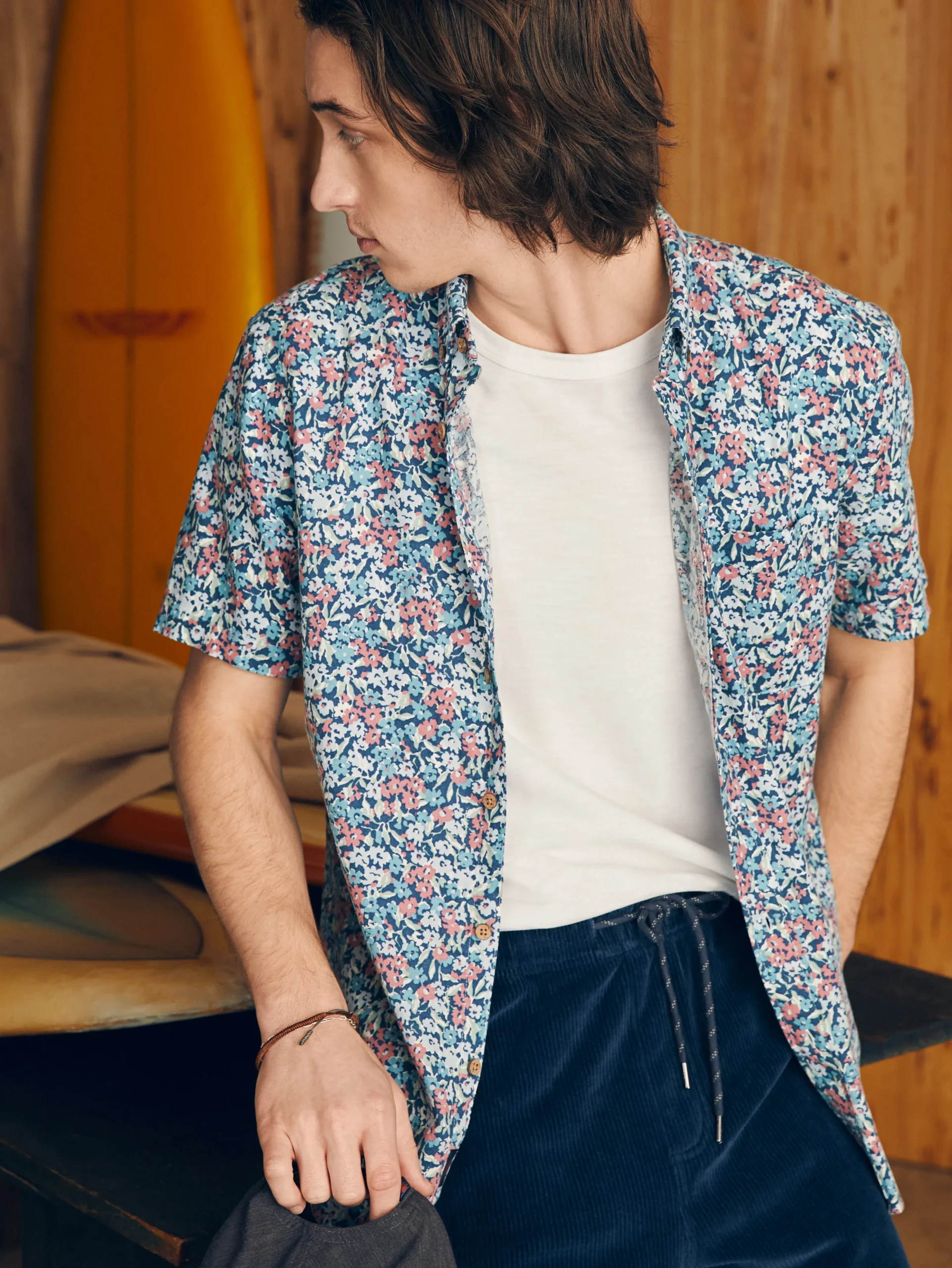 For sun-drenched days, we crafted this shirt from a super soft custom fabrication made primarily from linen. Lightweight with a bit of stretch, its unique hand feel gives our signature travel-inspired prints an added natural texture. Wear it whenever you’re seeking those effortless vacation vibes.