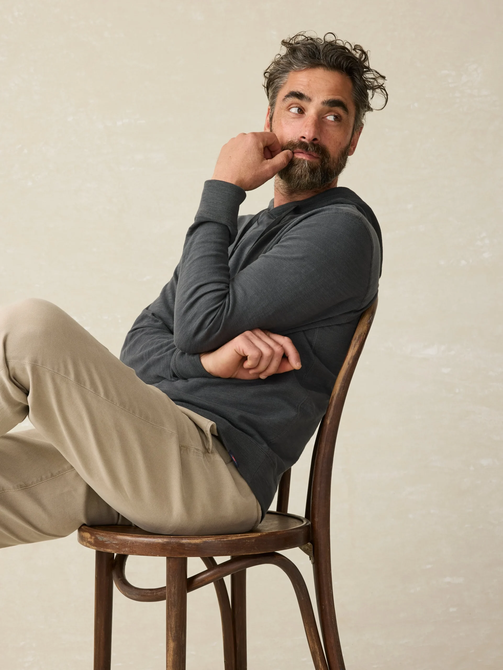 - Fit: Relaxed through the chest, with a fitted ribbed hem. Relaxed, tapered sleeves.