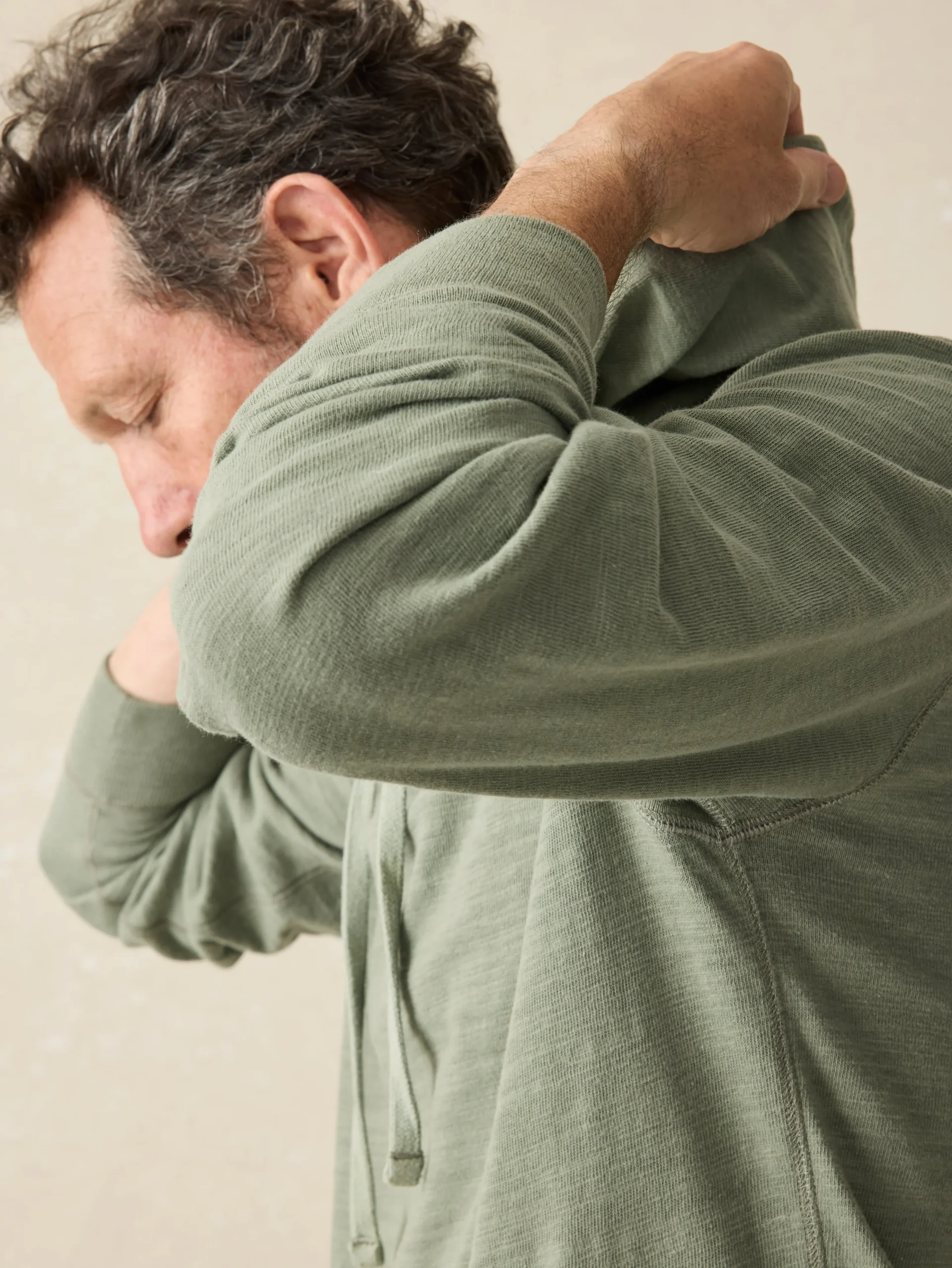 Our slub knit fabric is crafted from high-quality cotton and combed for exceptional texture and softness. The perfect layer, this hoodie does all the work of a sweatshirt — featuring a classic relaxed fit, knit ribbing at the collar, cuffs, and hem, and cinchable hood — without the added weight. Get one, and feel what we’re talking about.