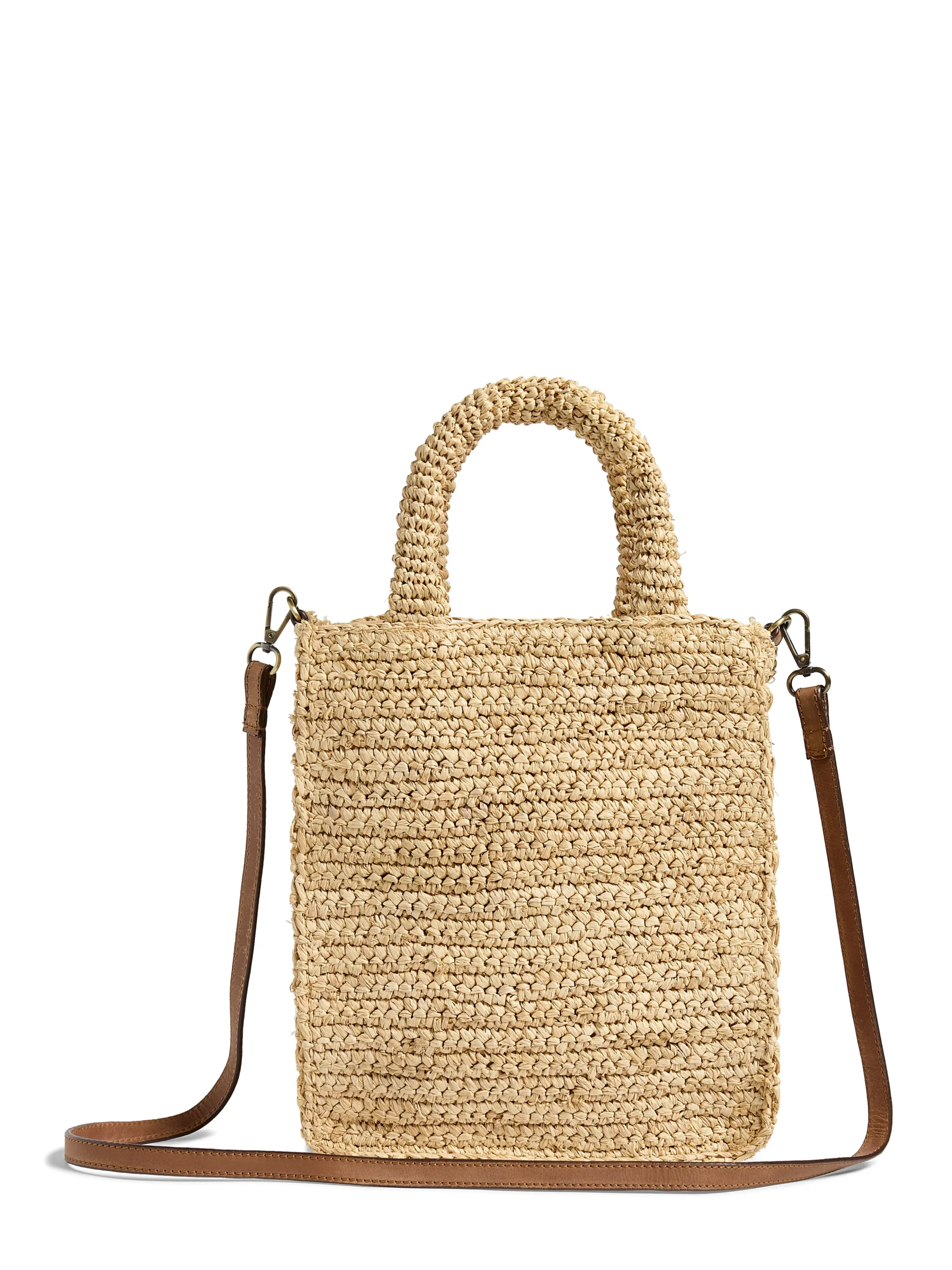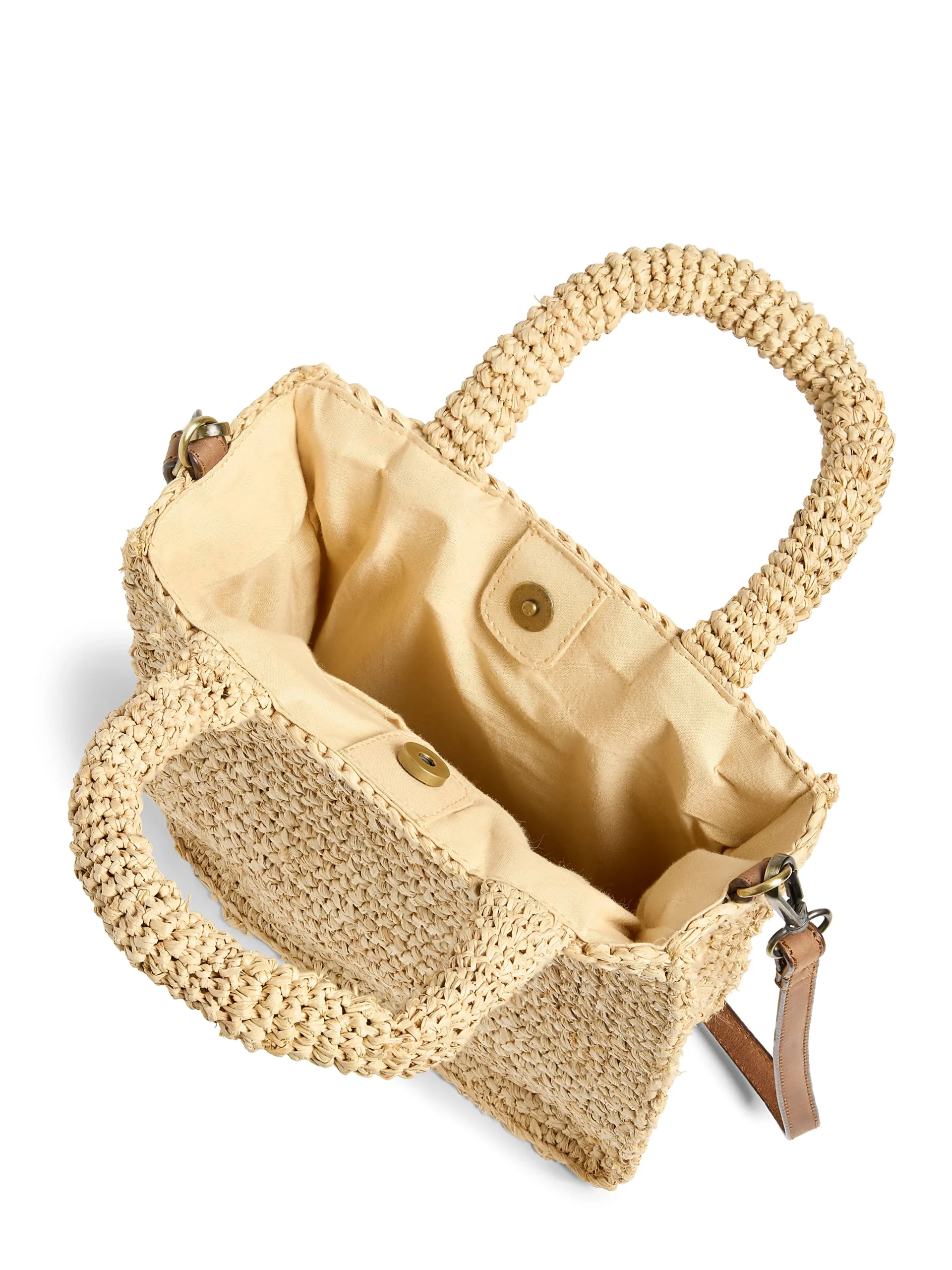 When the warm weather hits, this is your daily bag that holds just the essentials. Hand crochted raffia gives it authentic styling while the full leather strap adds a practical and elevated touch.