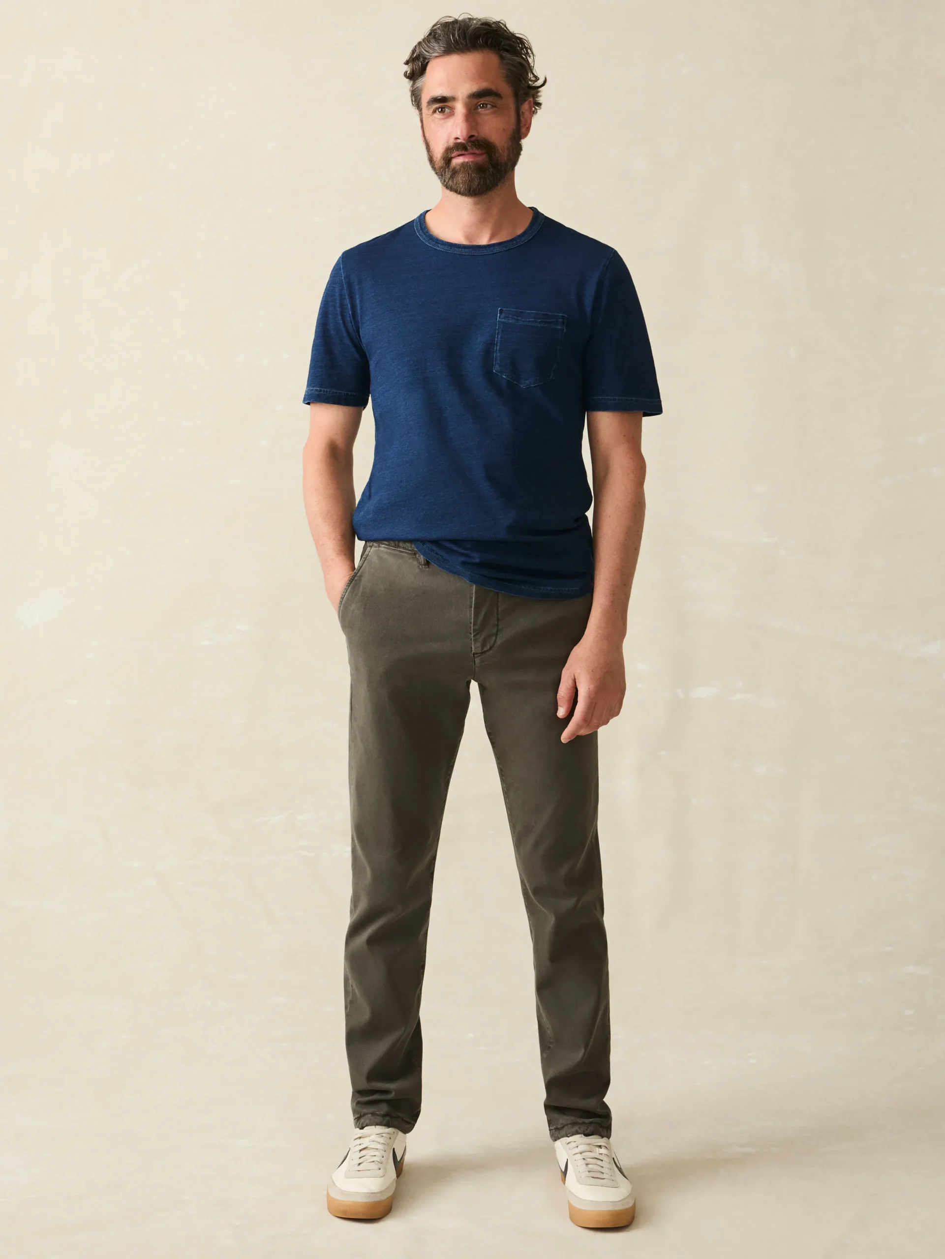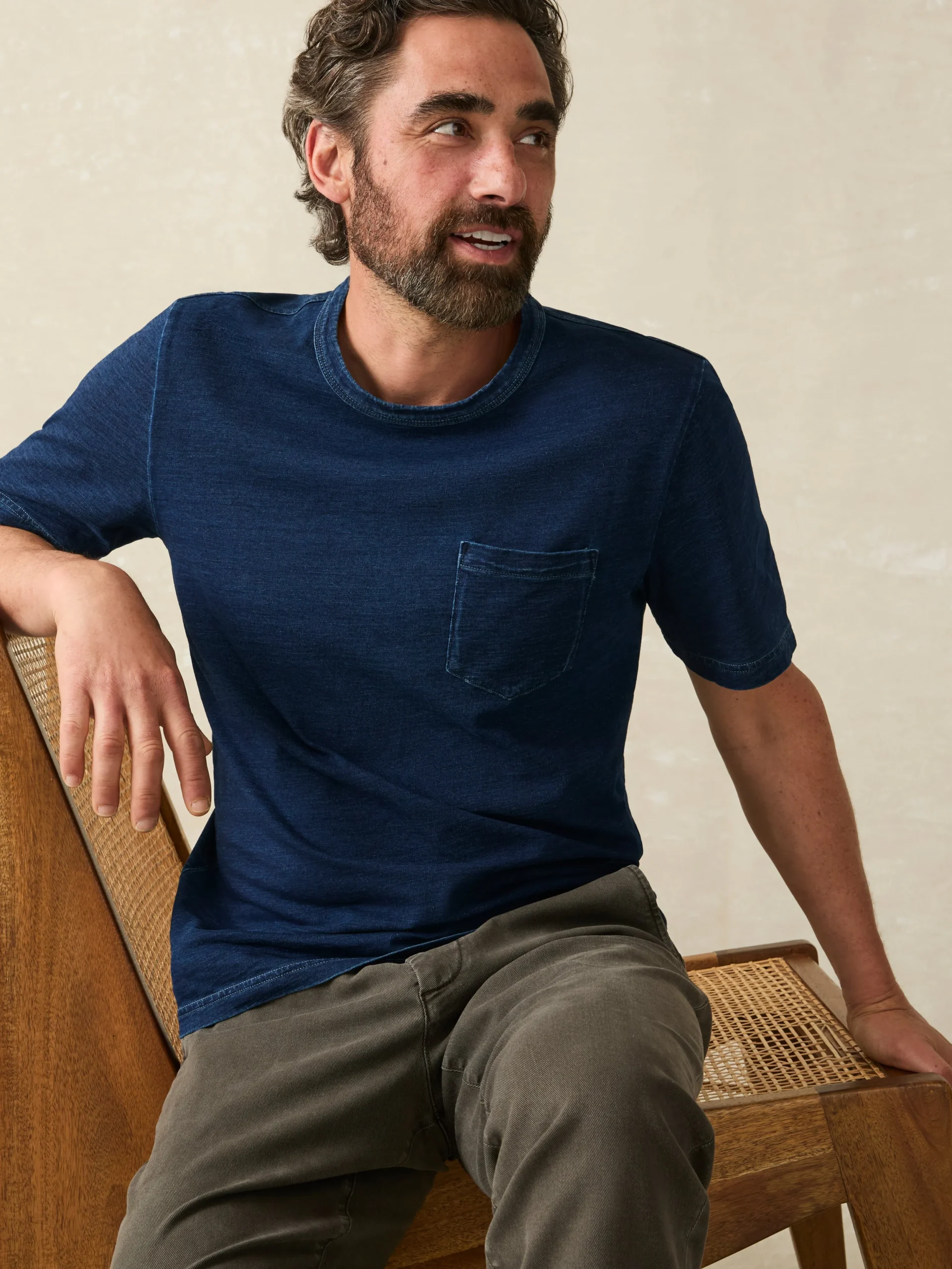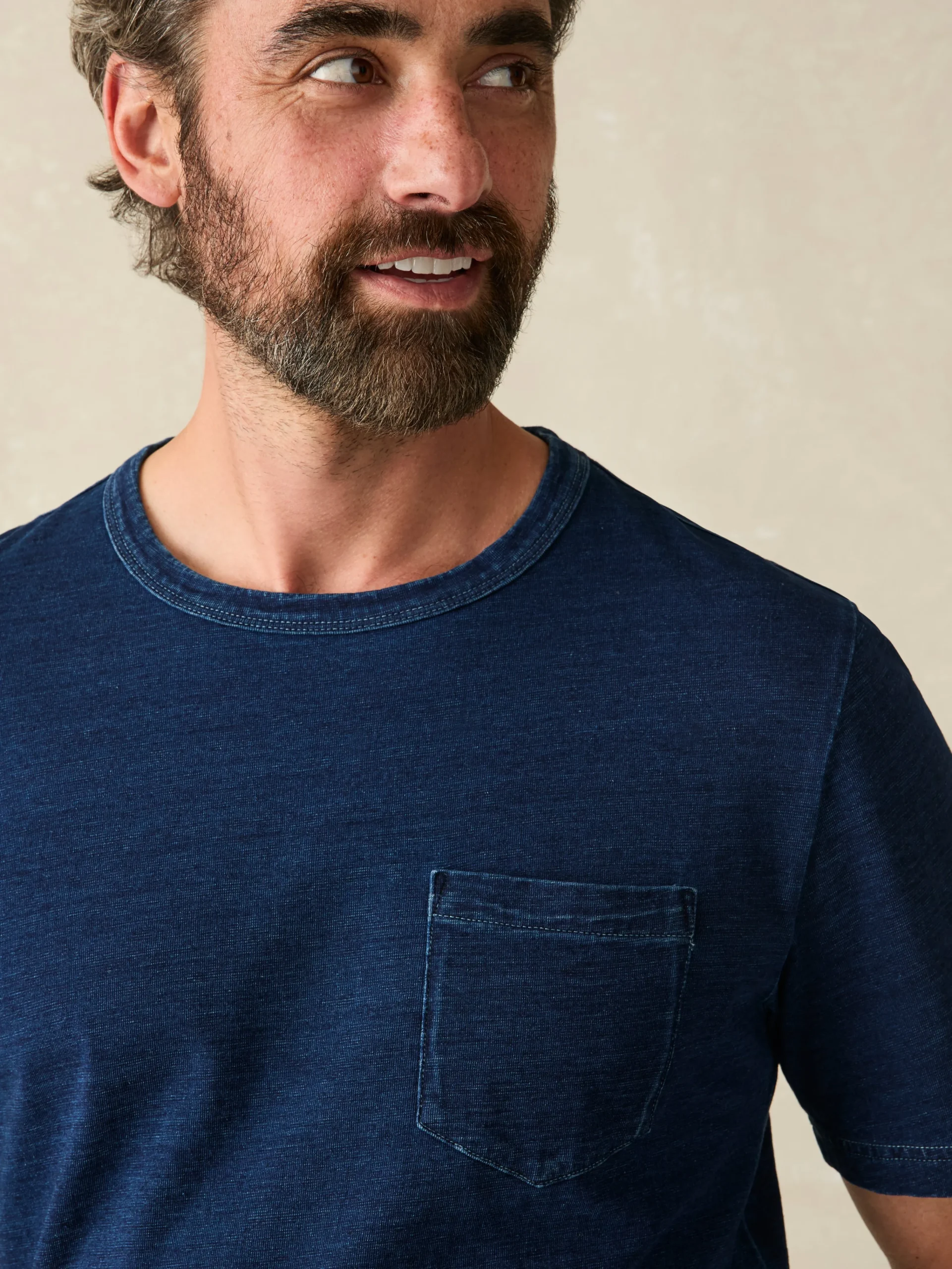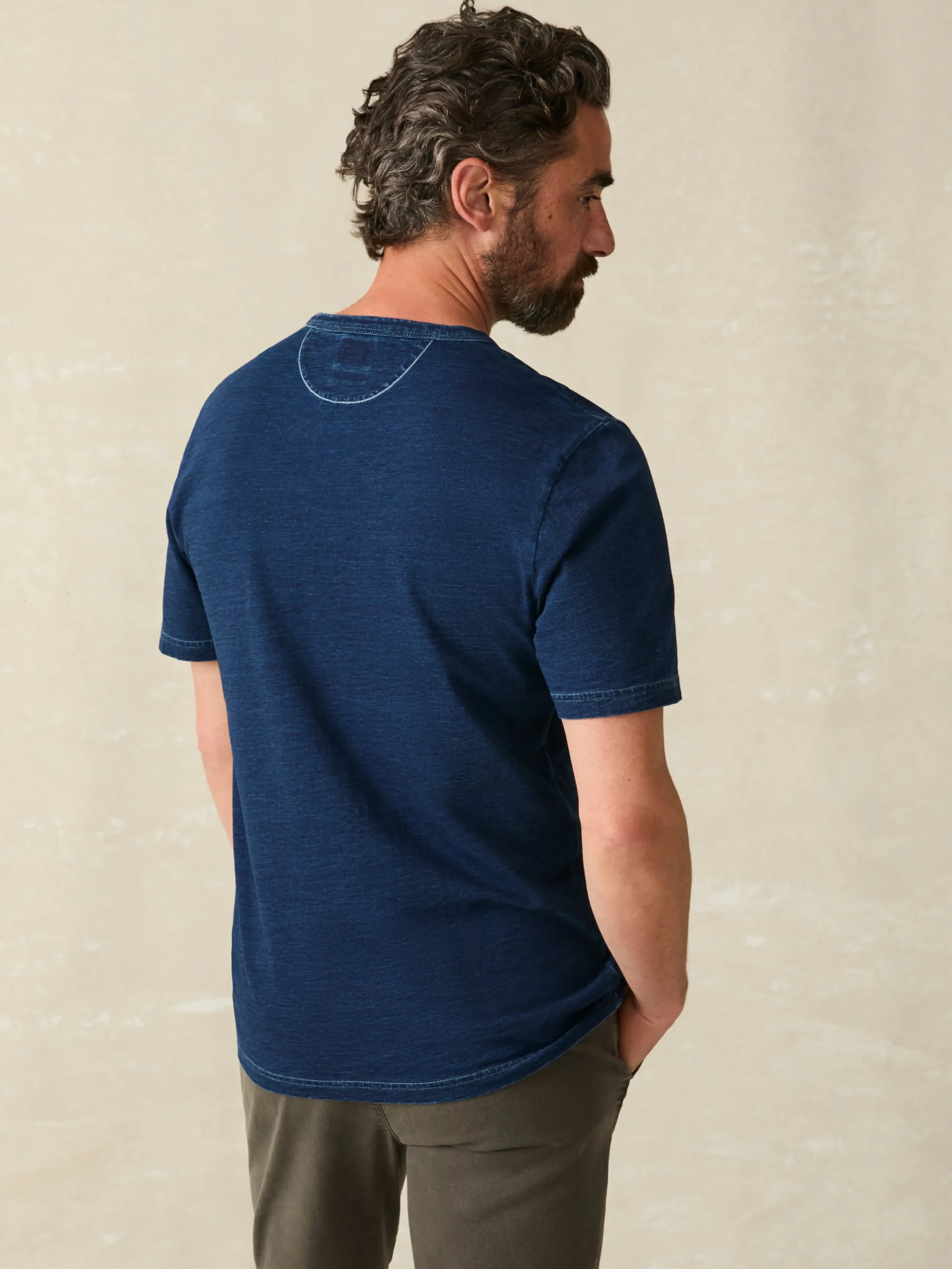 Inspired by the perfectly imperfect look of a well-worn vintage t-shirt, our tee is knit with slub cotton yarns for texture and authenticity. Dyed with natural indigo and garment washed for softness, it’s the not-so-basic, basic.