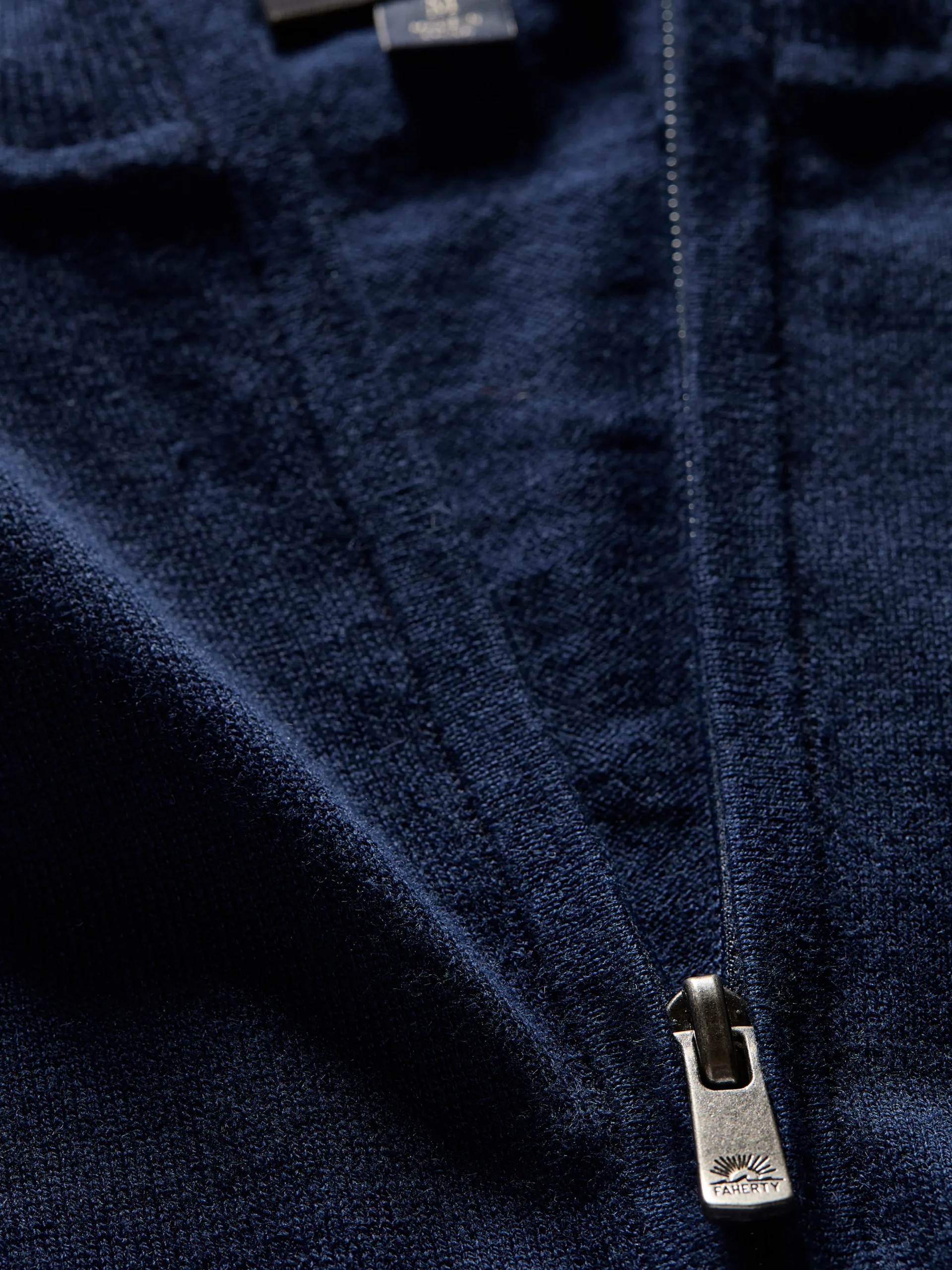 Rib stitch at collar, cuffs, and hem. Contrast color tipping at interior of collar. - Material:55% Cotton, 45% C COOLMAX® EcoMade Polyester; Metal Zipper with Sun & Wave Zipper Pull