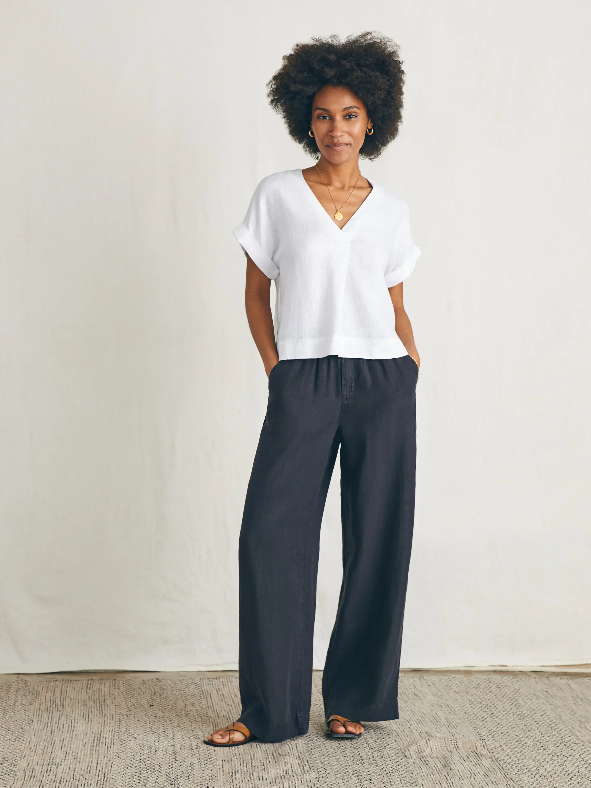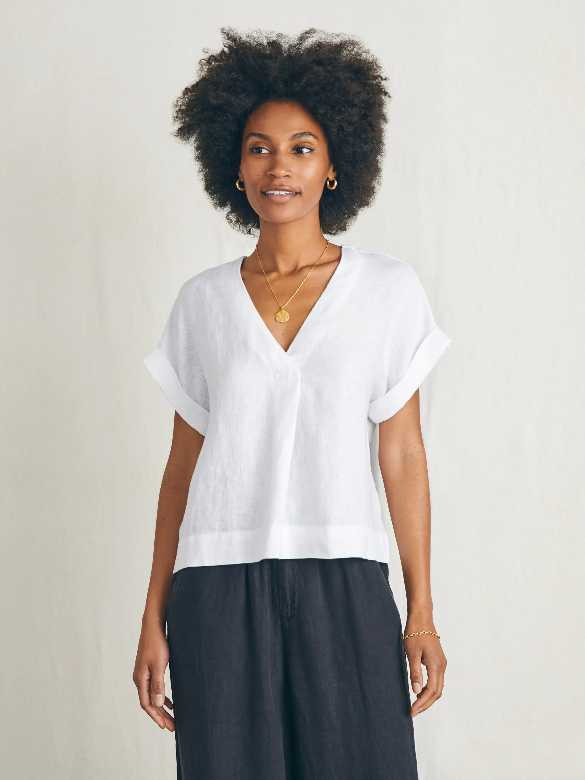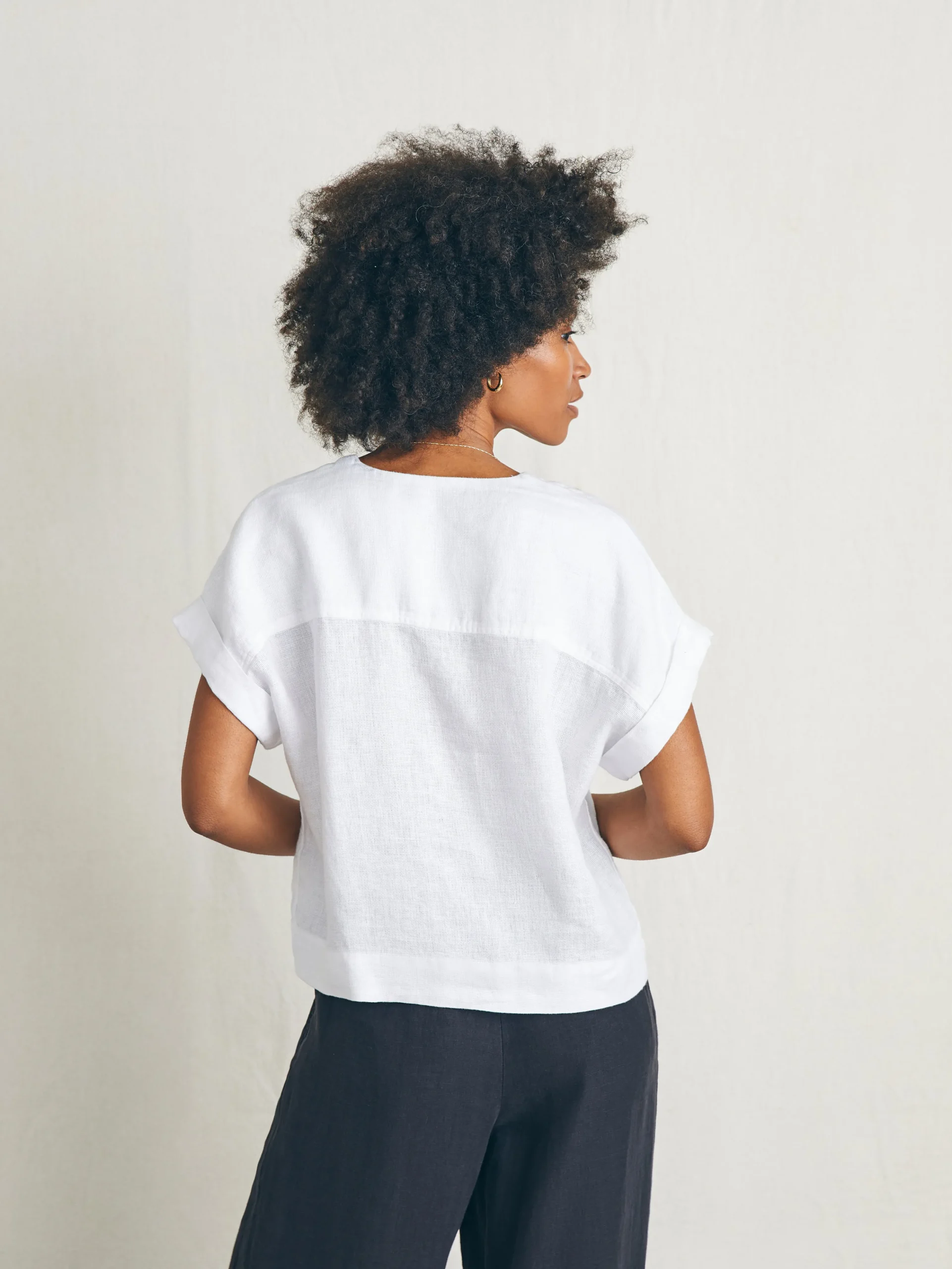 The luxe basketweave texture of this premium linen gives this easygoing top an elevated drape that will become an everyday favorite. As breezy as it gets, we flows beautifully over shorts, skirts and jeans.