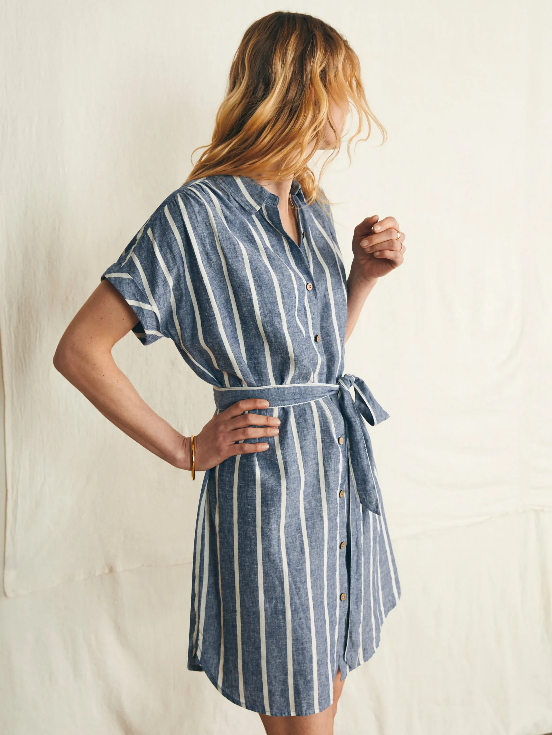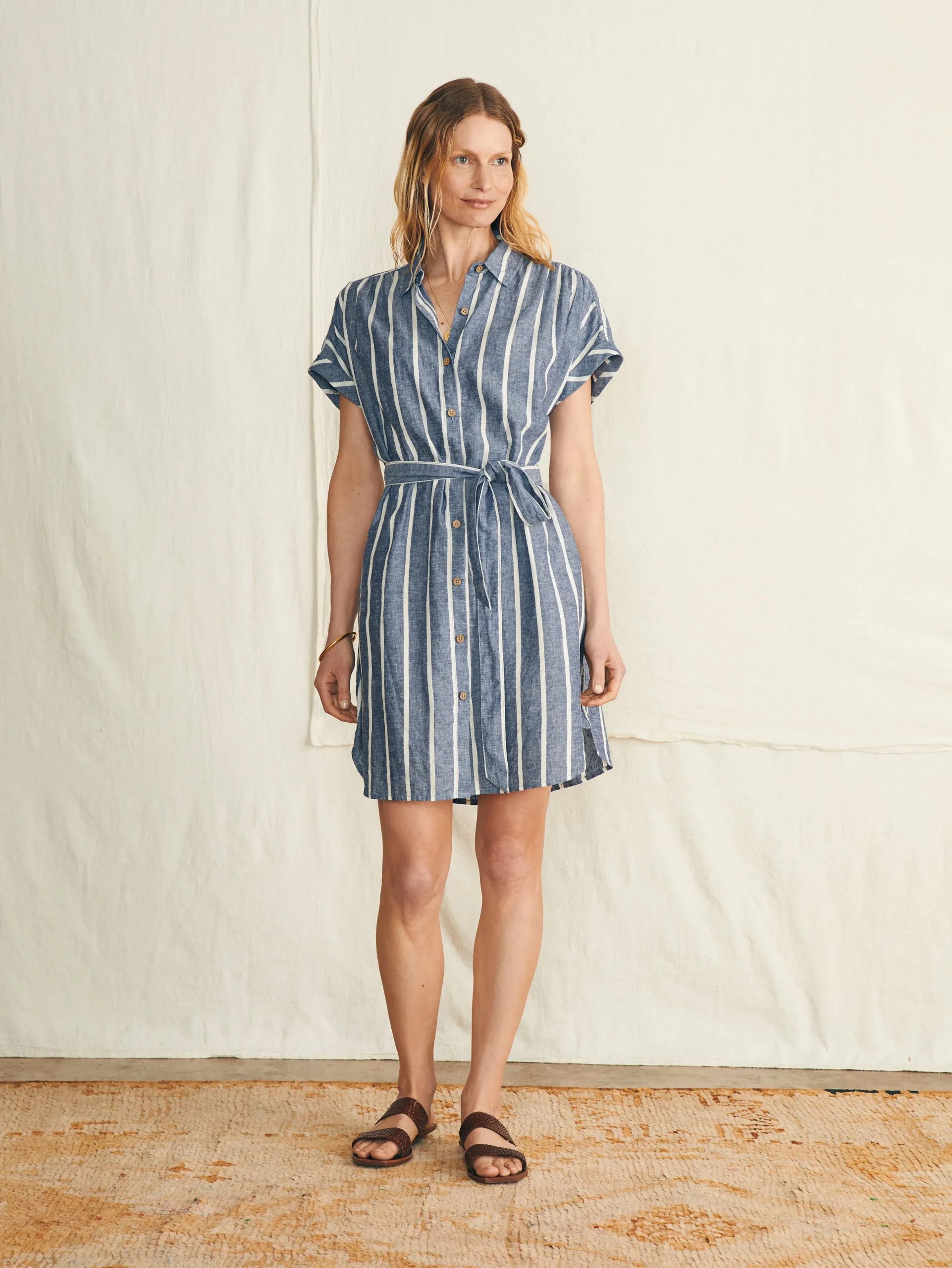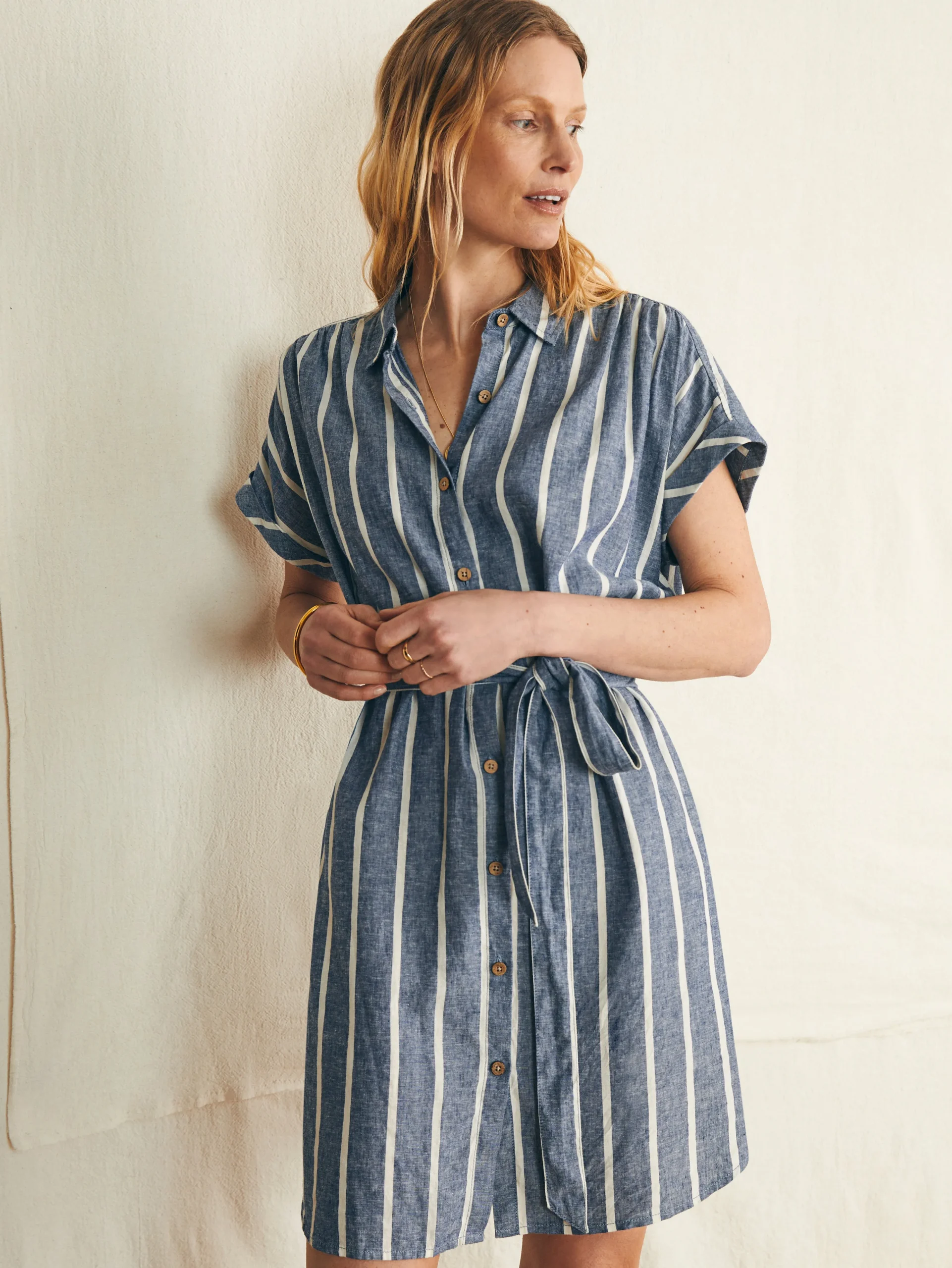 If vacation vibes could be encapsulated in a dress, this would be it. Crafted from a buttery soft custom fabric made with linen, it’s light as air with a distinctive texture. The relaxed cut is as timeless as it is comfortable while coconut buttons complete the easygoing attitude.