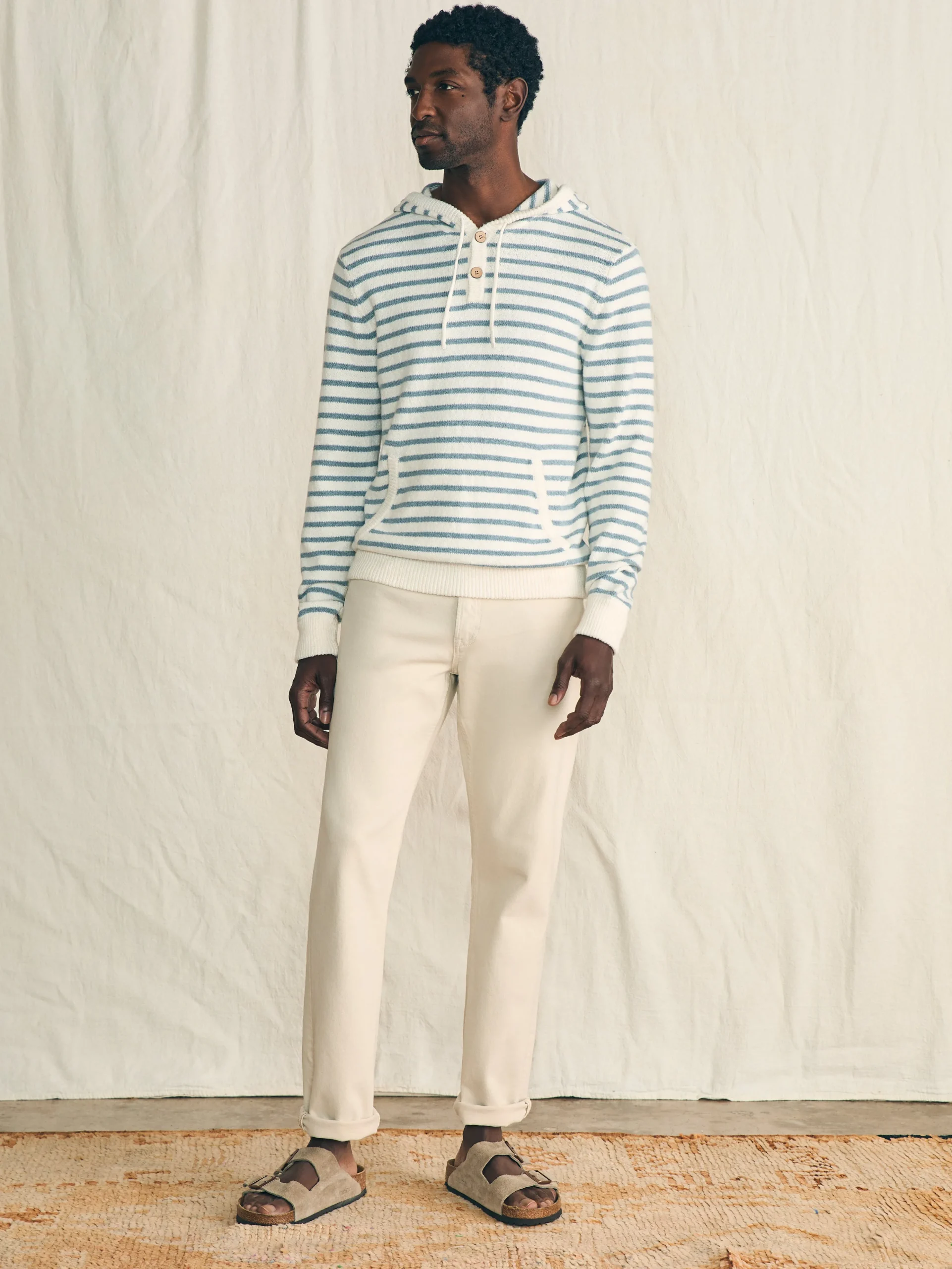 Knit from incredibly soft cotton for the best in cozy breathability, the Cove Sweater Hoodie is a true Faherty classic. The handsome stripe pattern and subtle sky-inspired colors are knit from six different shades of yarn for the perfect laid-back look. Throw it on for your next stroll down the beach, night under the stars, or whenever you find yourself sitting fireside.