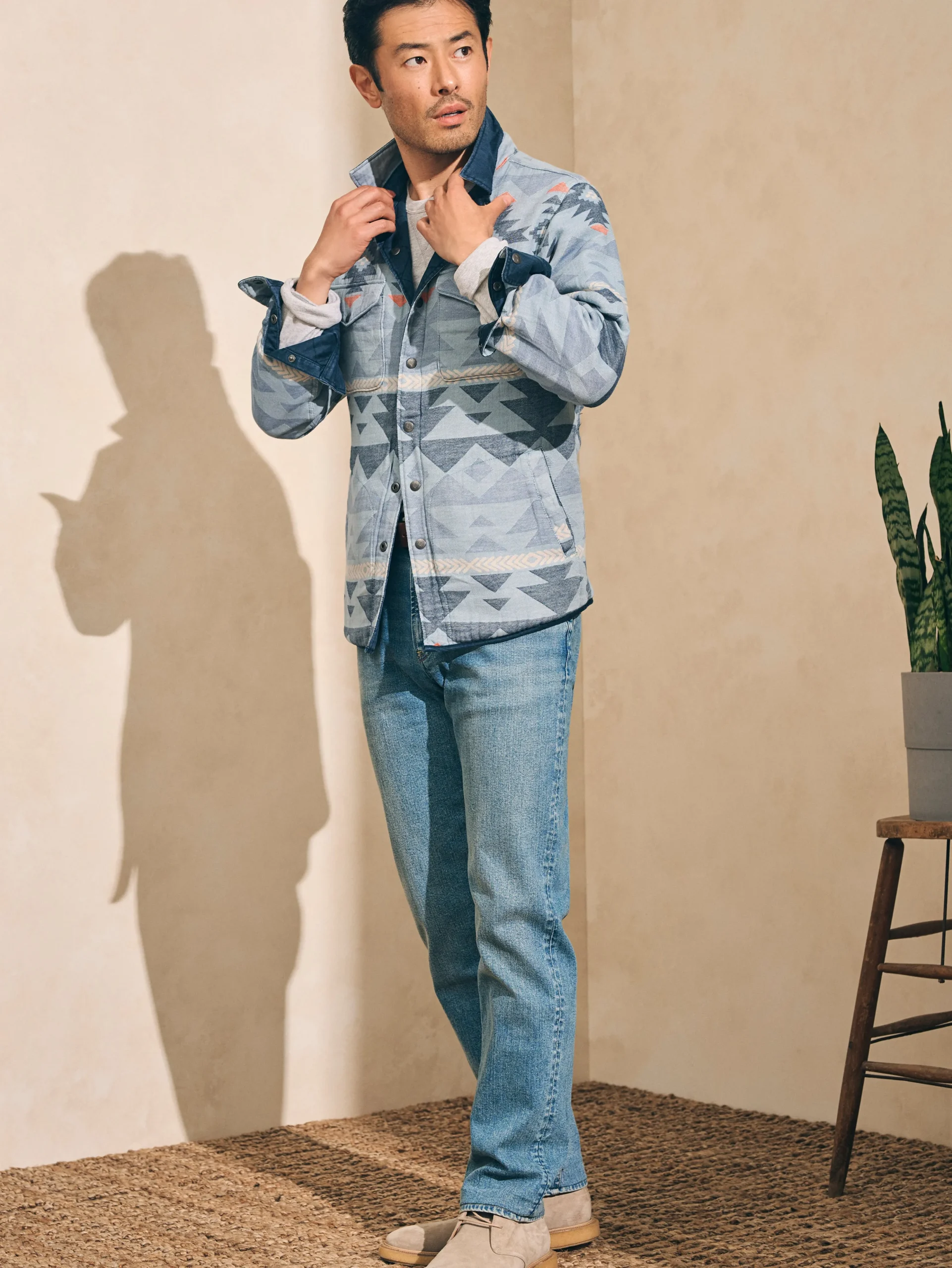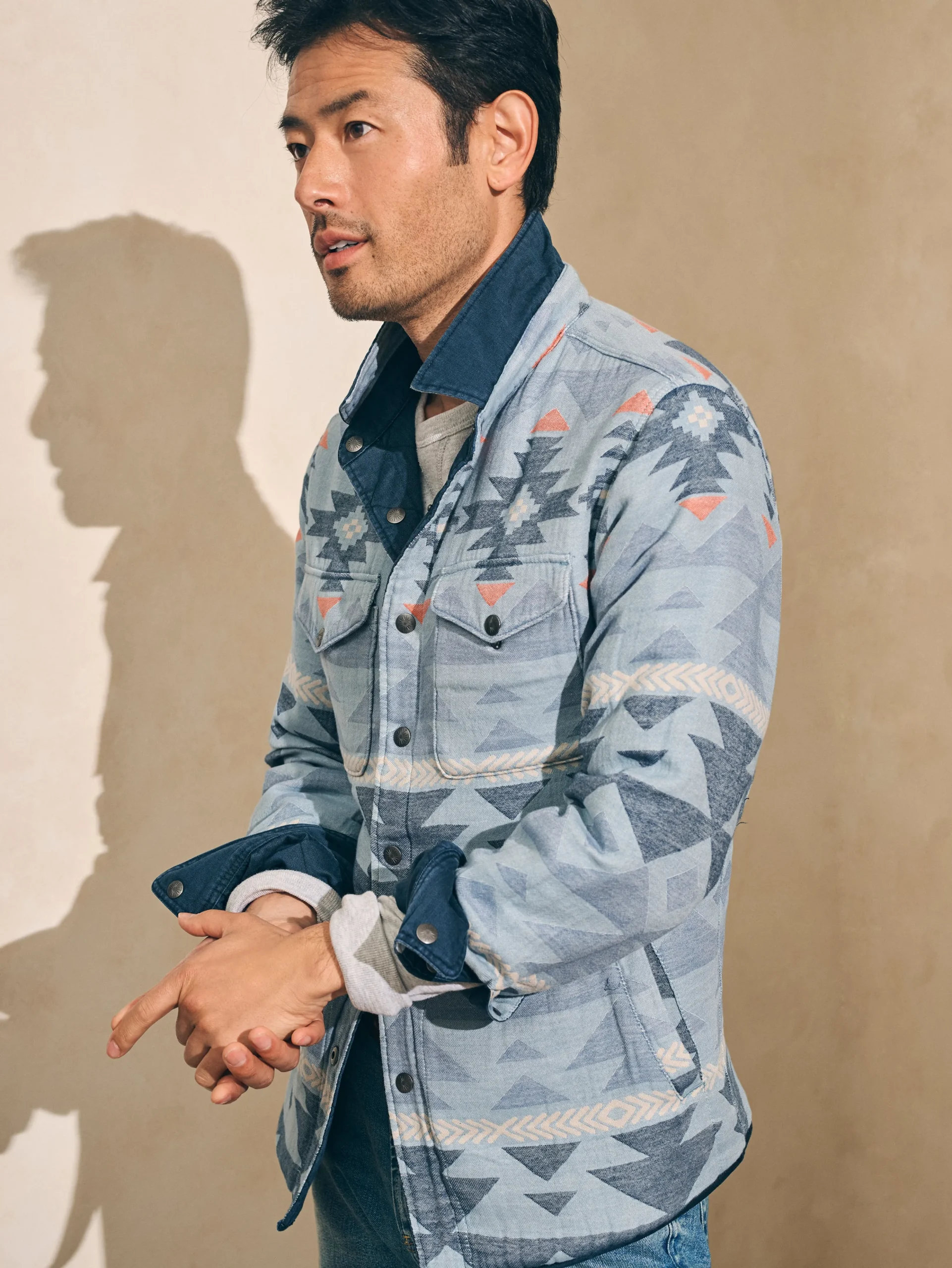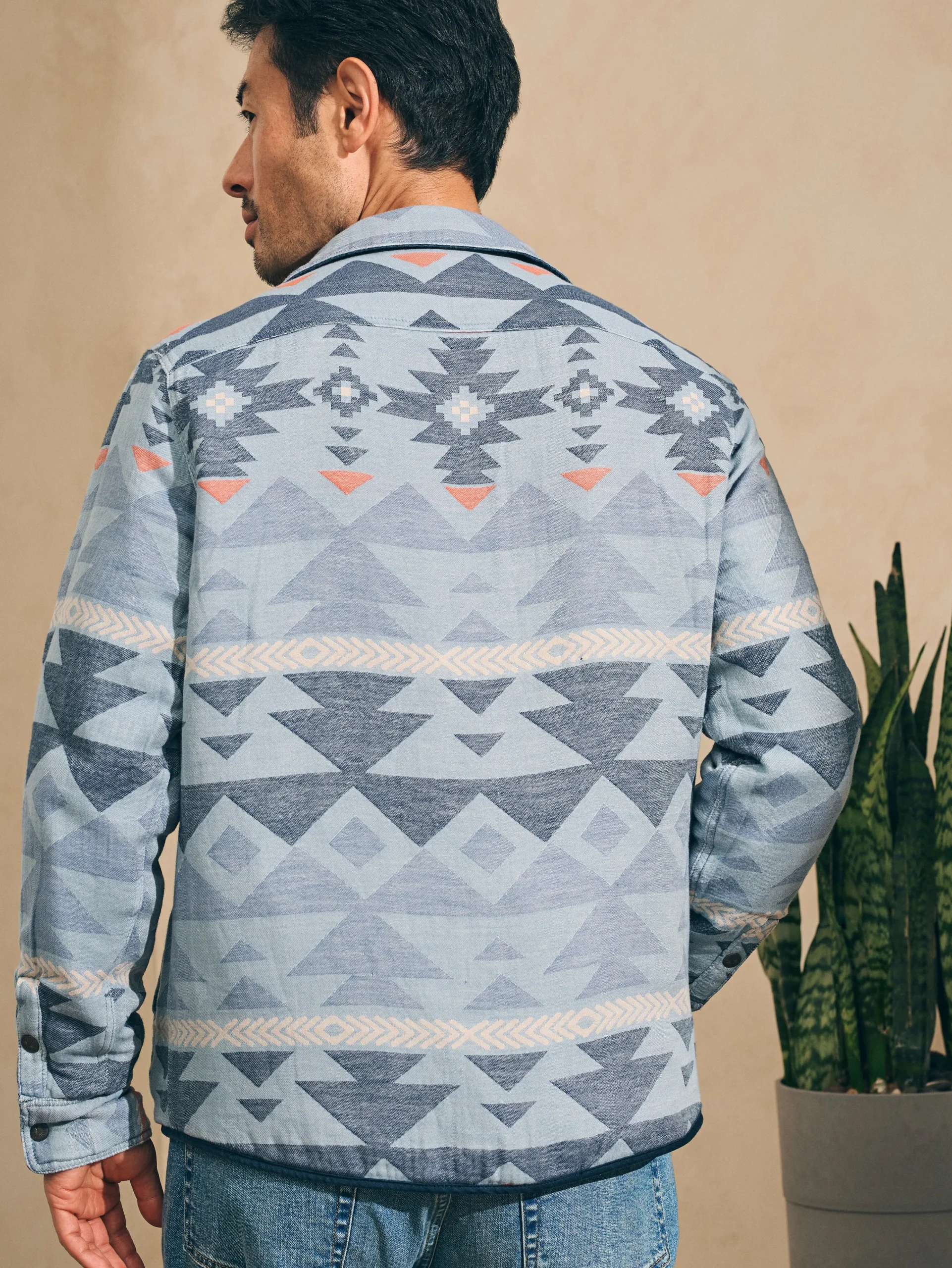 We took the sturdy shirt jacket—a time-honored workwear staple—and made it reversible so that it does double duty. Switch between a solid option accented with classic quilting or Native artist Doug Good Feather’s exclusive design. An artist, veteran, author, and teacher, Doug Good Feather is from the Standing Rock Lakota and Dakota Nation and is the founder of the Lakota Way Healing Center. Our ongoing partnership has enabled the Center to purchase 160+ acres of land and expand its ability to offer Indigenous spiritual practices to anyone in need of healing.