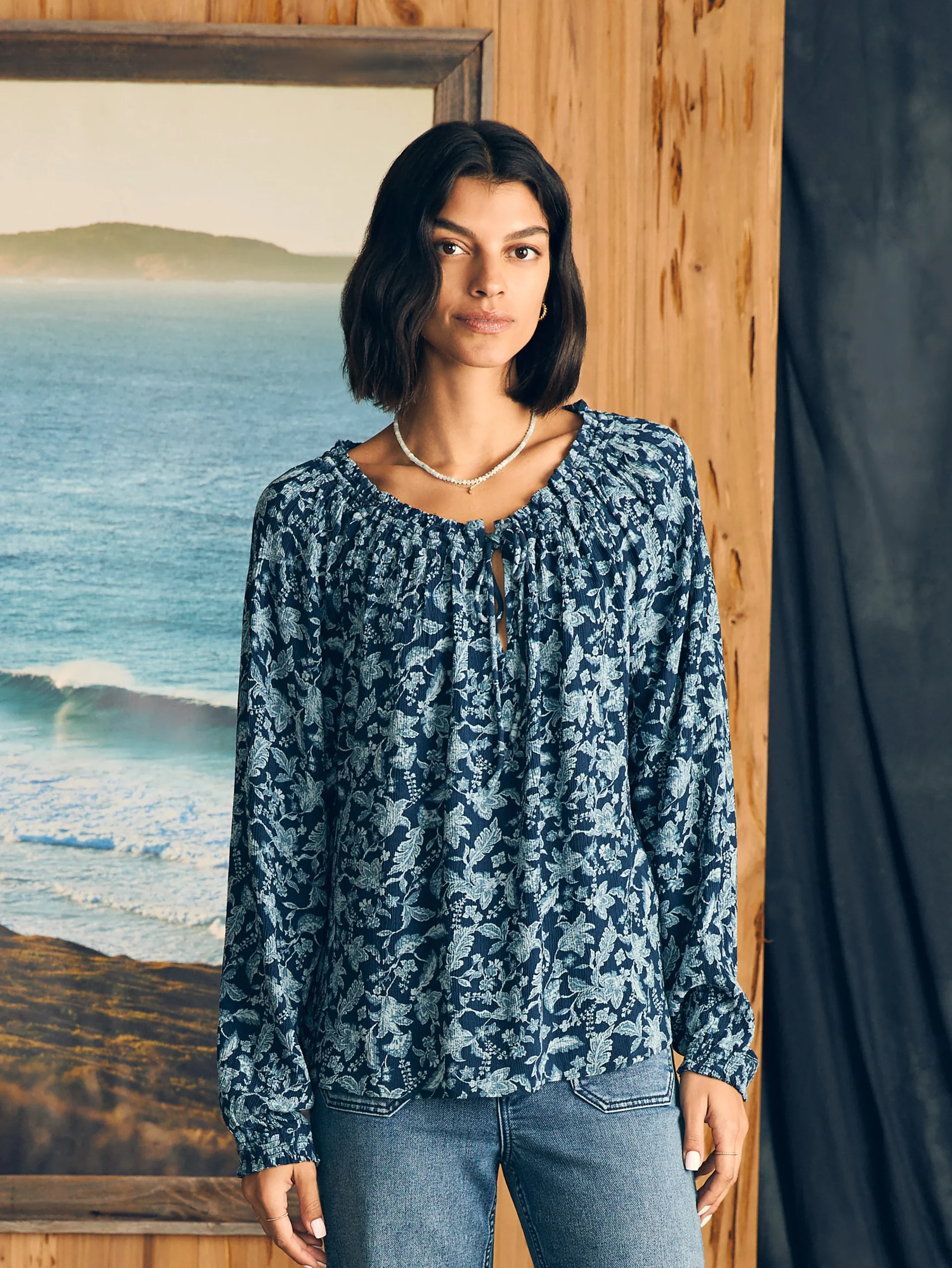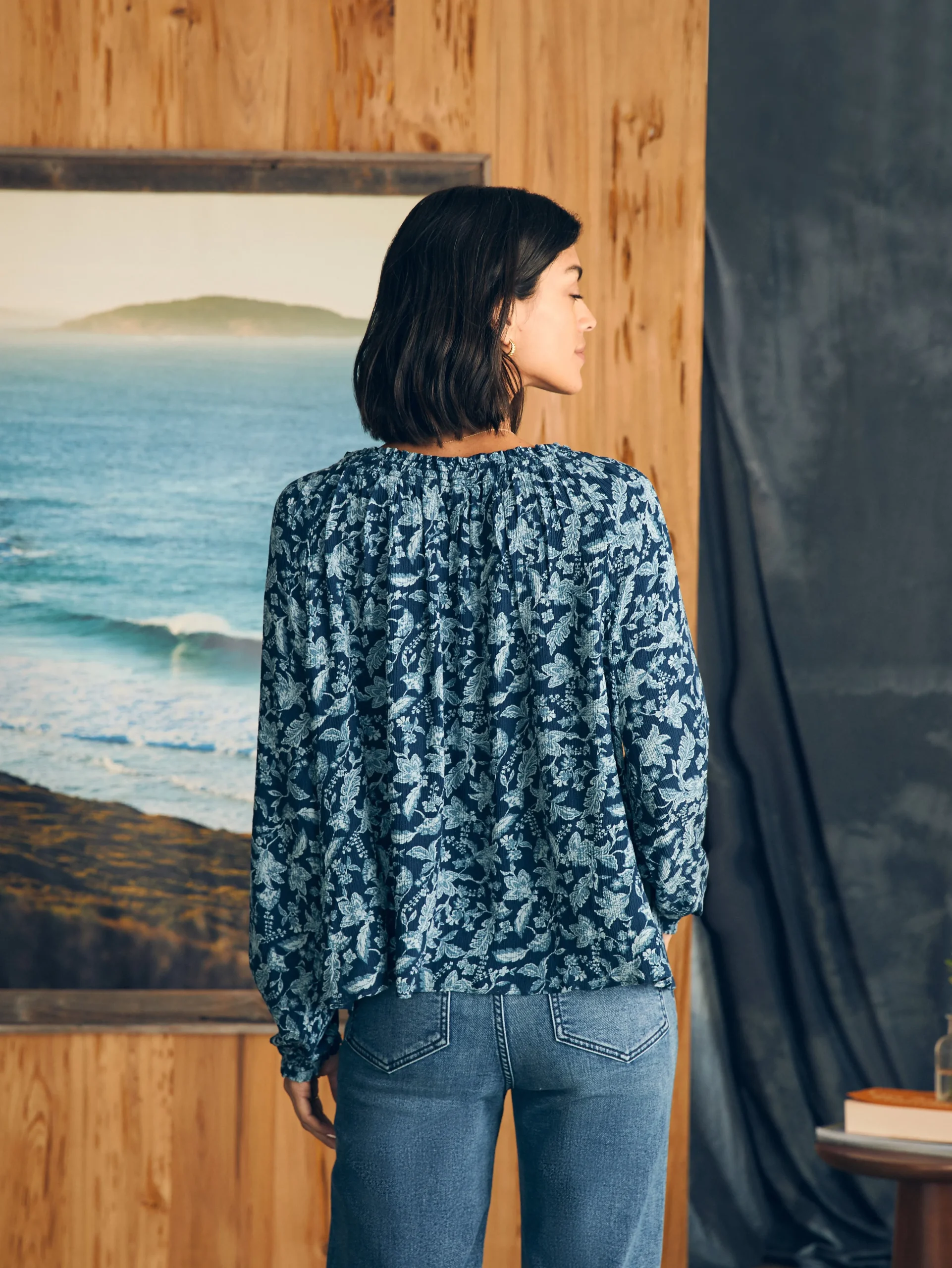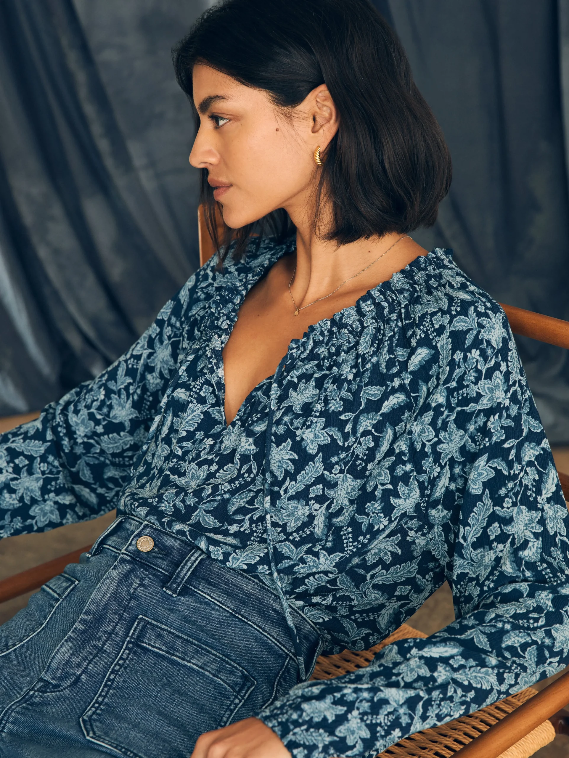 Our answer to the day-to-night top, the Emery blouse keeps things fresh with a feminine smocked neckline and delicate ruffles that can easily be dressed up or down. Its wanderlust mood is enhanced with a beautiful floral inspired by vintage block prints collected from our travels.