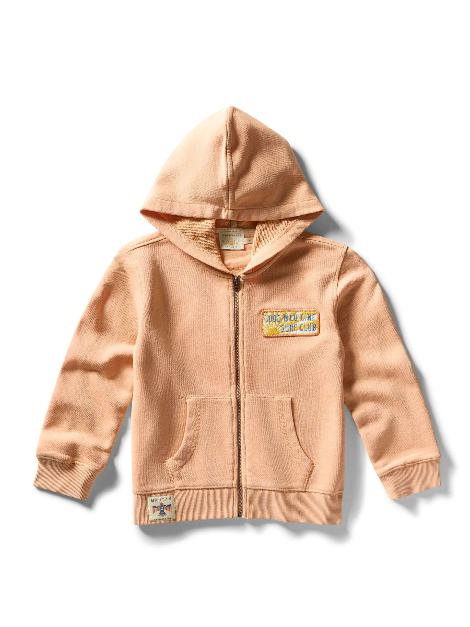 Designed in collaboration with Native artist Steven Paul Judd (Kiowa-Choctaw), this limited edition hoodie is crafted from the softest organic cotton for an easygoing fit that’s perfect to throw on and go. Featuring SPJ’s Thunderbird artwork and novelty patches, it pays homage to classic surf nostalgia and good vibes.